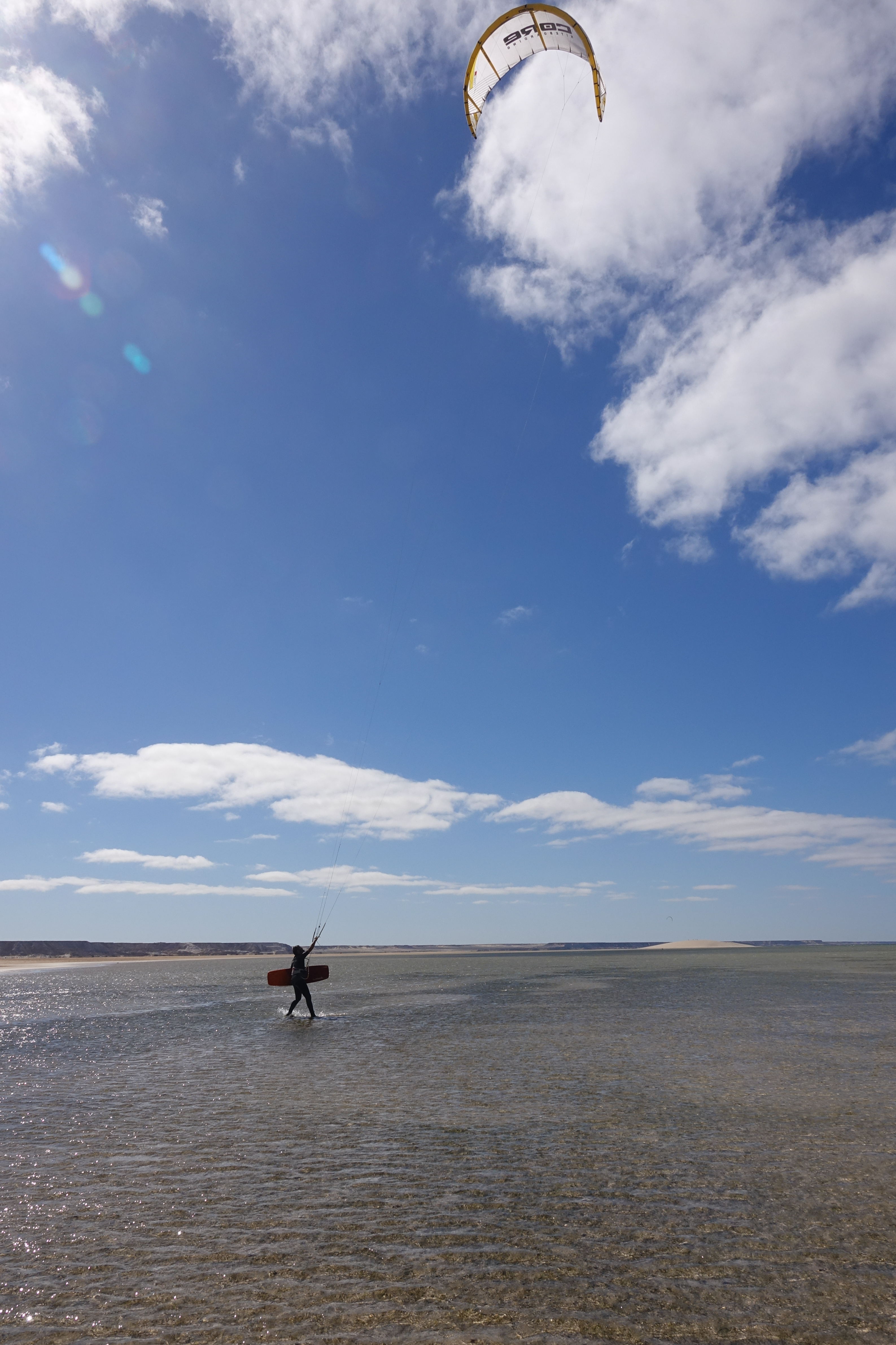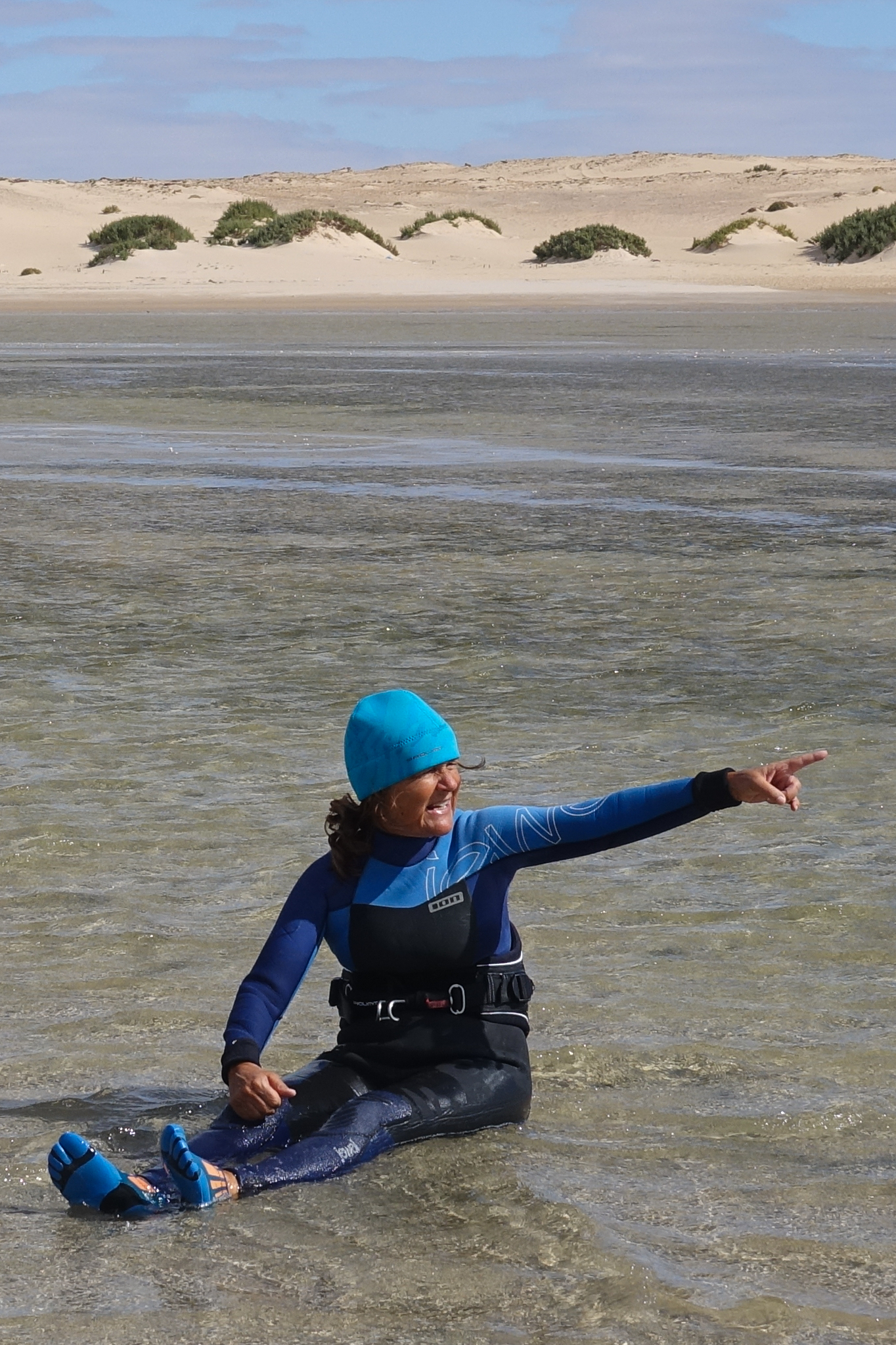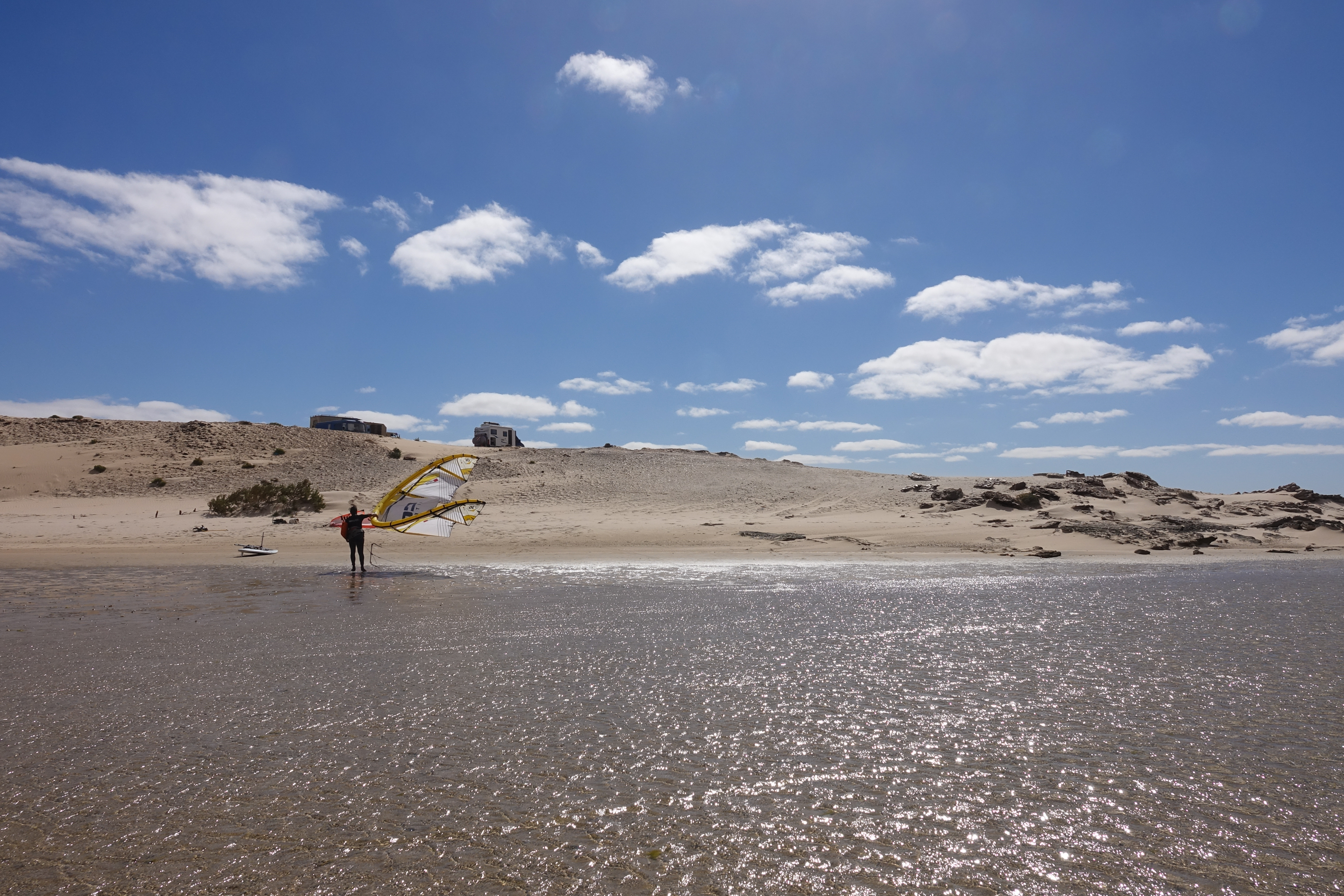 Jetzt soll es noch einmal aufs Wasser gehen und die letzte Nacht verbringen wir dann am Atlantik. Uwe, Andy und Olivier machen einen tollen Downwindtrip zur weißen Düne bei 6 Beaufort und Carmen geht mit dem 4.3 aufs Wasser.