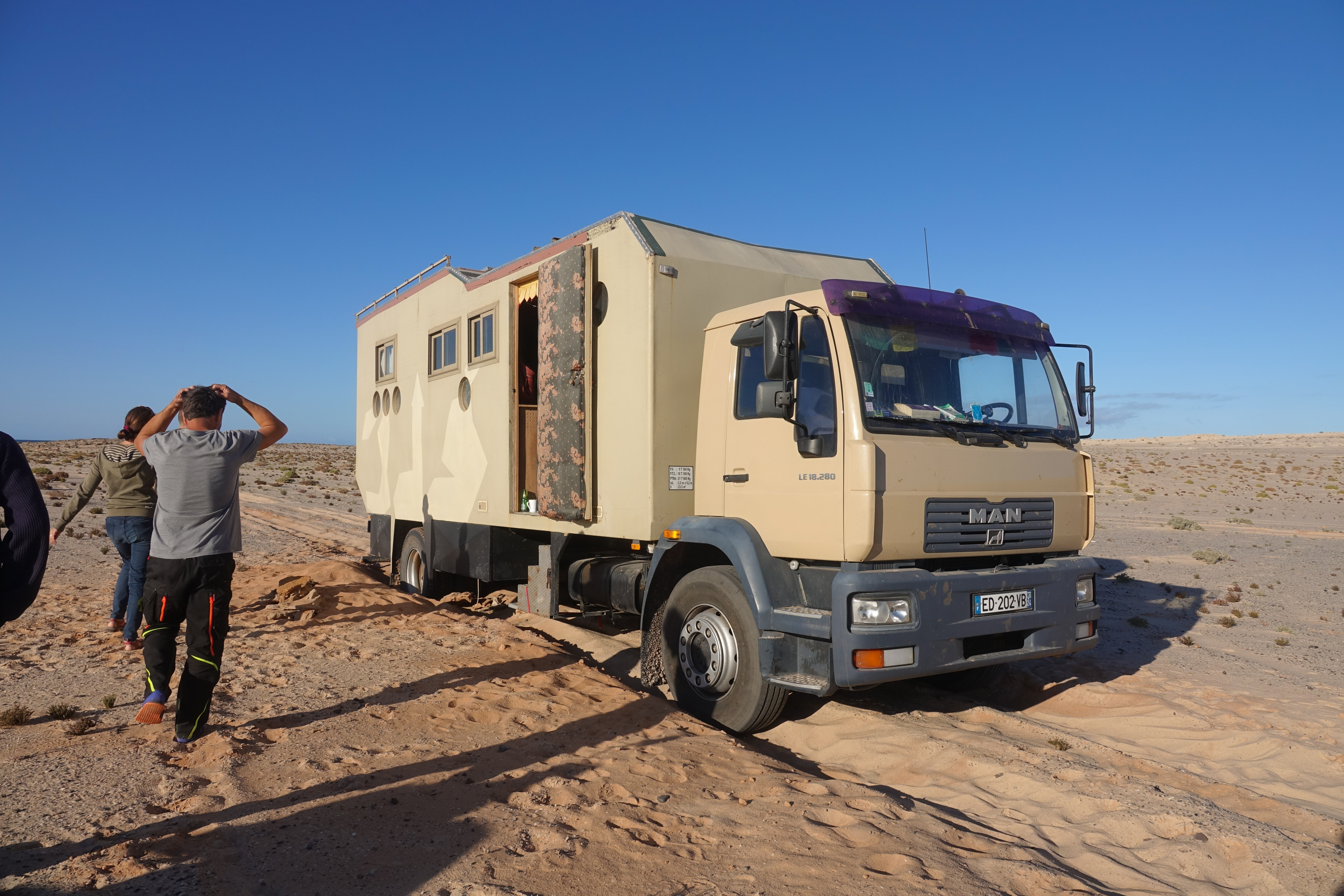 Heute nach dem Frühstück müssen wir mit unserer Elsa aufbrechen, um Timoumou, das Wohnmobil von Fanny und Olivier zu retten. Uwe hat es beim Hundespaziergang schon entdeckt, weiß aber auch nicht, wie wir dorthin kommen, ohne uns selbst festzufahren.