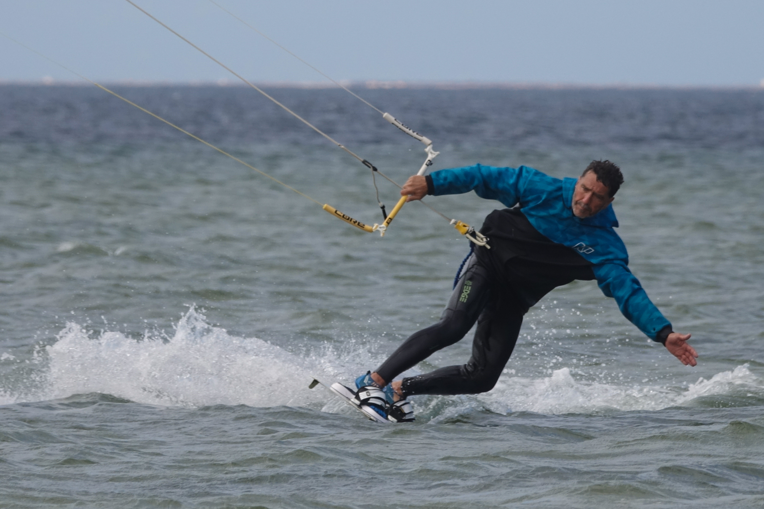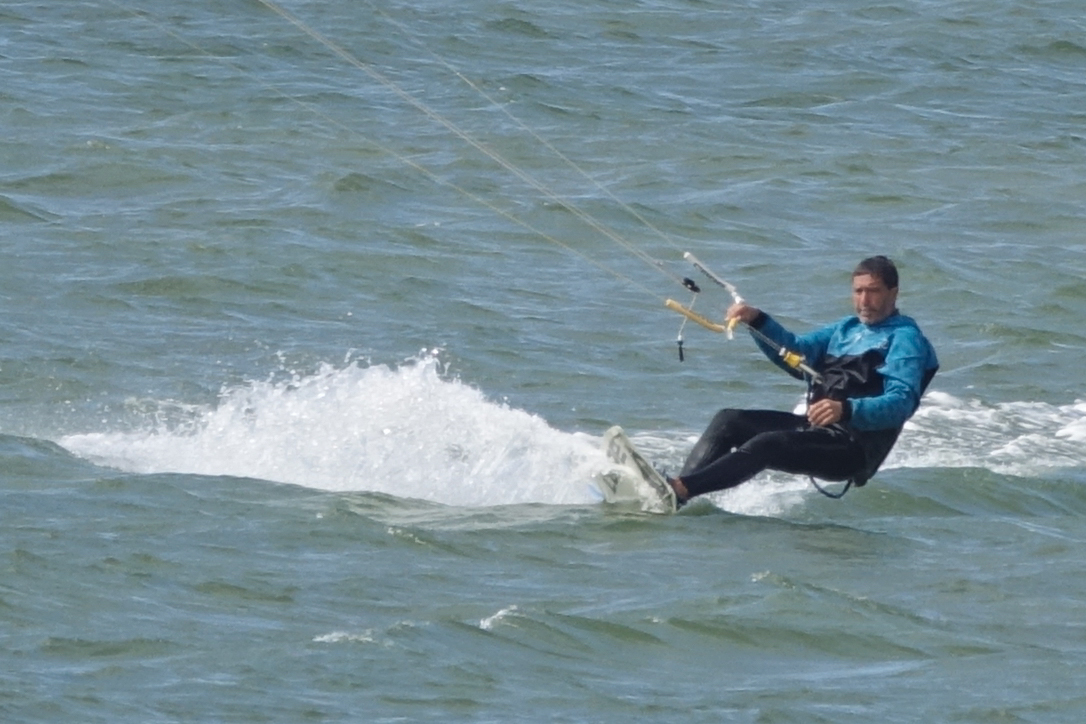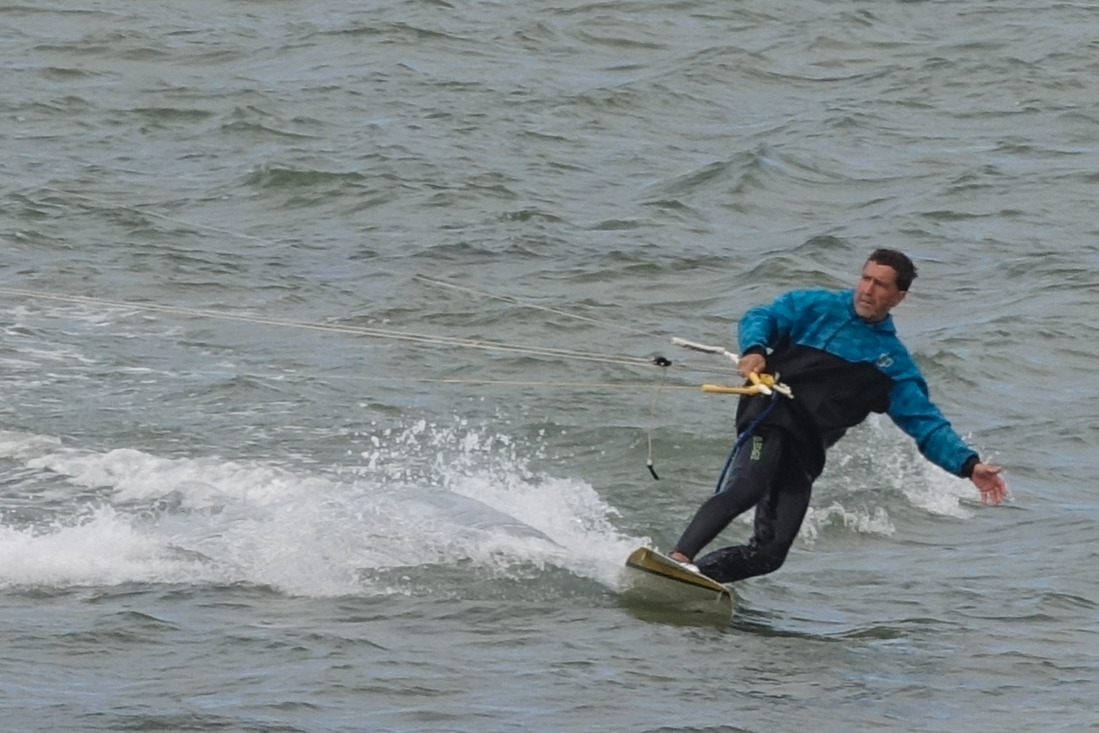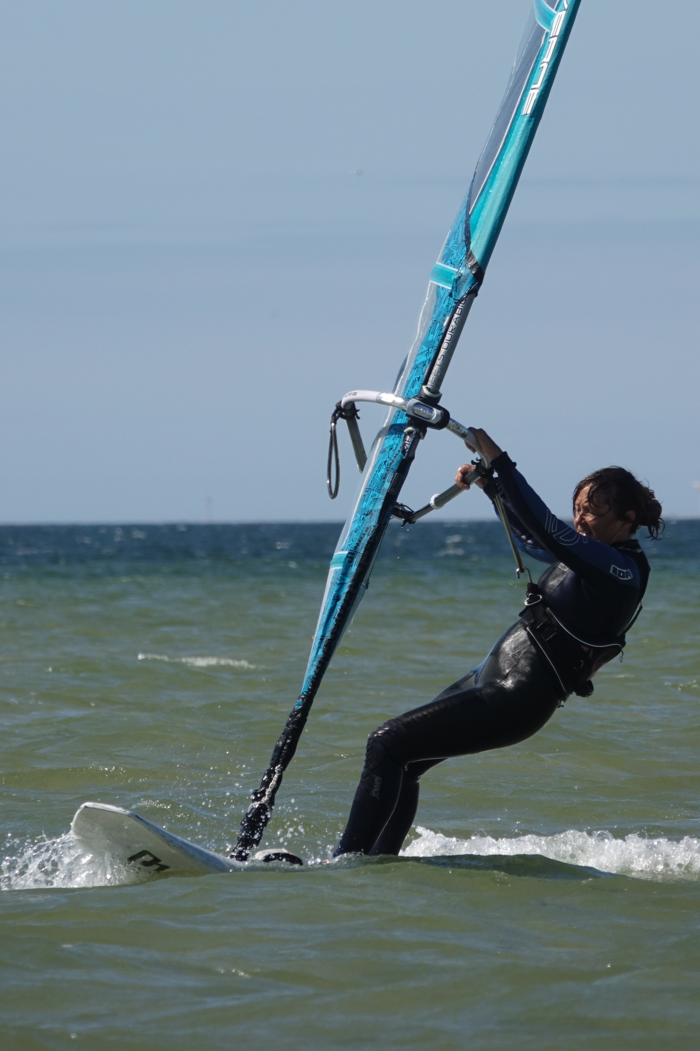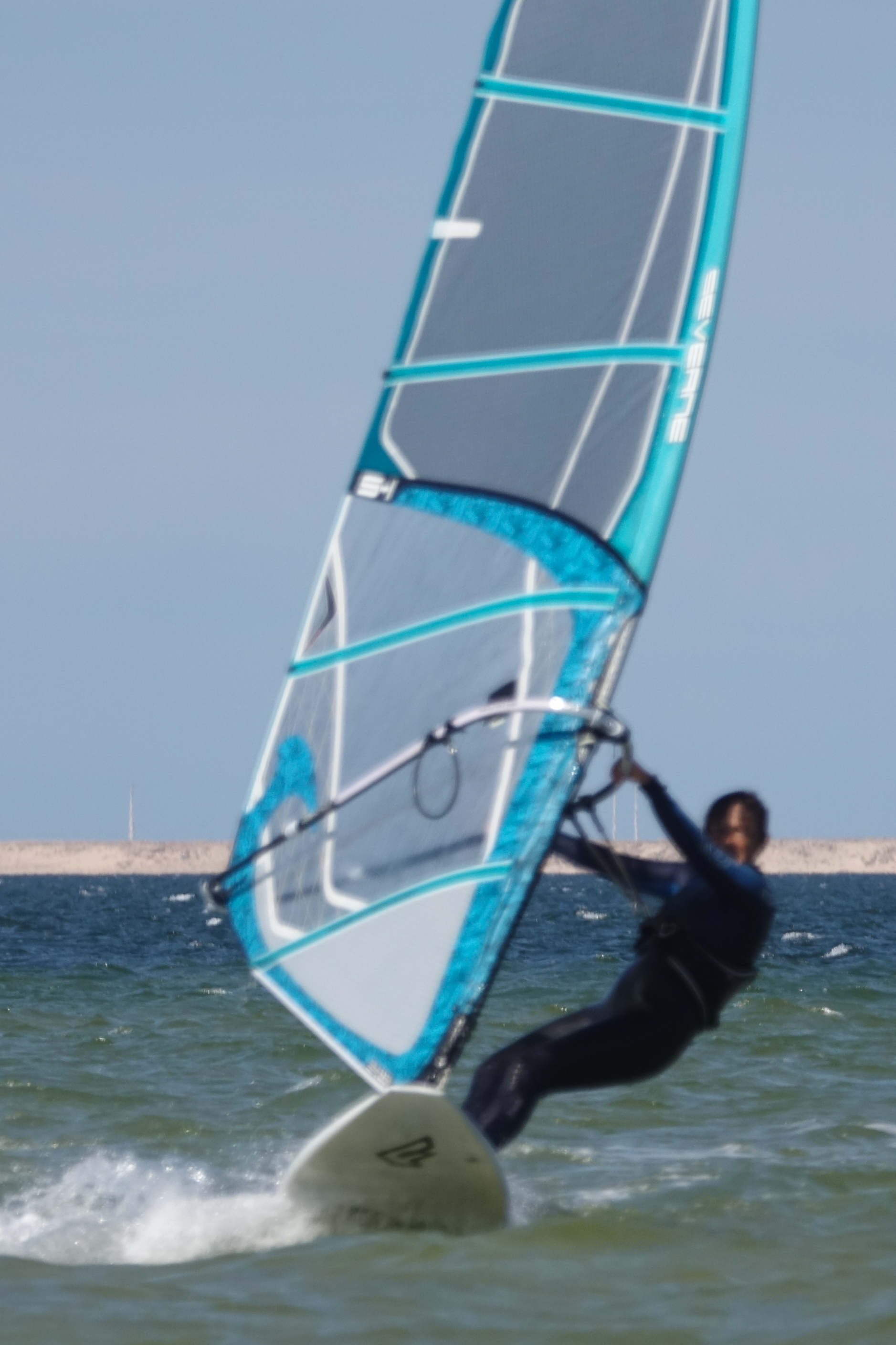 Erst gegen Abend kommt endlich das Wasser und Carmen kann mit ihrem 3,75er raus und auch Uwe kann noch ein paar Schläge fahren.