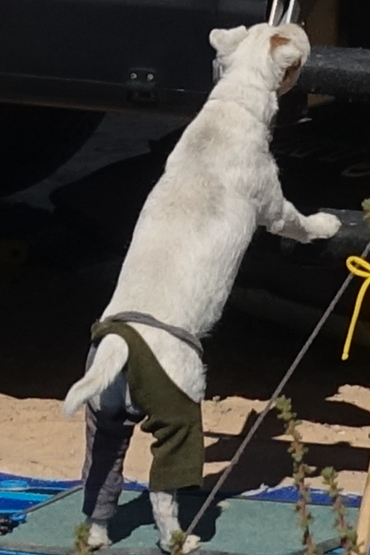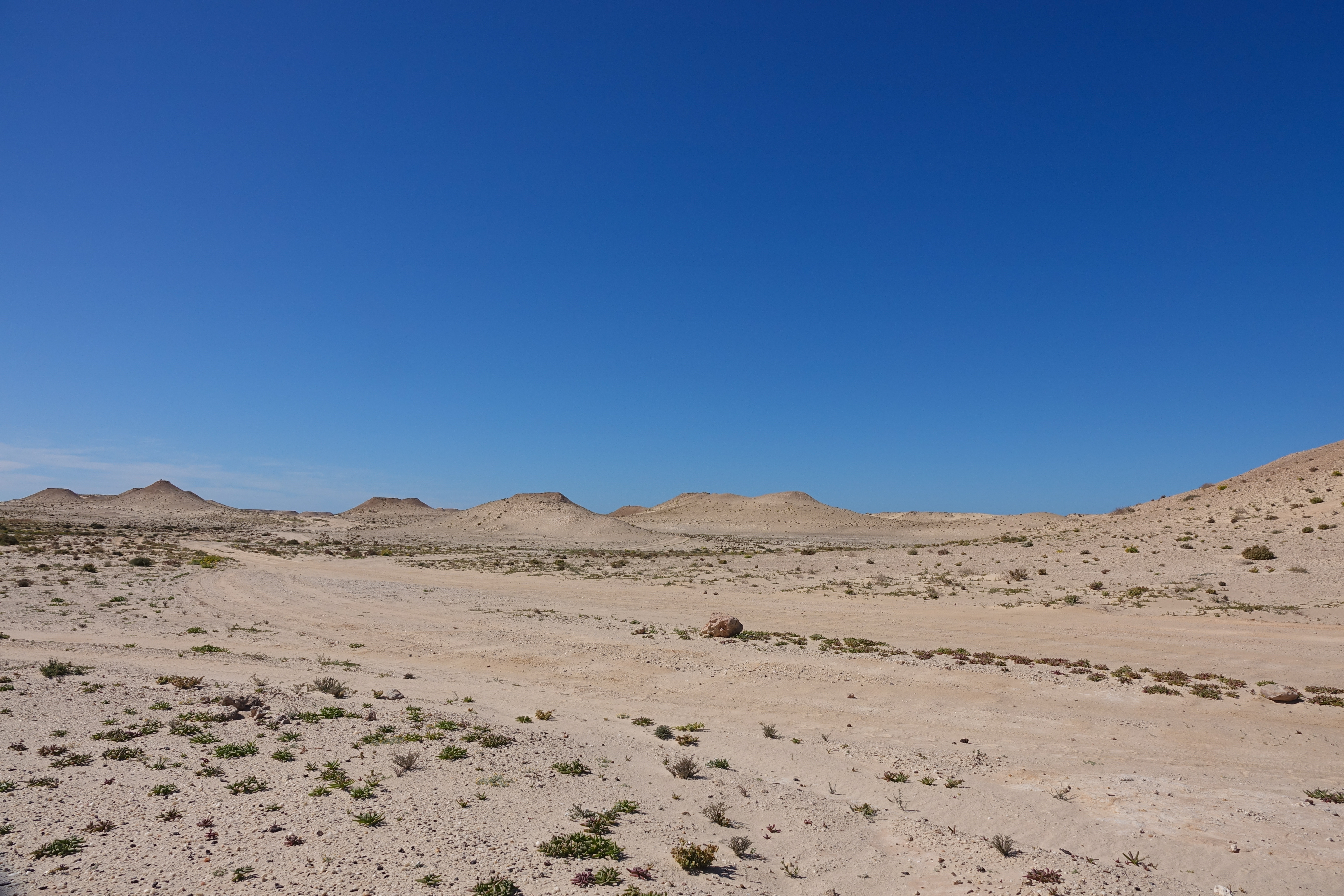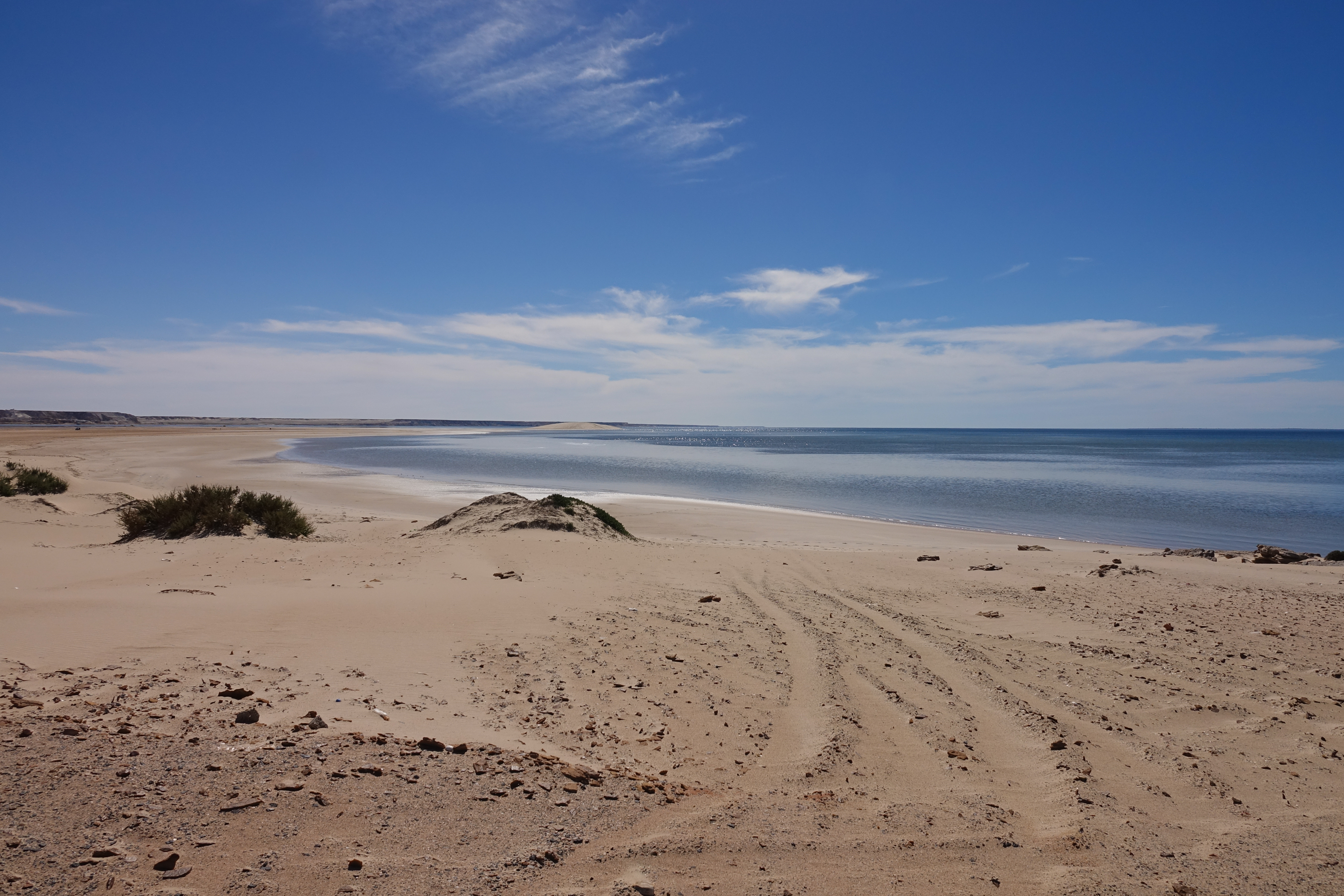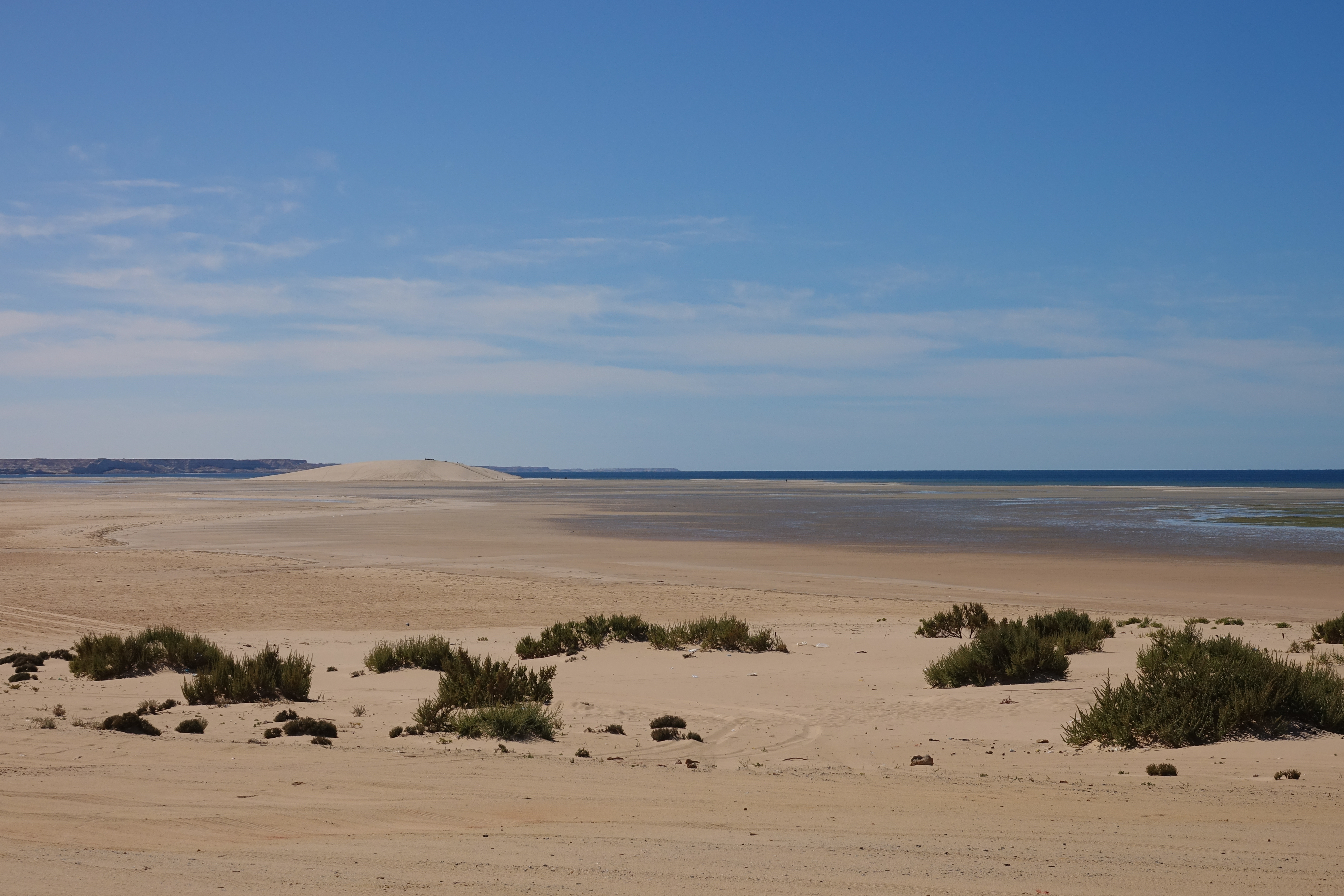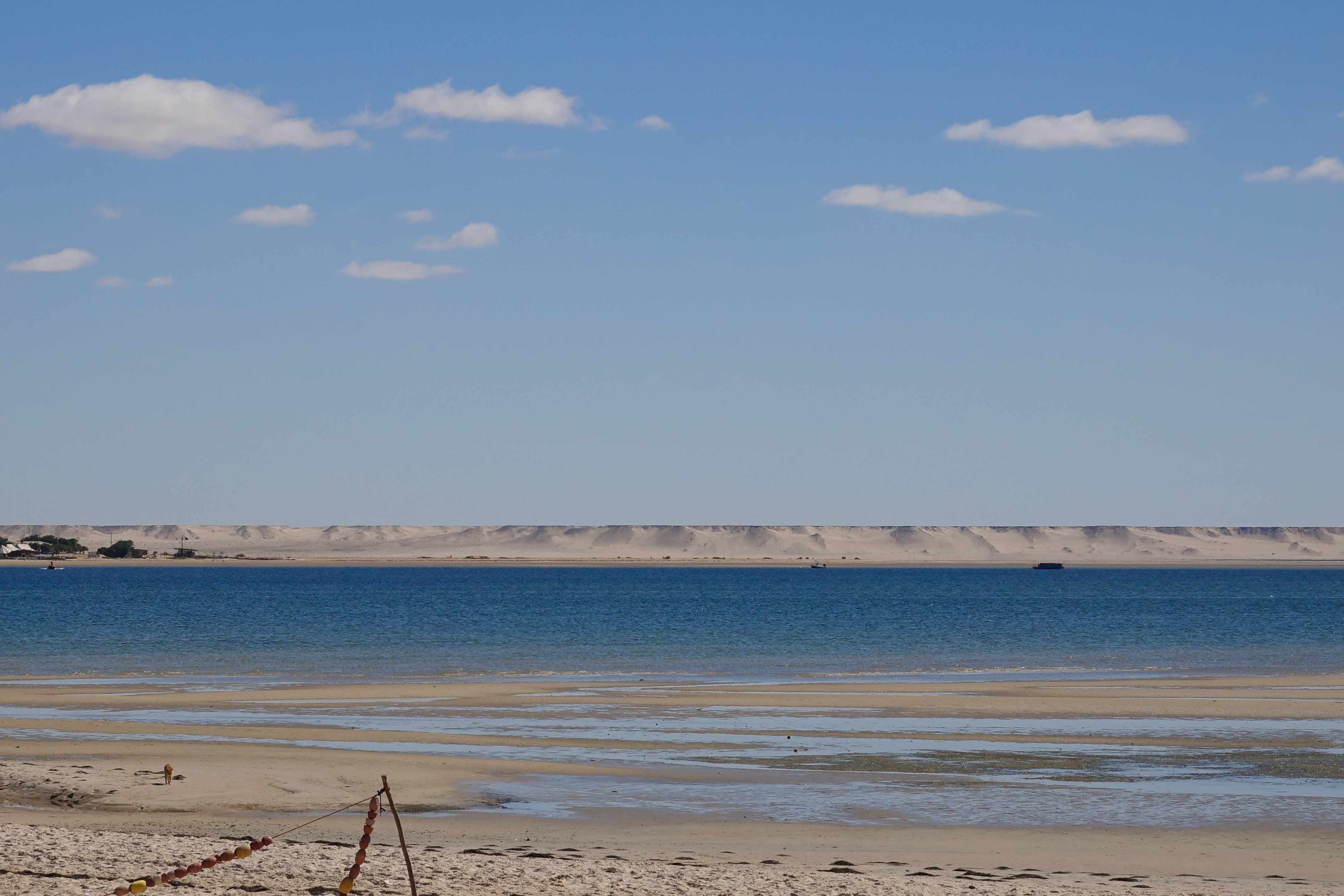 Nach der strapaziösen Offroadfahrt landen wir an diesem Traumstrand. Im Hintergrund sieht man die White Dune (weiße Düne), eigentlich nur ein Sandhaufen.