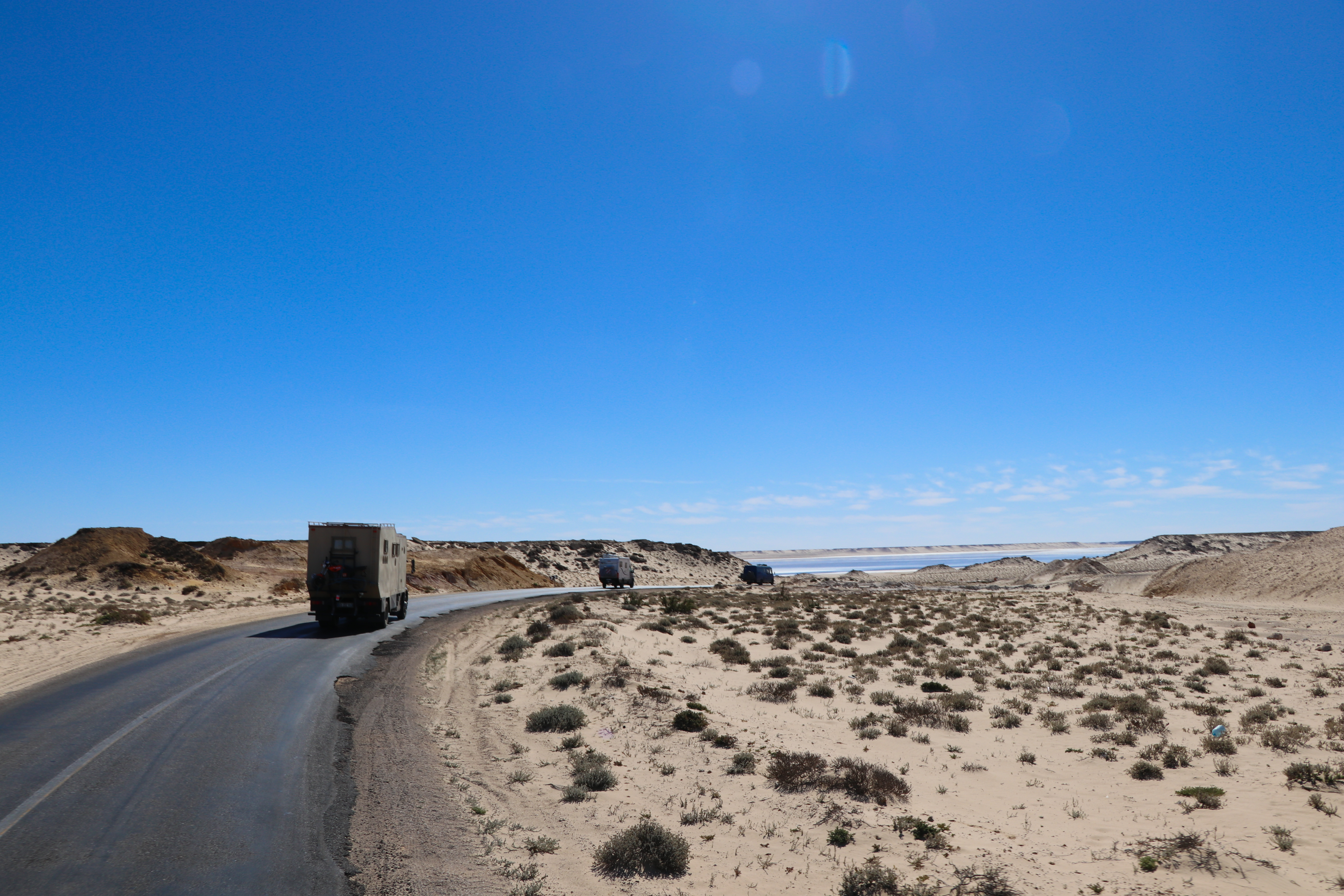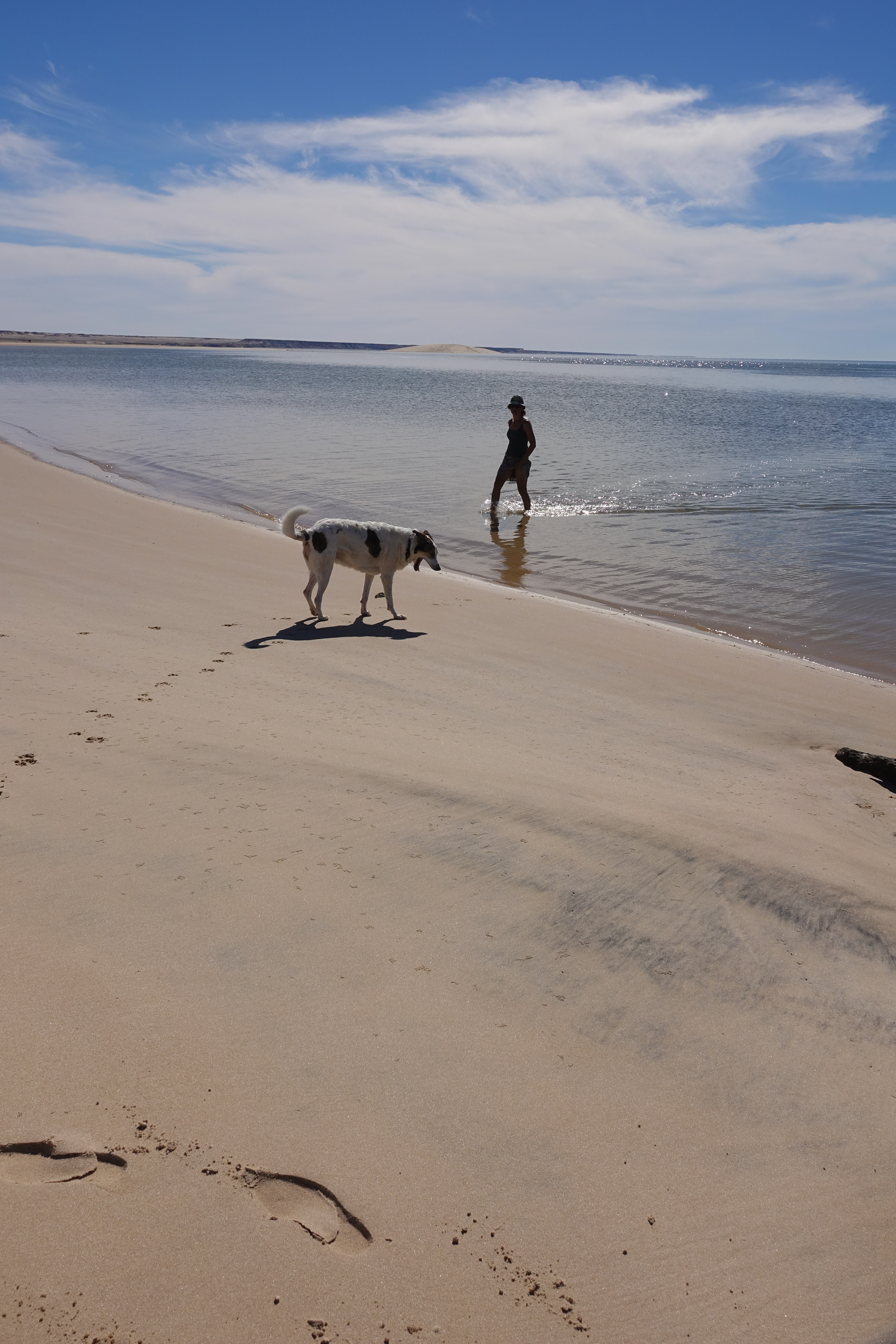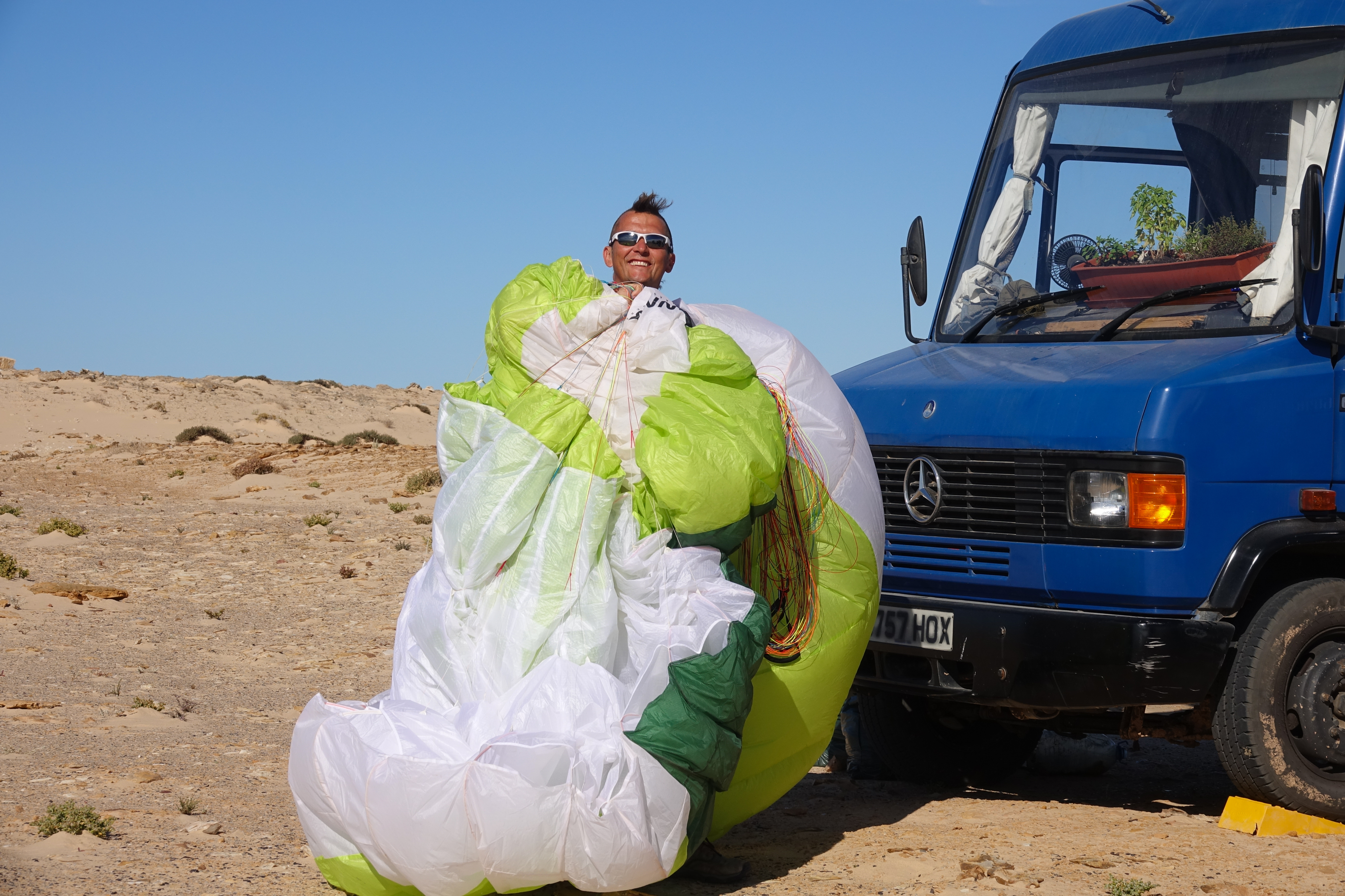 Wir wollen hier übernachten. In der Nähe der White Dune gibt es einen tollen vollkommen einsamen Strand. Mit Muschelsuchen, Paragleiten und Kiten vergeht der Tag im wahrsten Sinne des Wortes im Flug.