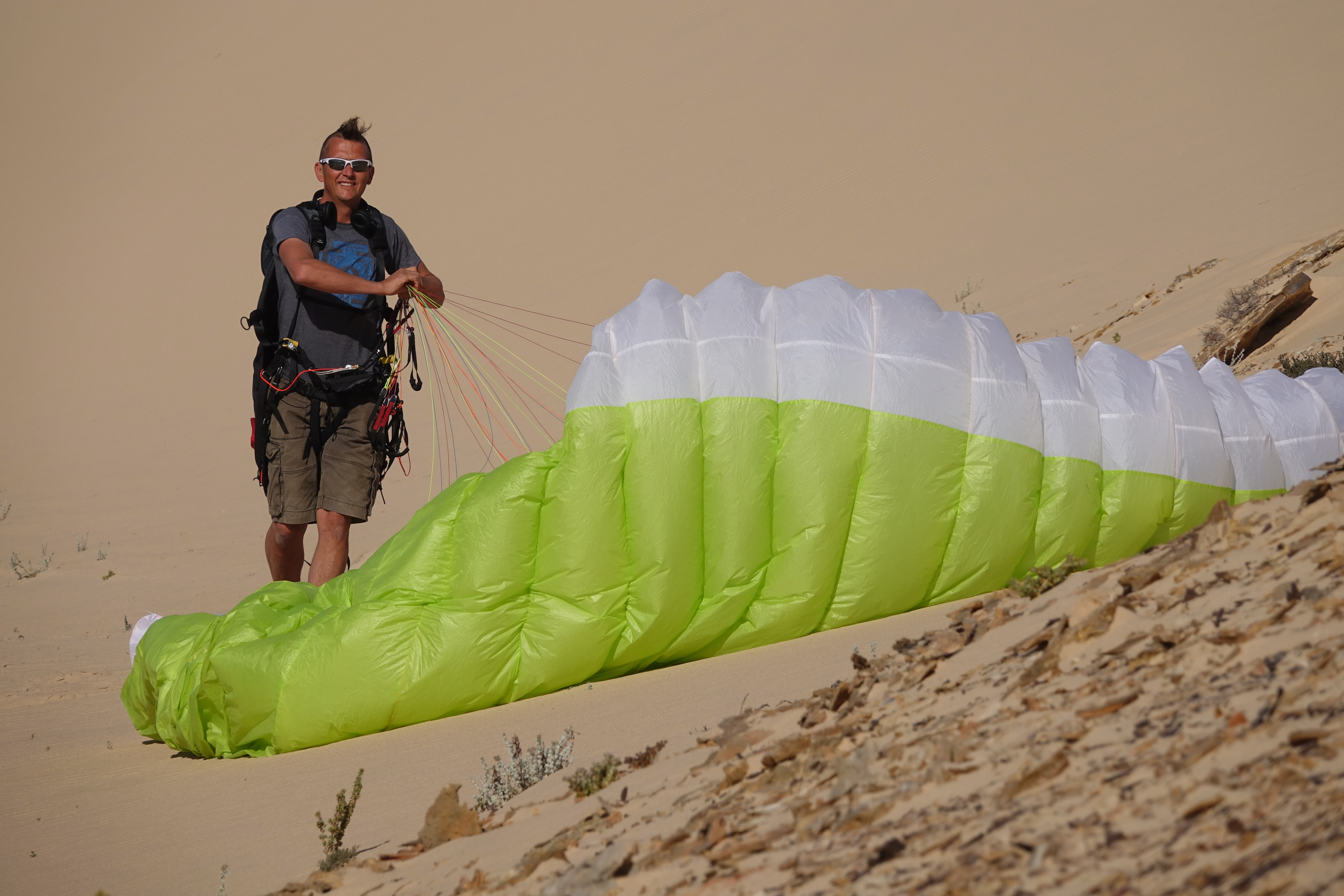 Der Wind an der Abbruchkante reicht gerade aus damit Andy 5 Meter weit fliegen kann.