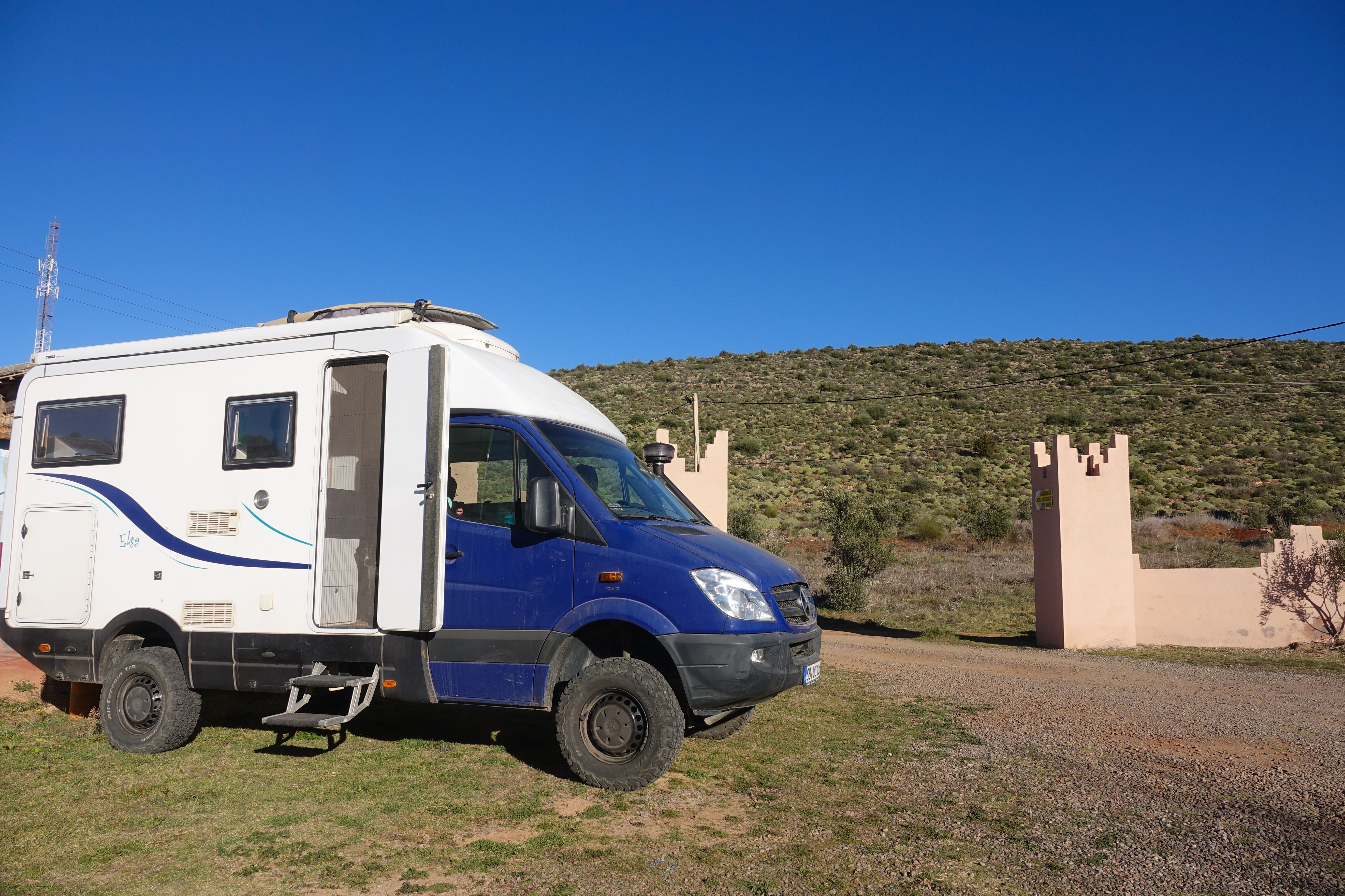 Wir finden einen ordentlichen Campingplatz in Taliouine. Das Land ist immer noch sehr trocken, die Flüsse sind ausgetrocknet und der Winter ist gerade erst vorbei.