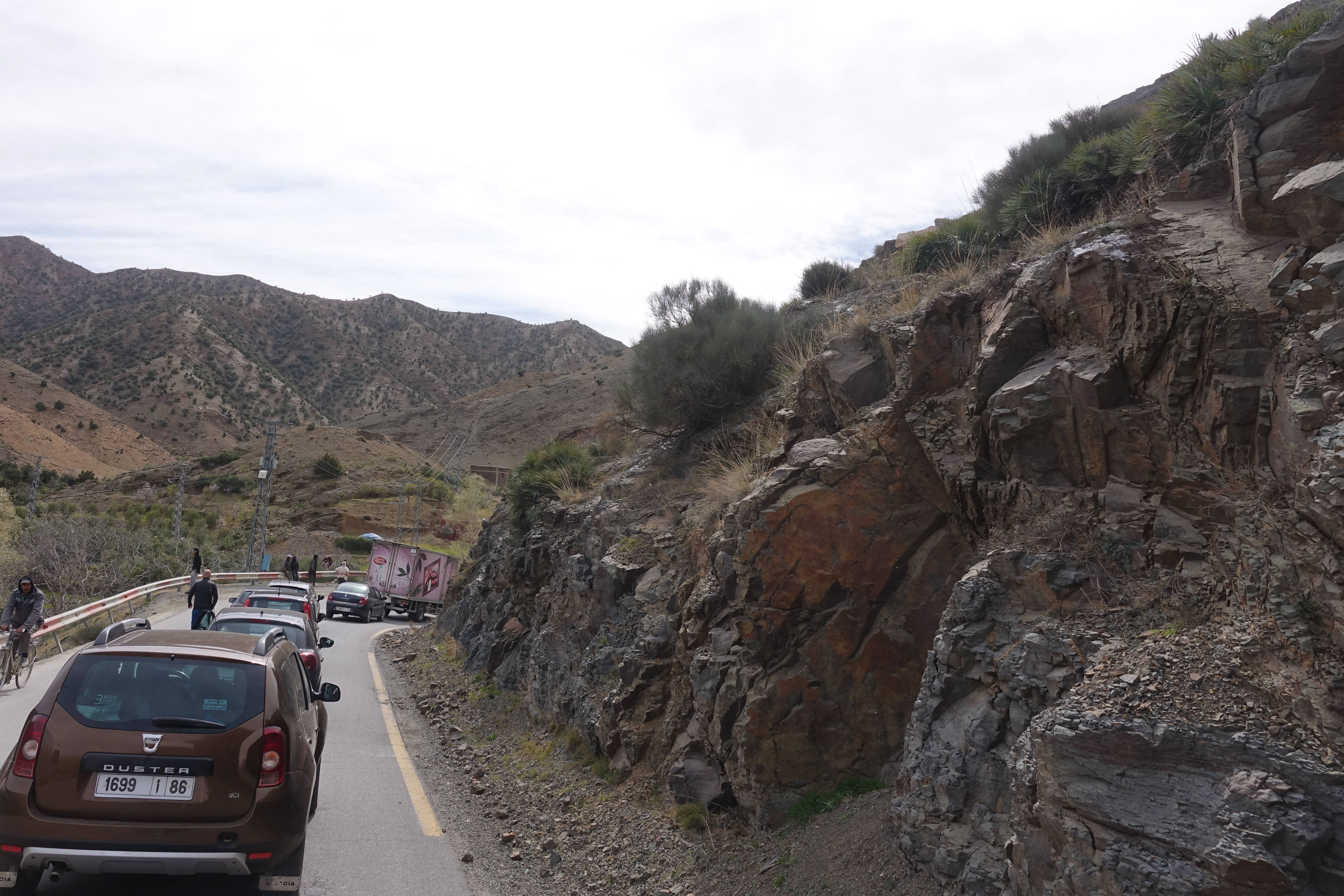 Damit wir die Baustellenpassstraße nicht nochmals nehmen müssen, fahren wir jetzt in Richtung Tazenakht. Die Straße ist wirklich prima zu fahren, wenn man einmal von Schafherden und überladenen LKW absieht.