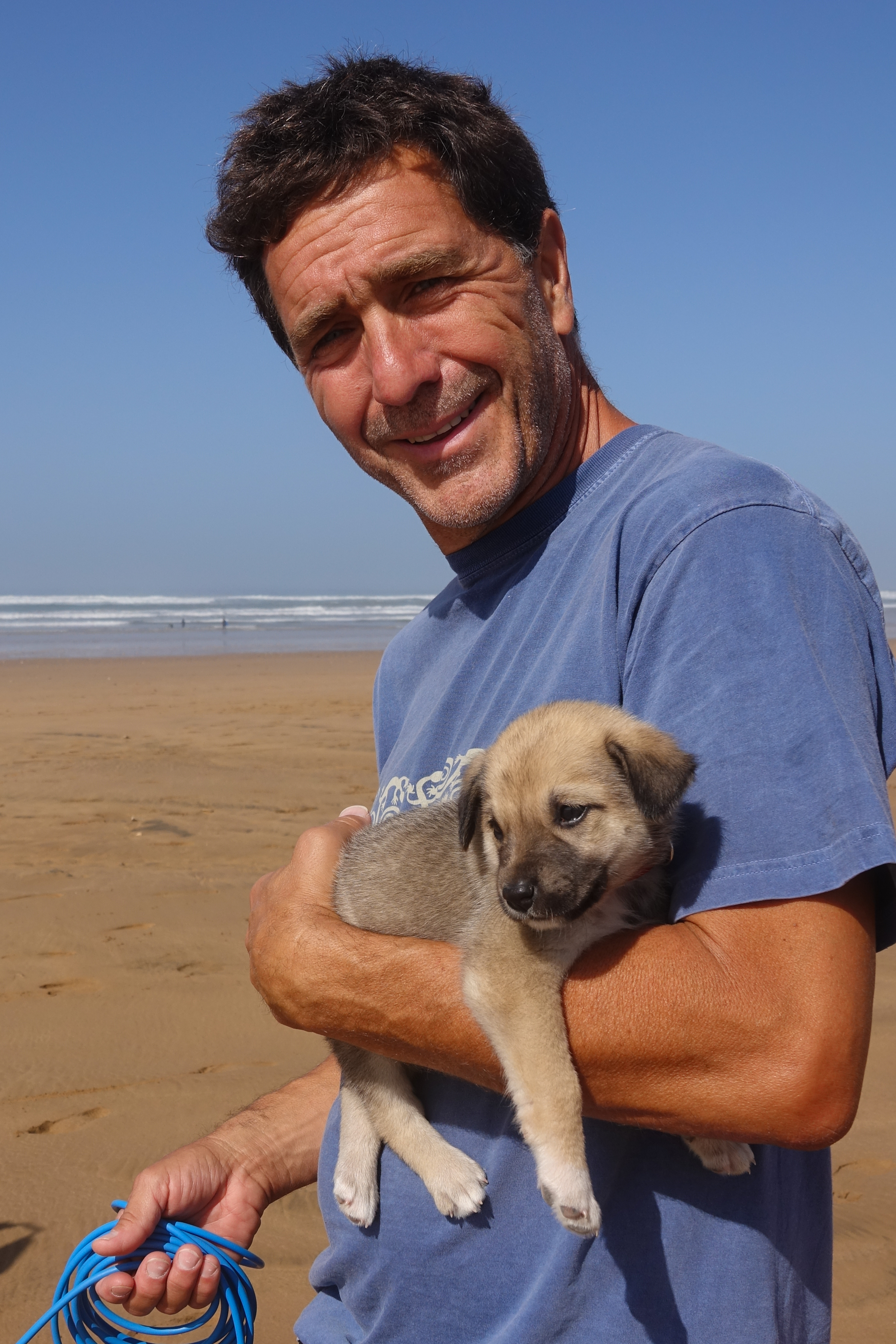 Der Hund des Surflehrers wenden den Blick mit Entsetzen ab.