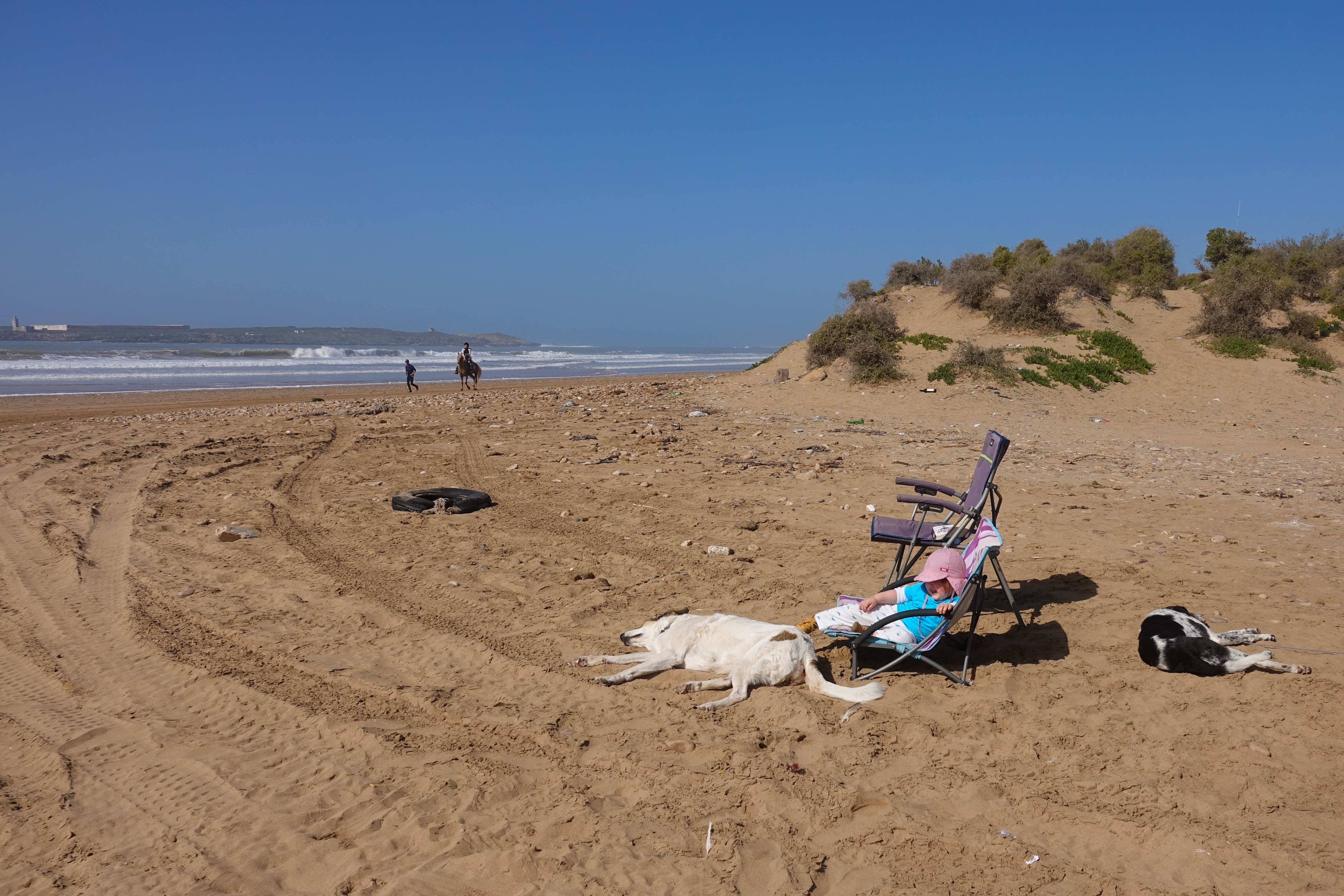 Dann haben wir die Kinder und die Hunde mit dem Wohnmobil nach Diabat gebracht und sind von dort mit den Rädern nach Essaouira gefahren.