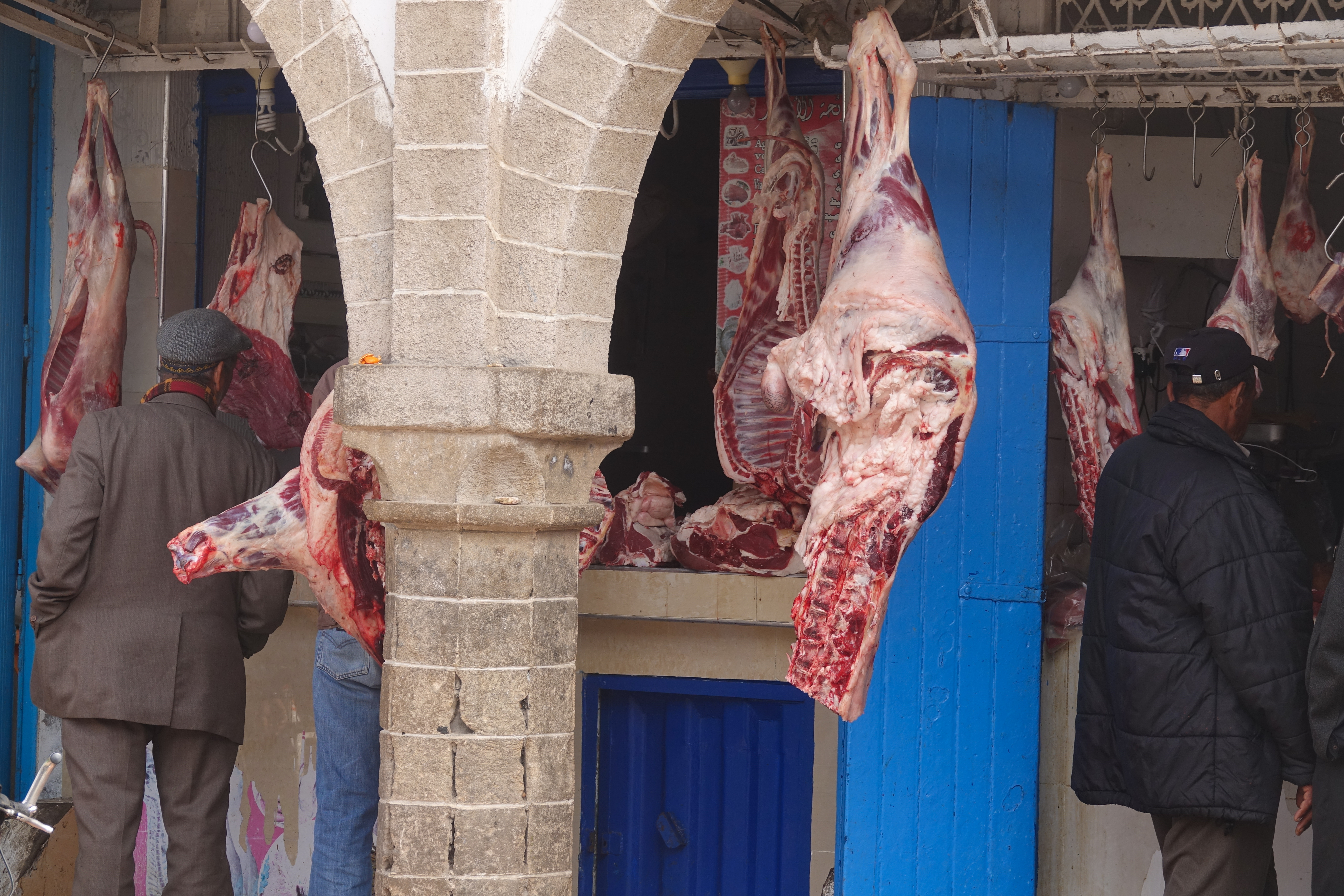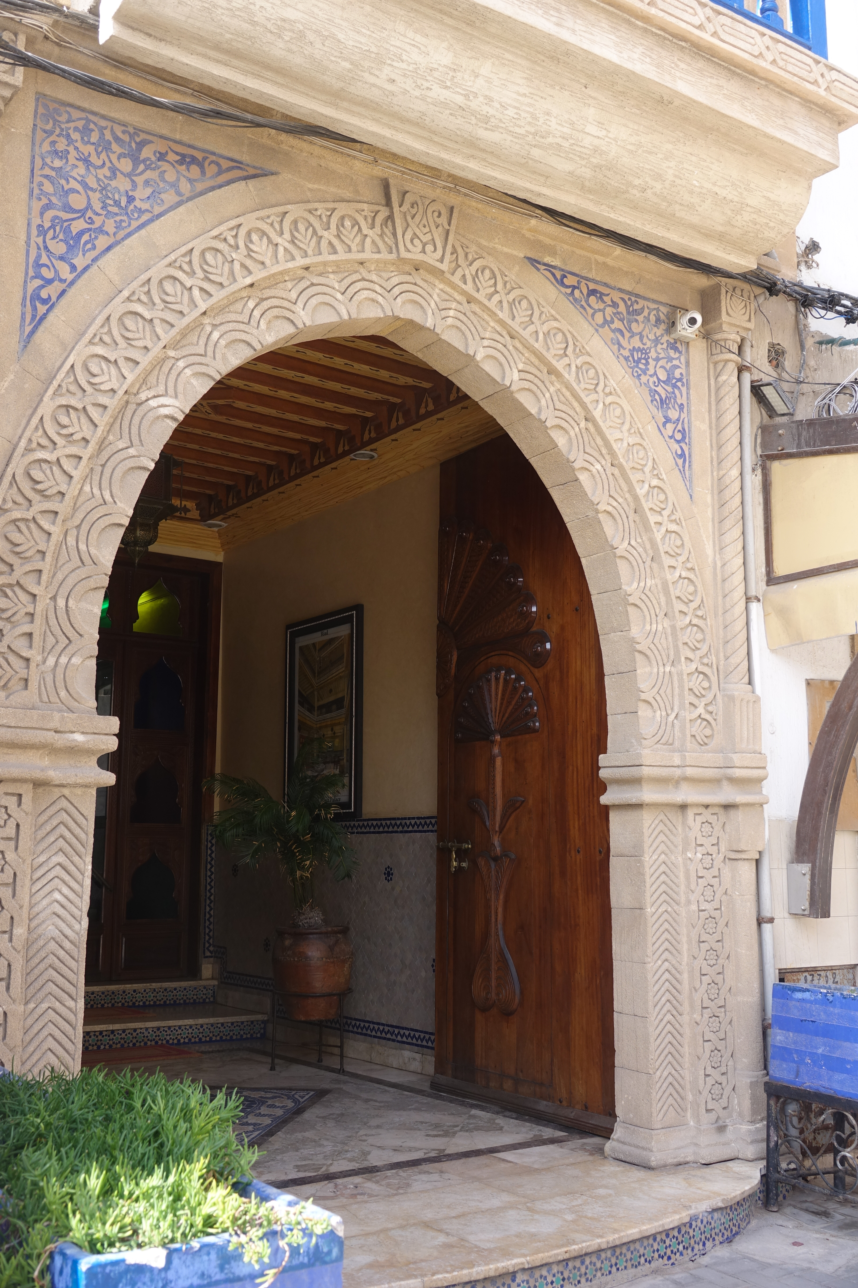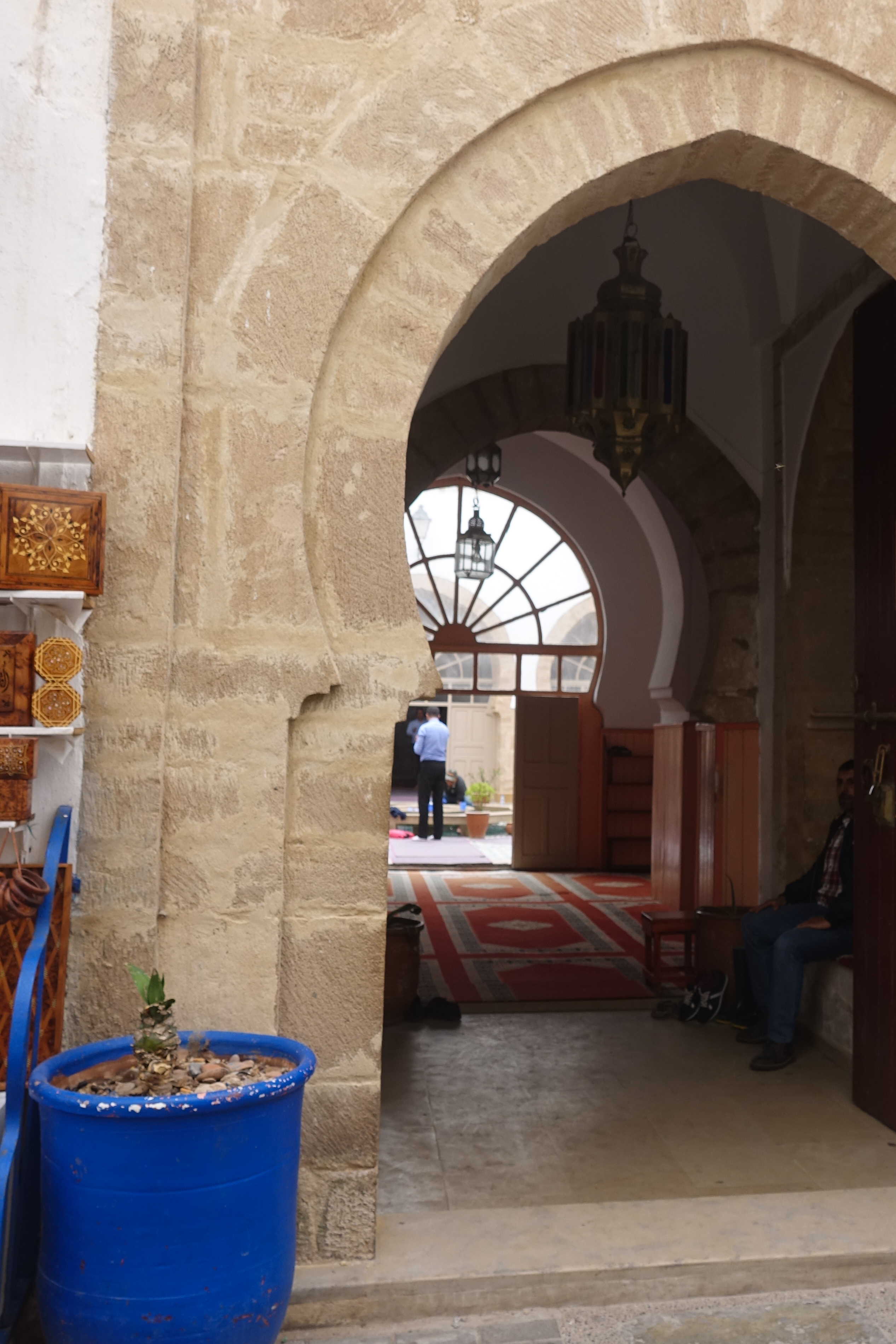 Mit dem Finden des Stellplatzes hatte unser Navi wieder seine Probleme. Letztendlich stranden wir in den winzigen Gässchen der Medina und können ein enges Tor nicht passieren. Ein netter Marrokaner weiß einen Ausweg. Er geht zu den Polizisten die den Verkehr regeln und bittet sie den Gegenverkehr anzuhalten, weil dort das Tor breiter und höher ist. Ein Polizist macht auch genau das und winkt uns durch das größere Tor, beschwert sich dann aber, dass wir die engen Gassen überhaupt befahren haben und will 400 Dirham von uns weil wir nun auf der Gegenfahrbahn stehen. Wir diskutieren, aber er bleibt hartnäckig, kontrolliert unsere Papiere, lässt sich aber nicht erweichen. Ganz zum Schluss kommt die obligatorische Frage: „Brauchen Sie eine Quittung?“. Wir verneinen und schon vermindert sich der Betrag auf 100 Dirham. Ja, das ist sicherlich nicht richtig weil es sich um Korruption handelt, aber wir haben uns mal wieder ungerecht behandelt gefühlt, weil wir aus eigenem Antrieb nicht auf die Spur des Gegenverkehrs gefahren wären.