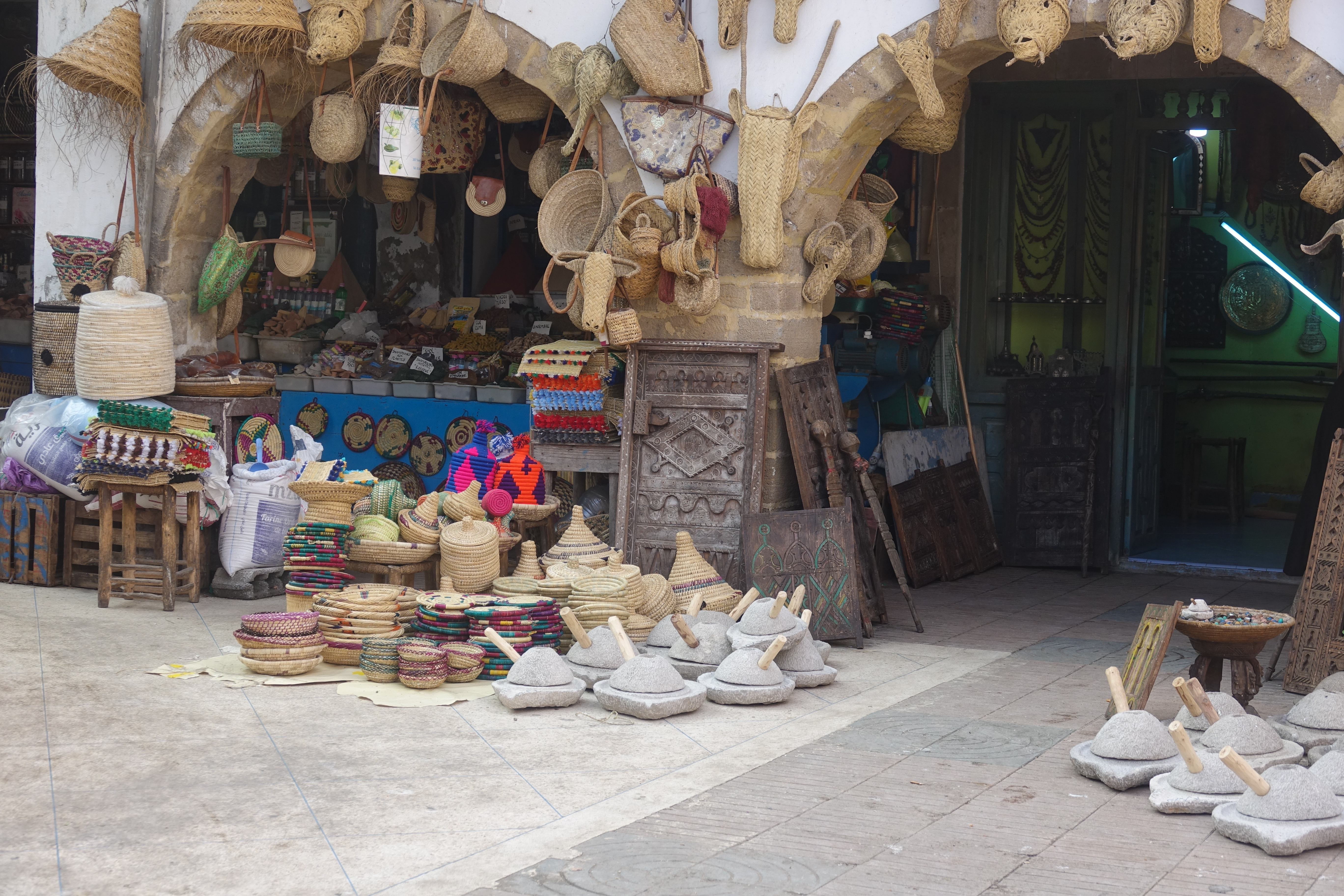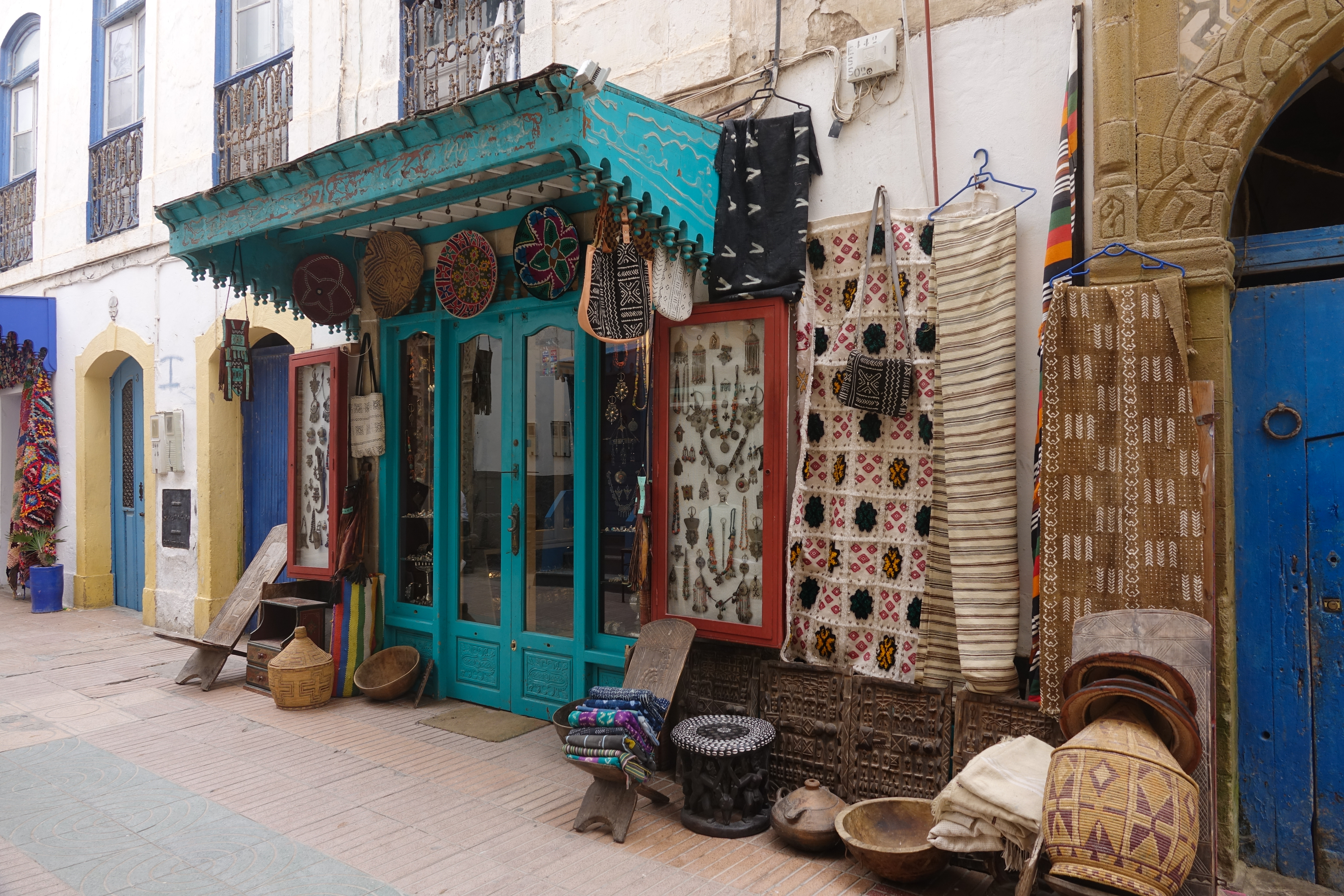 Aber davon abgesehen, fanden wir Essaouira sehr angenehm. Selbst wenn man kein guter Verhandler ist, wird man hier nicht über den Tisch gezogen. Vor einigen Jahren war das in Marrakesch noch ganz anders. Der Ausgangspreis, den der Verkäufer als erstes genannt hat, war noch so hoch, dass man als eher unerfahrener Tourist nicht getraut hat dagegen zu halten. Hier ist es so, dass man beispielsweise als ersten Preis für einen tollen Schal 5€, also 50 Dirham genannt bekommt. Ein vergleichbarer Schal, würde in Deutschland aber mindestens 10€ kosten. Der Verhandlungsspielraum ist dadurch geringer, aber für den unerfahrenen Tourist wird es einfacher, weil er auch, wenn er nicht handeln kann, noch ein Schnäppchen machen kann. Auch mit angeblichen Festpreisen ausgezeichnet Ware lässt sich noch verhandeln, wenn man mehrere kauft.