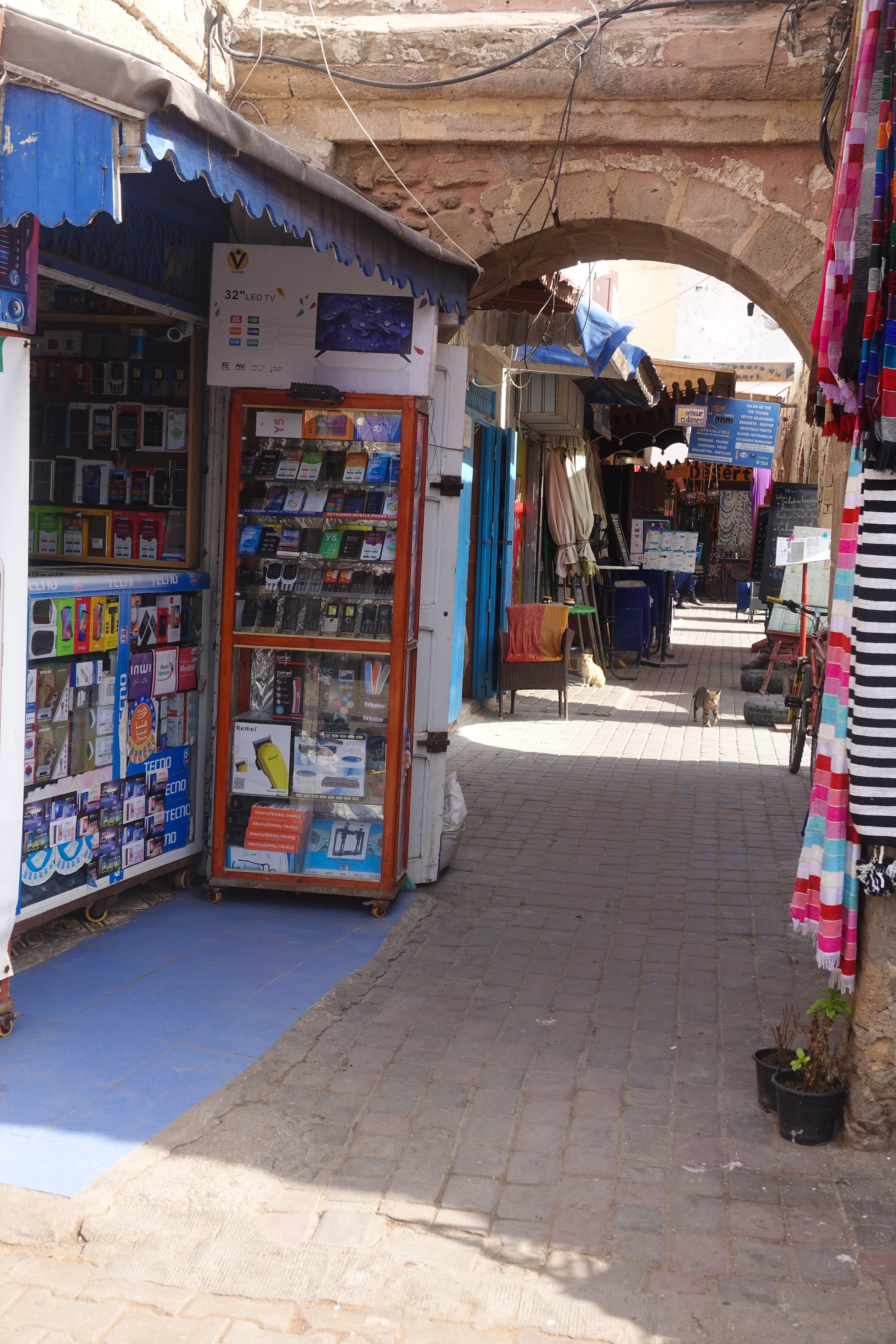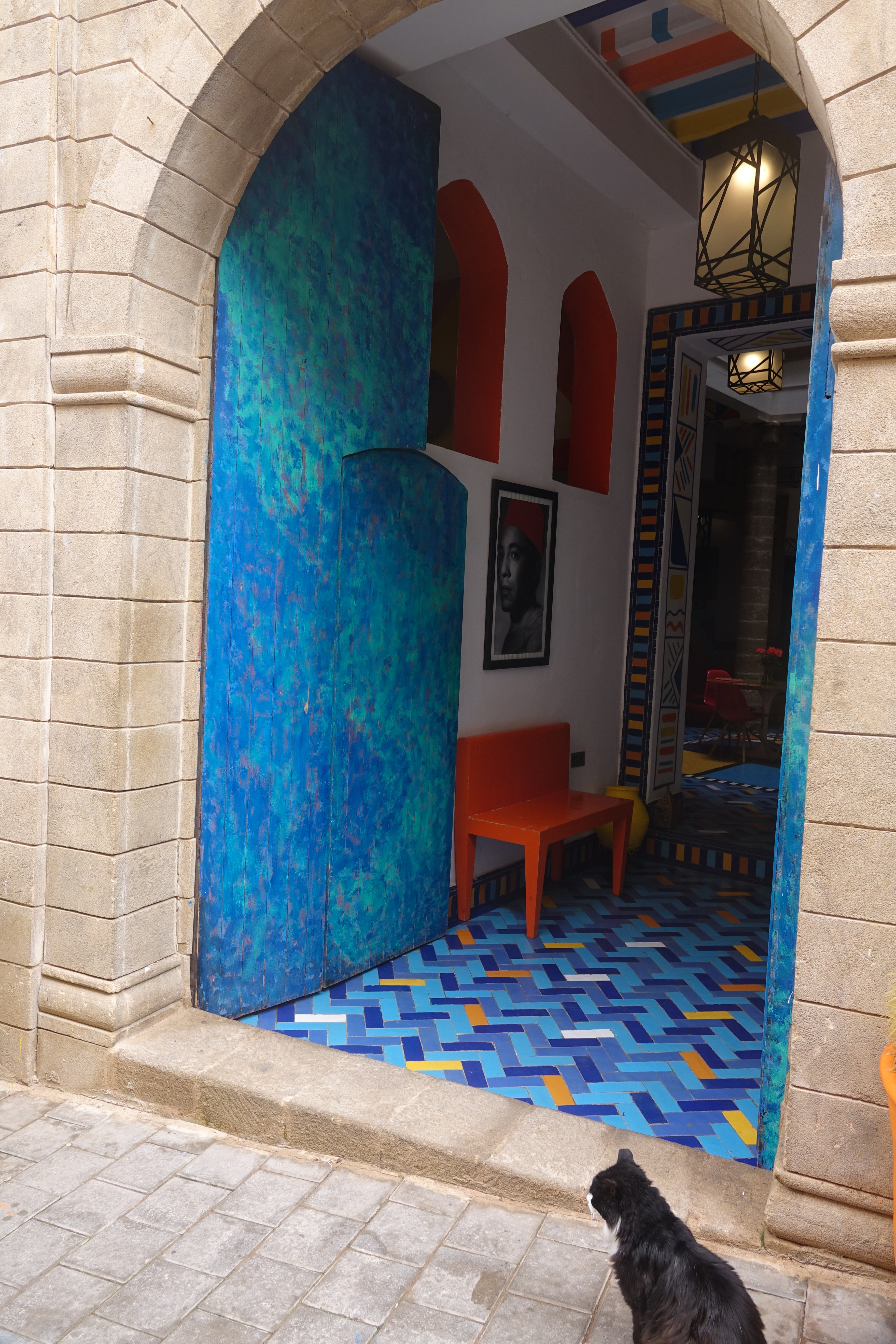 Katzen haben hier in Marokko Narrenfreiheit, sie dürfen in Geschäften auf Dekorationsgegenständen und Springbrunnen herumturnen, ohne dass sie vertrieben werden.