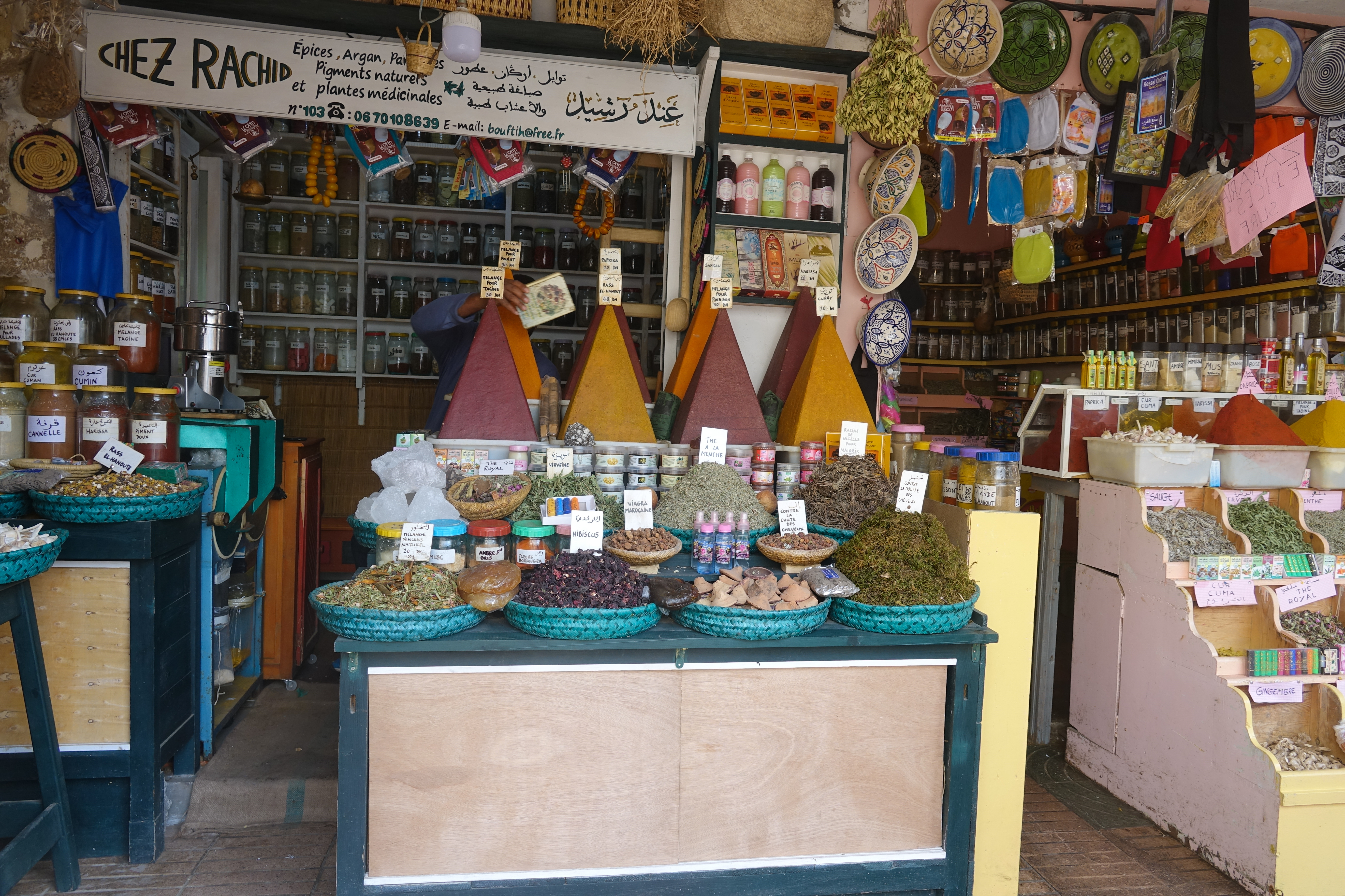 In diesem Gewürzladen bekamen wir eine umfassende Beratung über die Besonderheiten marokkanischer Gewürze und das in perfektem Deutsch,weil der Besitzer lange Zeit in Bamberg gelebt hat.