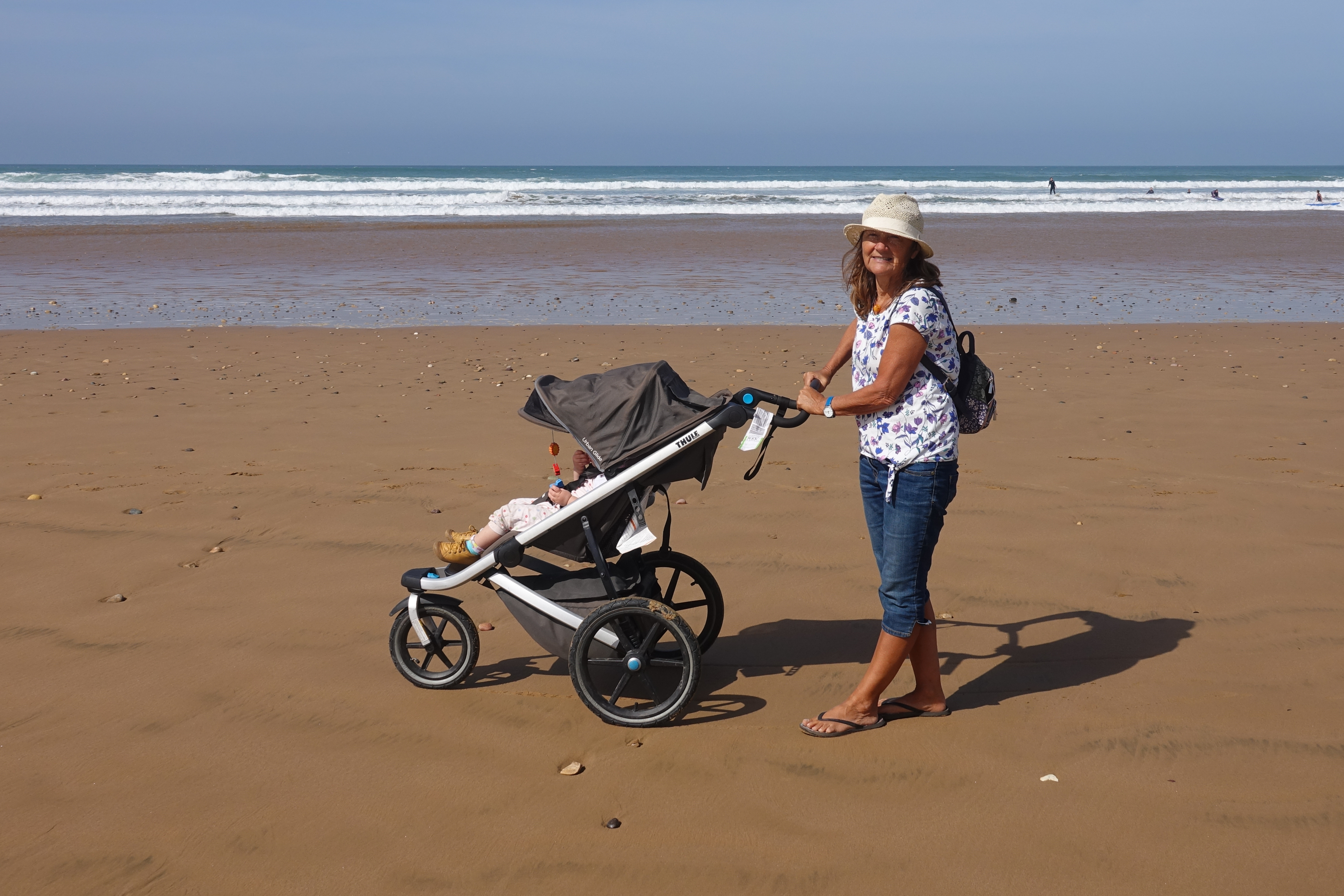 Opa und Oma machen lieber einen Strandspaziergang. Pausenlos Salzwasser schlucken ist nicht unser Ding.
