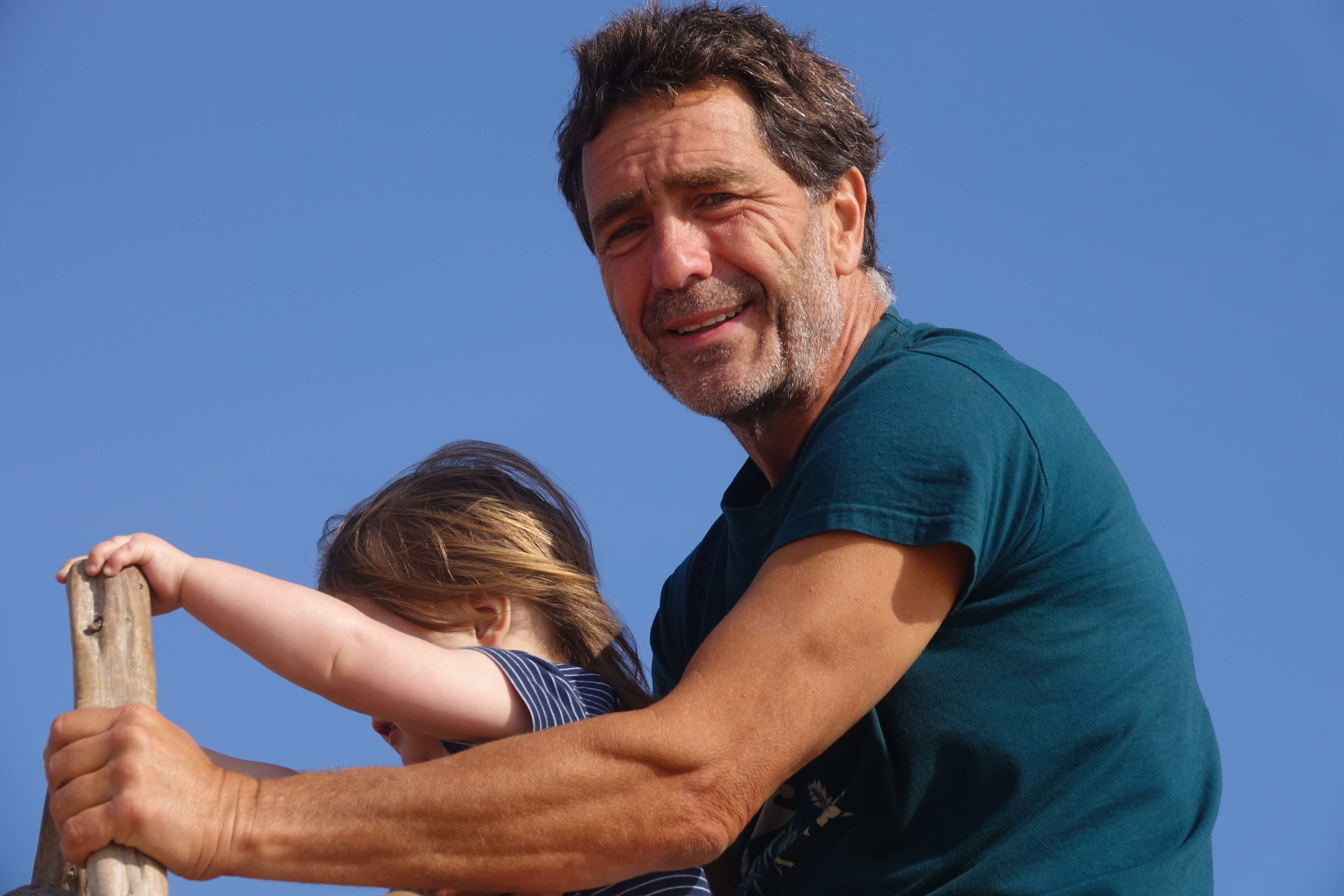Amalia interessiert sich vor allem für Katzen, Hühner und Hunde während wir sprachlos sind vor dem Mut der Wellenreiter die hier mit ihren Brettern von den Felsen ins Wasser springen.