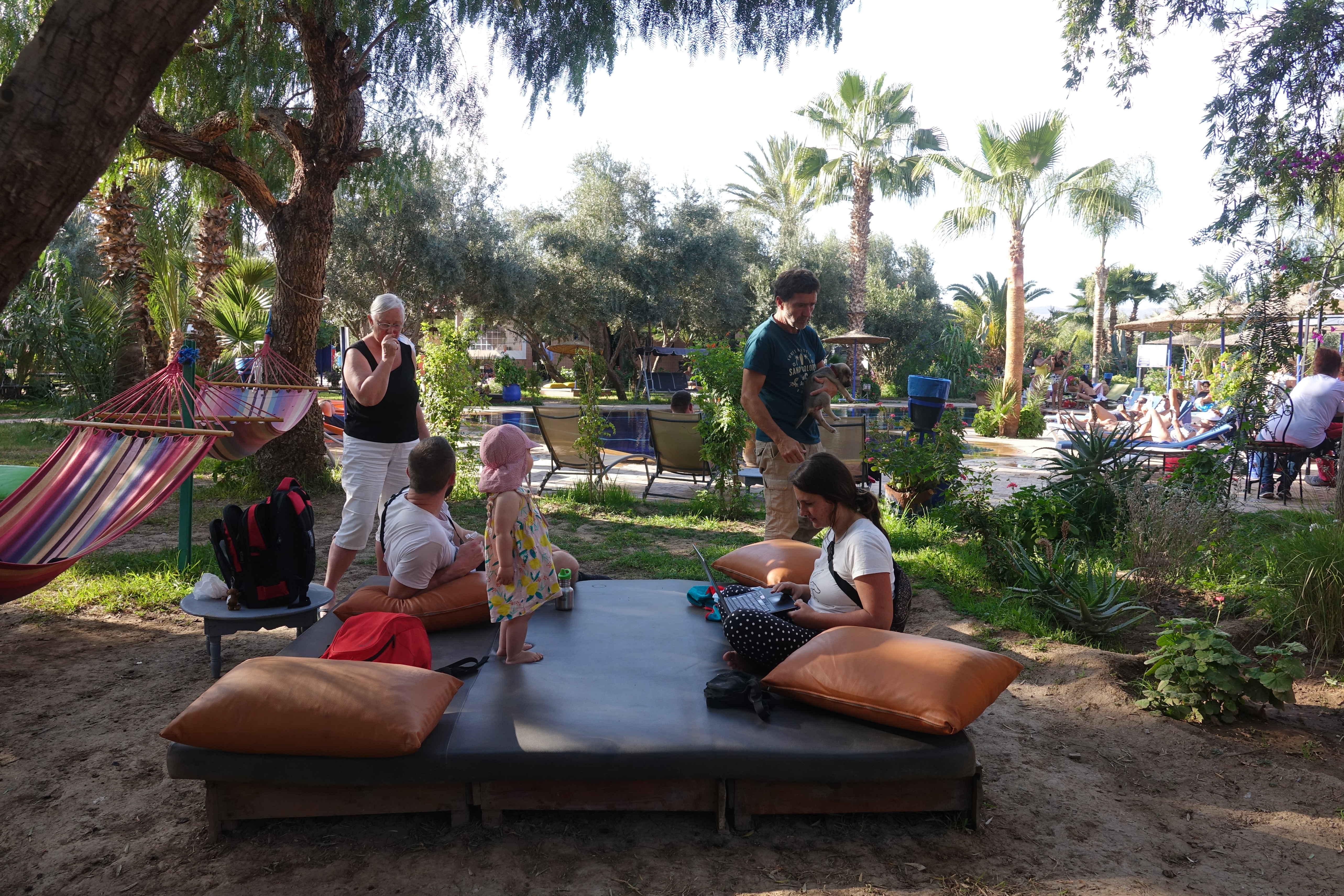 Man kann im Park der Familie nett unter Palmen oder am Pool sitzen.