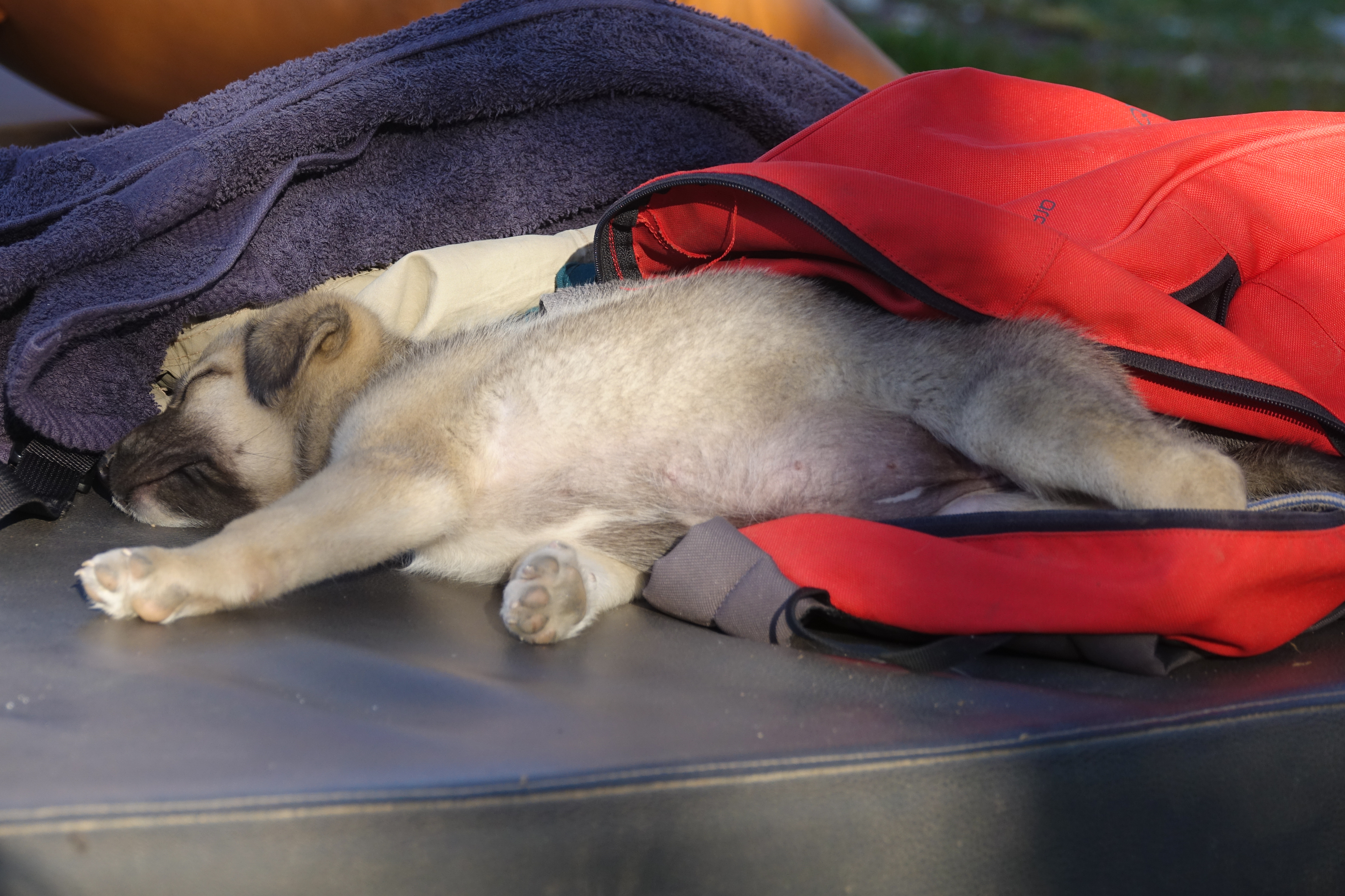 Aicha hat für ein Baby erstaunlich gut geschlafen und manchmal durch Fiepen angezeigt, dass sie Mal raus muss. Dann hat sie ganz schnell ihr Geschäft erledigt und danach direkt weiter geschlafen. Menschenkinder machen erheblich mehr Arbeit.