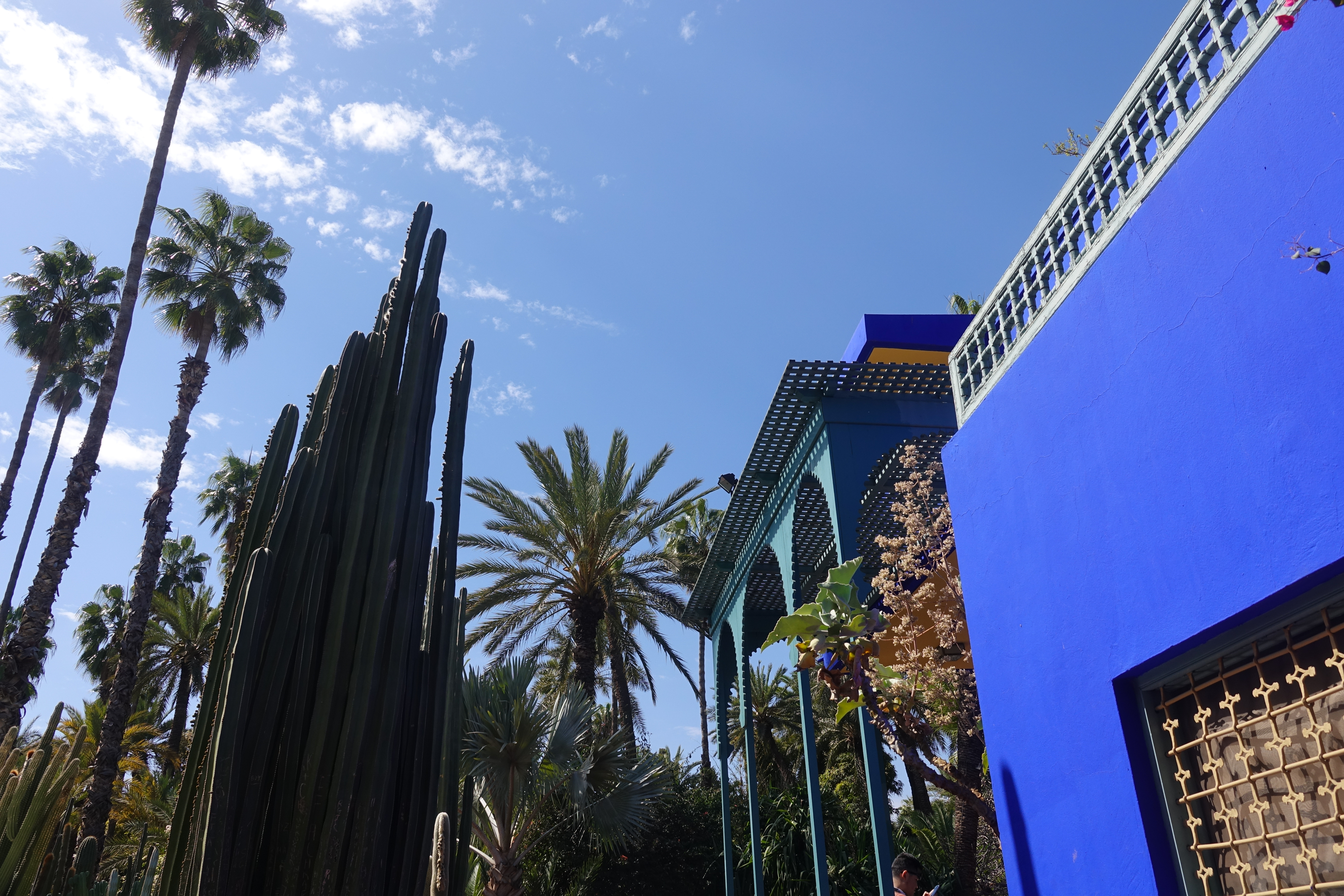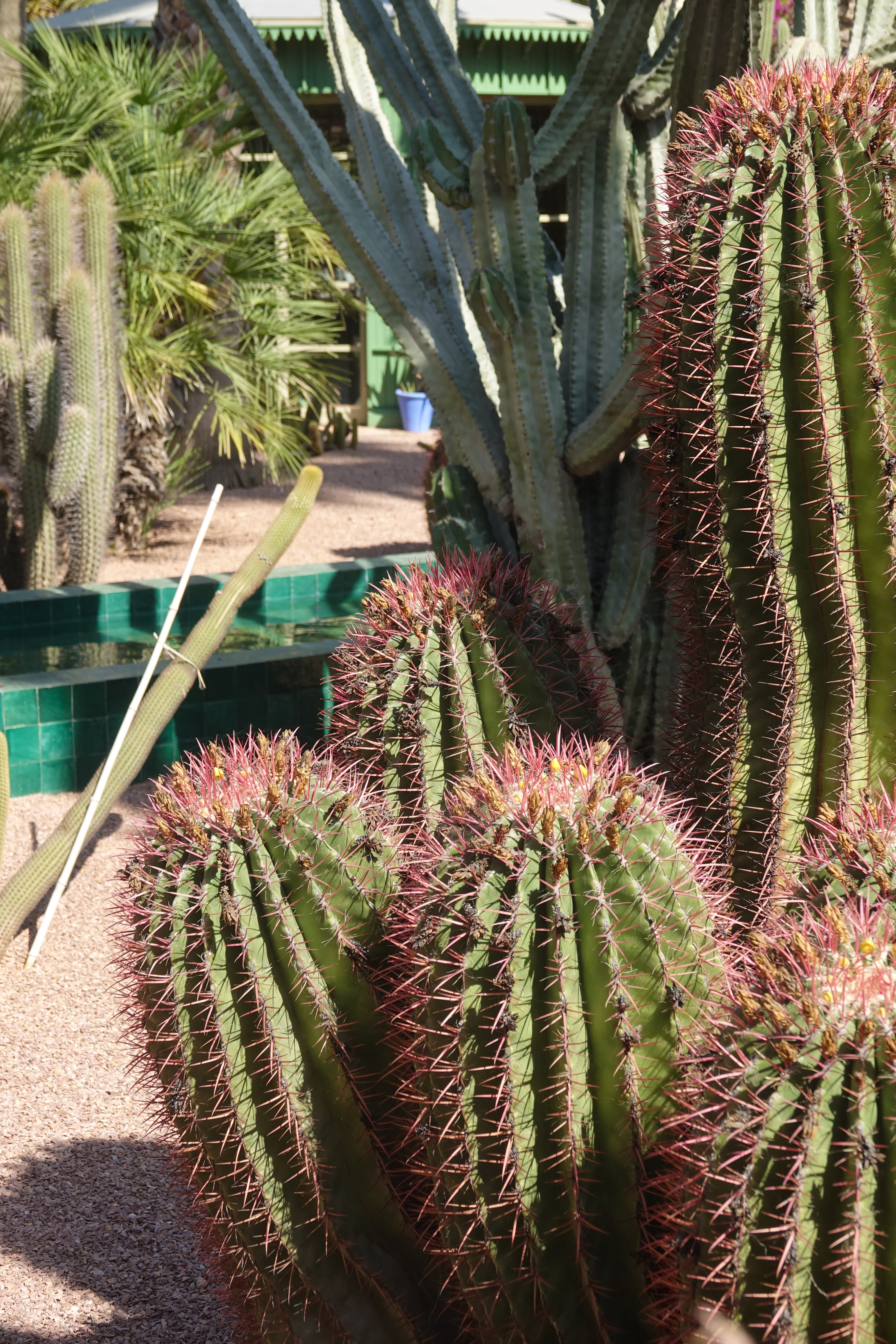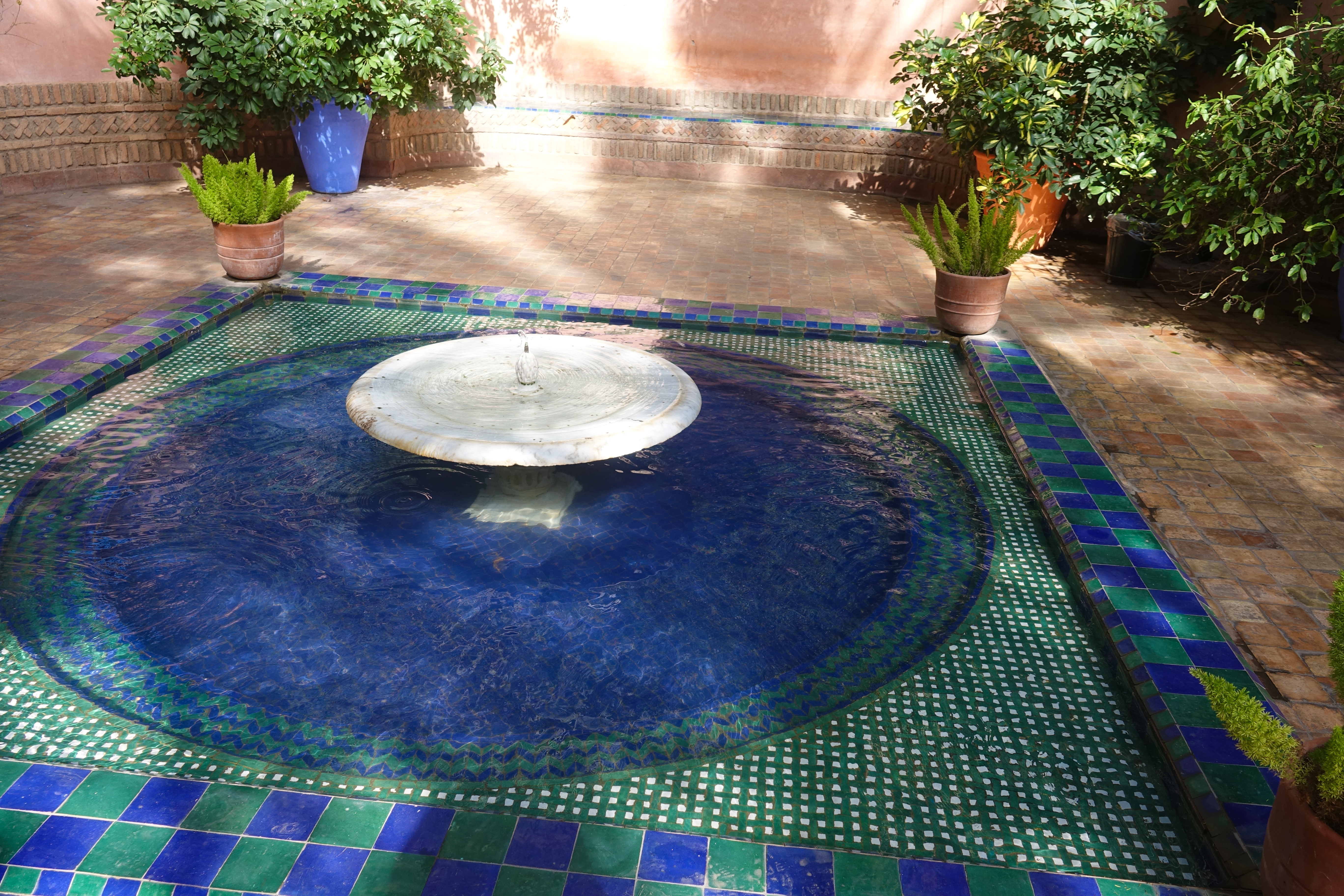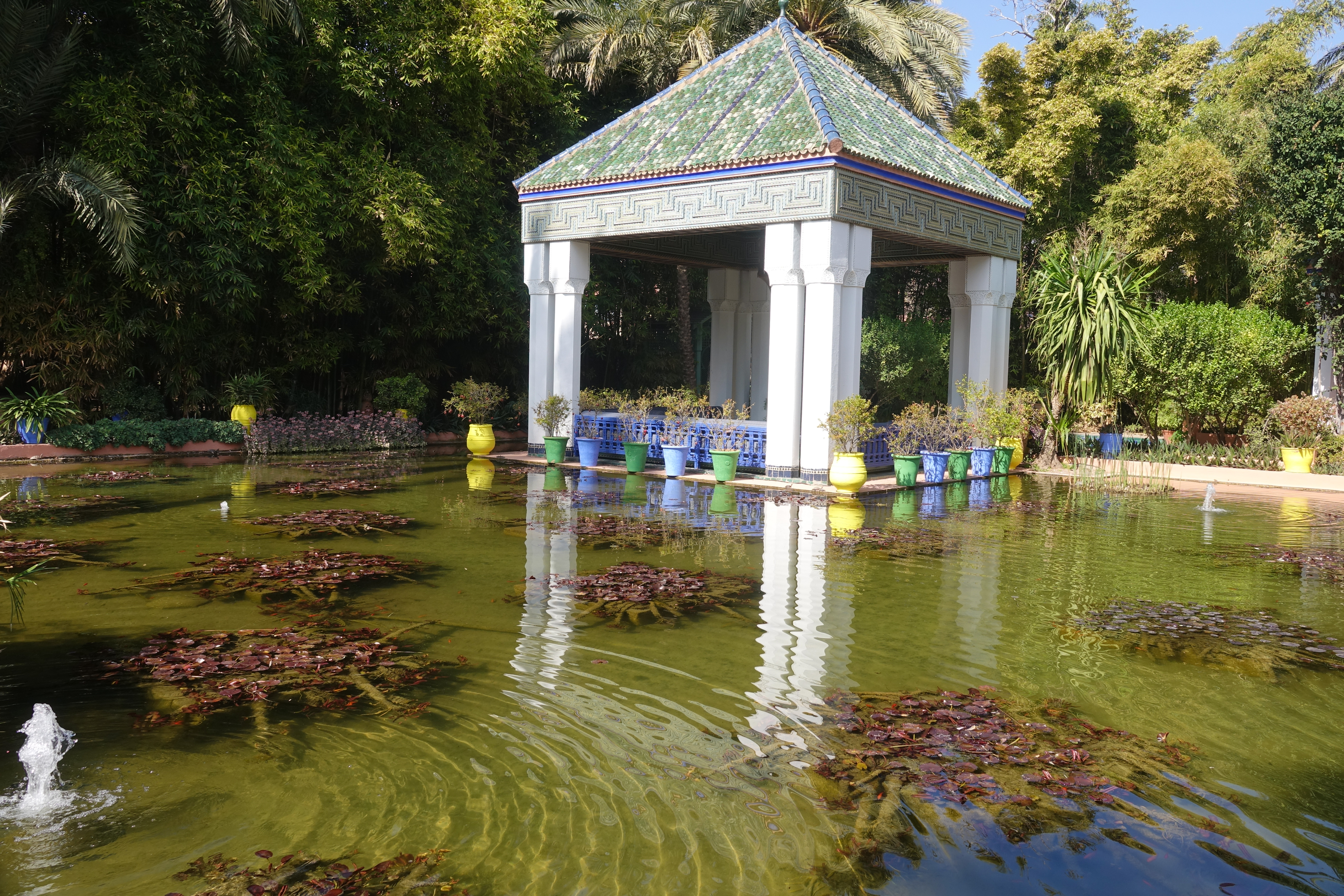 Der französische Maler Jaques Majorelle hat um sein Atelier einen herrlichen Garten angelegt. Es gibt einen sehr kühlen Bambuswald, Kakteen und Bougainvilleen. Die Pflanzen wirken großartig weil immer wieder dekorative Wasserbecken mit Pflanzendekorationen dazwischen angeordnet sind.