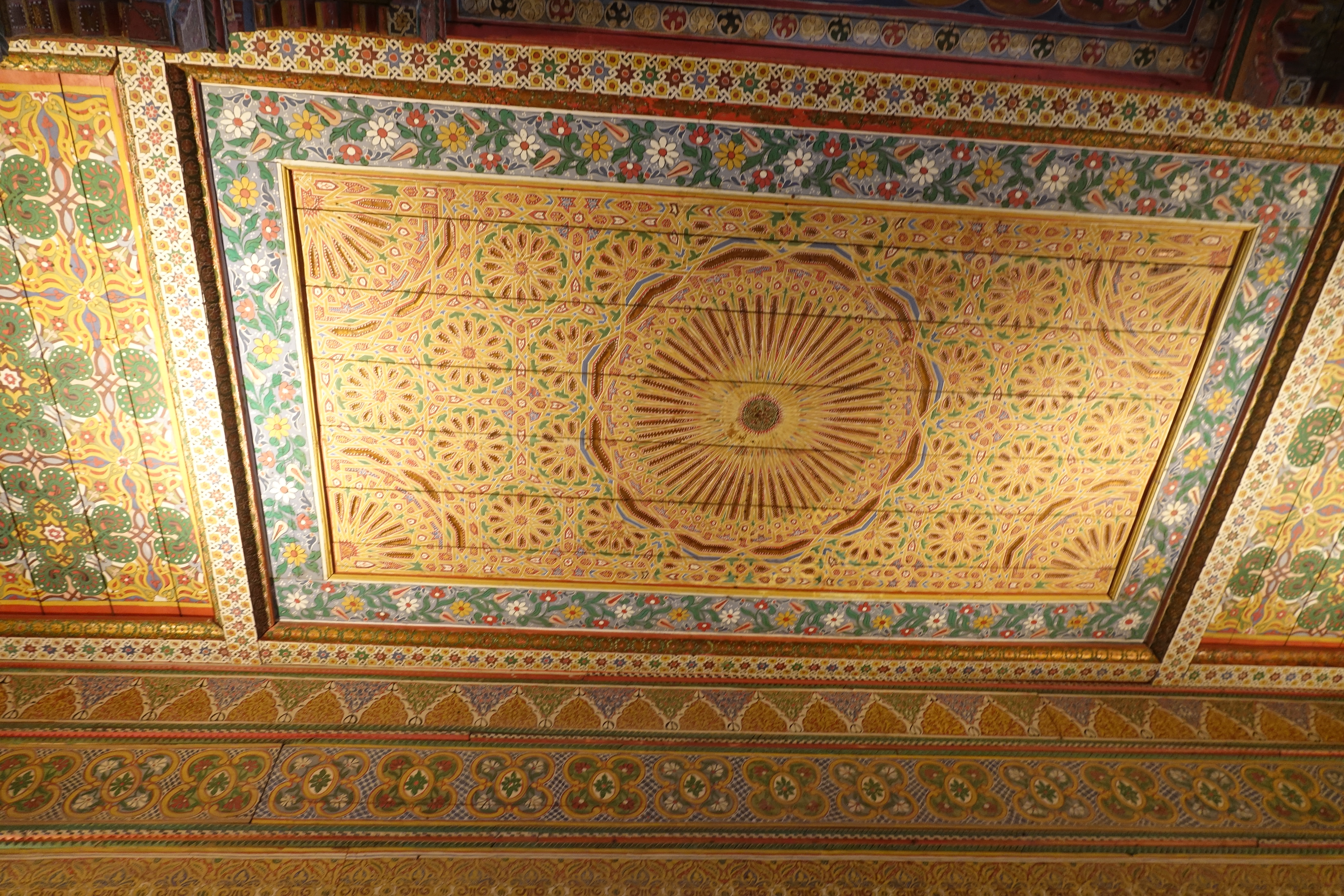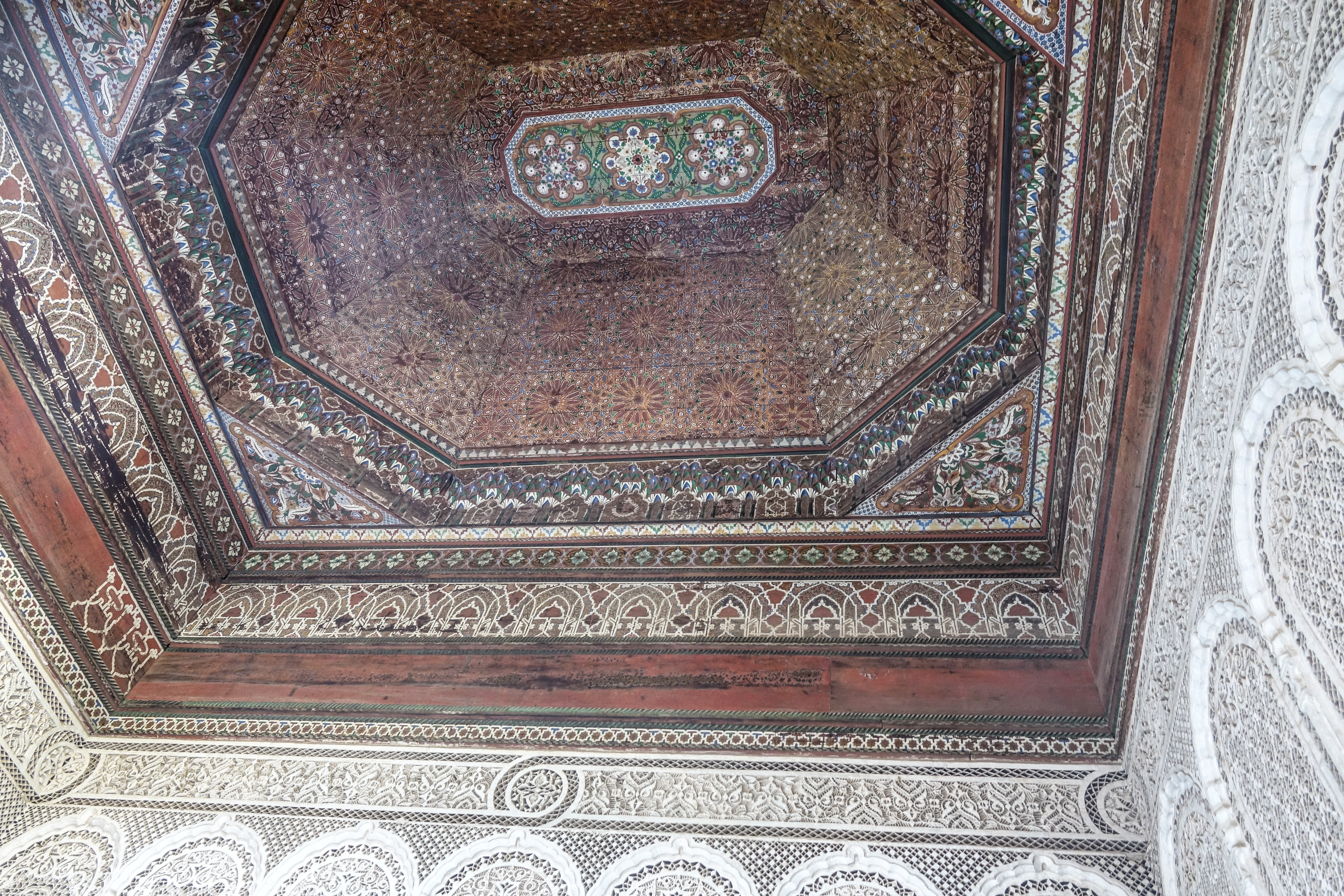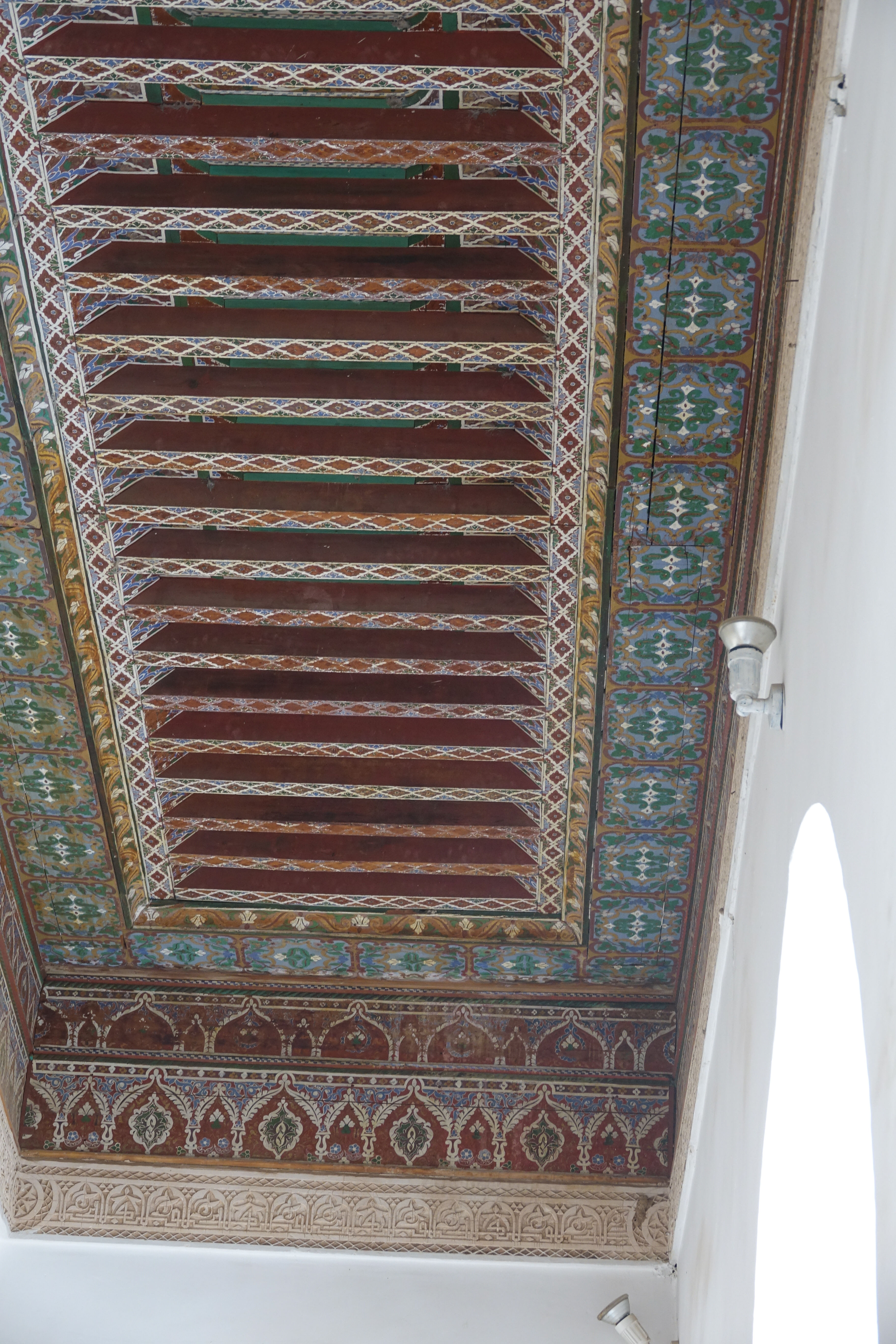 Wir haben hinter der Koutoubiamoschee mitten in der Innenstadt erstaunlich ruhig geschlafen und sogar den Ruf vom Minarett zum Morgengebet komplett verpasst. Von diesem Stellplatz kann man zu Fuß in 20 Minuten zum Bahia Palace laufen. Der Palast ist wirklich wunderschön und Carmen gefallen vor allem die reich verzierten Zedernholzdecken.