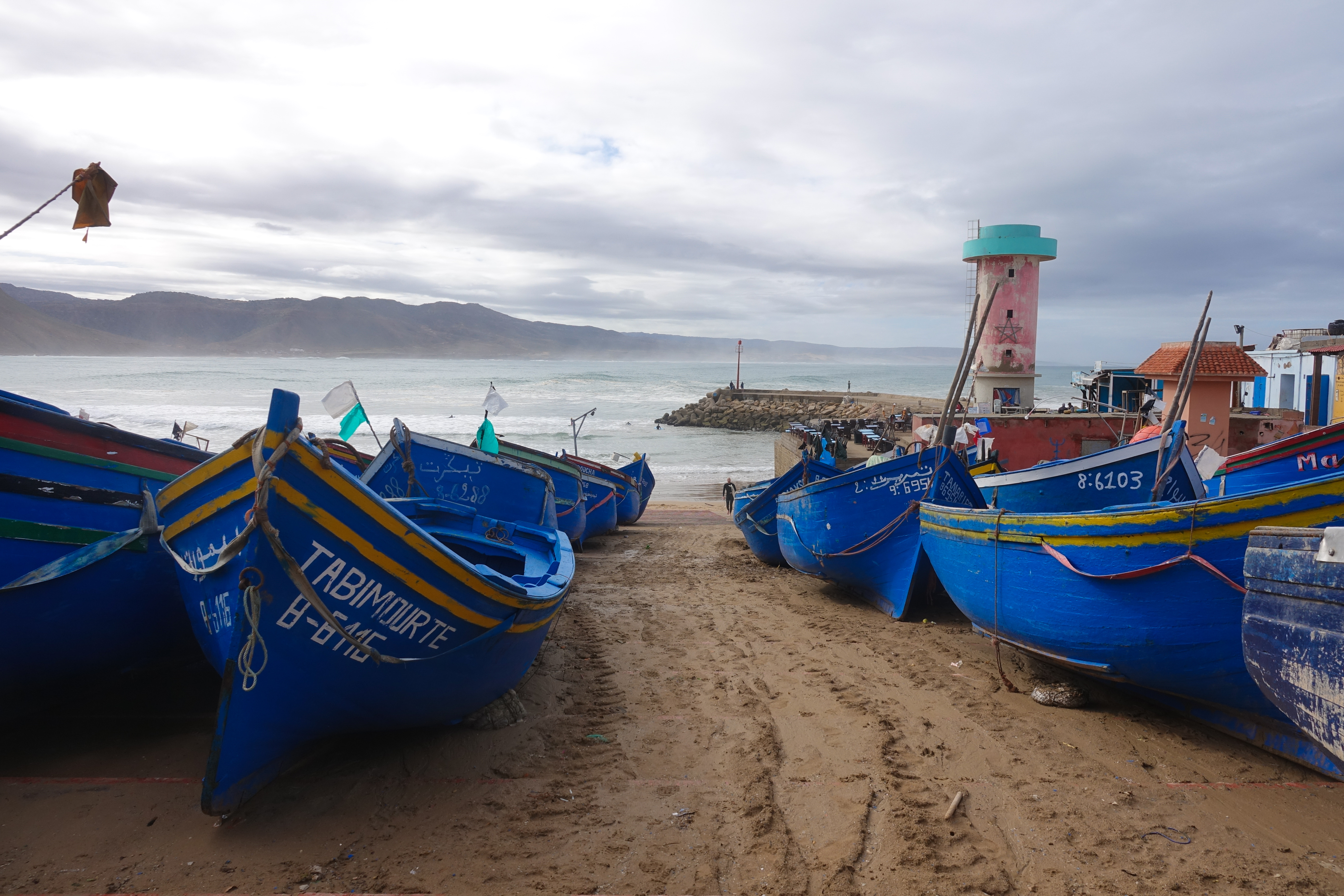 Ursprünglich hatten wir einen weiteren Strandtag an unserer Entdeckung von gestern geplant, aber weil das Wetter ausnahmsweise nicht strandtauglich ist, sehen wir uns zunächst Imsouane an. Uwe hat den Strand gestern Ibisbucht genannt, weil dort noch viele der seltenen, aber hässlichen Vögel leben (Waldrapp).