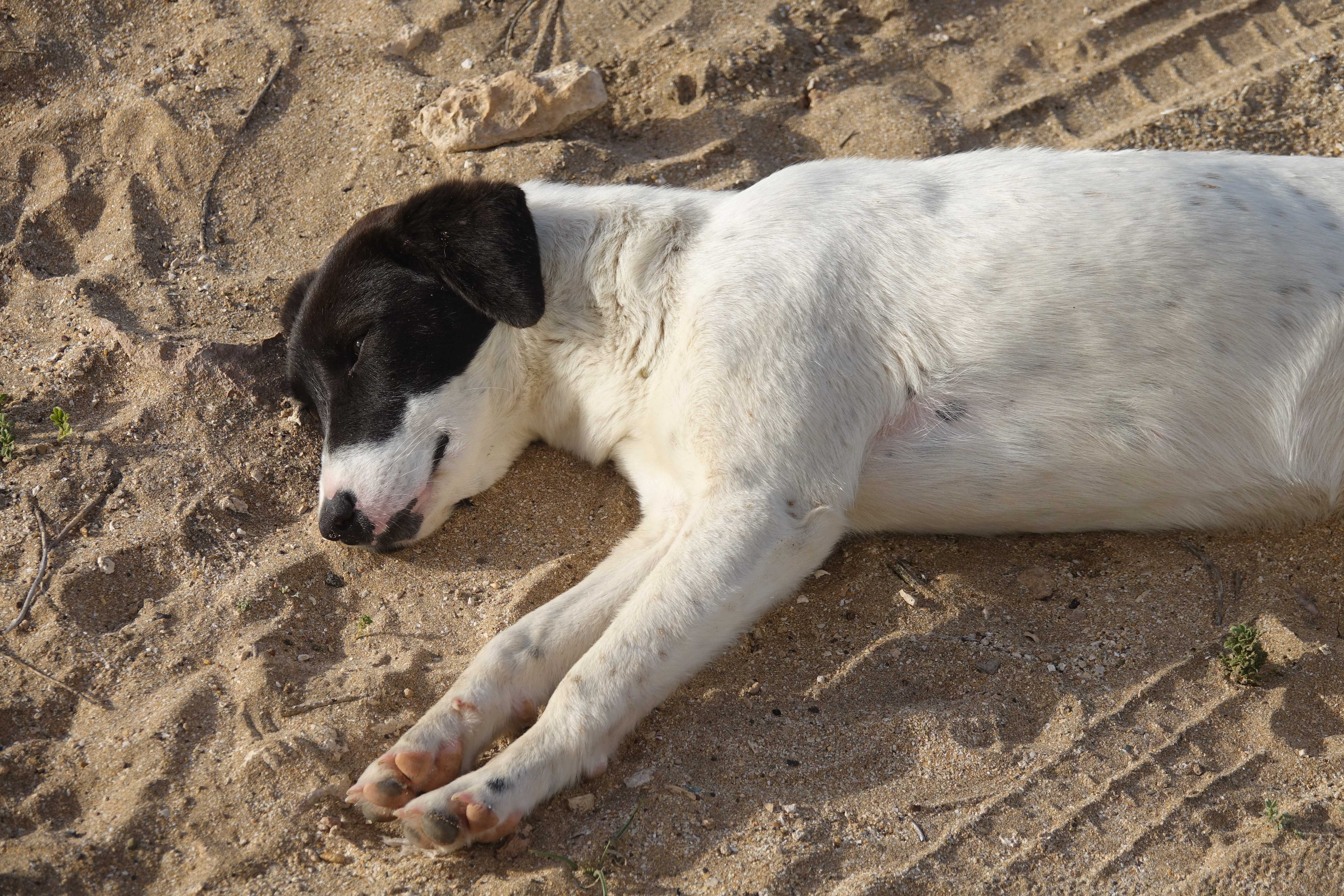 Auf dem Campingplatz Paradis Aicha bekommt man Brot, Fisch und Gemüse mit dem Esel angeliefert. Kaum sind wir an unserem Platz angekommen, entsorgt ein Marokkaner ein Hundebaby an der Mauer vor unserem Wohnmobil. Ja und dann müssen wir uns um die kleine Maus kümmern. Baden, Zecken ziehen, trocken rubbeln, kuscheln, füttern. Ja, so ist das, wenn man ein Baby hat. Und das Baby heißt jetzt Aicha.