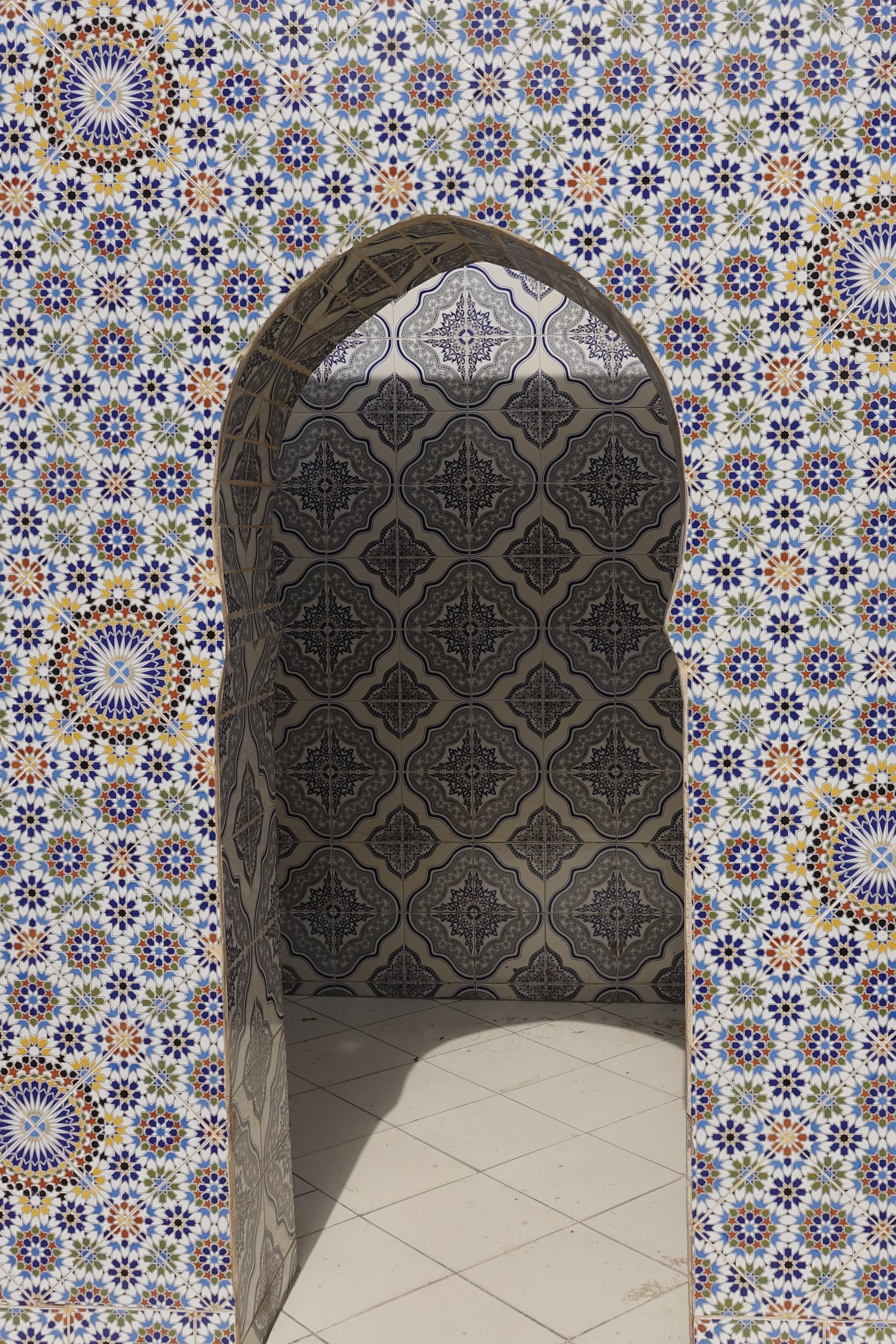 Wir besichtigen noch das Grabmal des heiligen Bouzerktoun, geflieste Räume mit Särgen und erfahren später, dass das ein besonderes Entgegenkommen ist. Normalerweise wird sogenannten Ungläubigen, also uns, der Zugang verwehrt.
