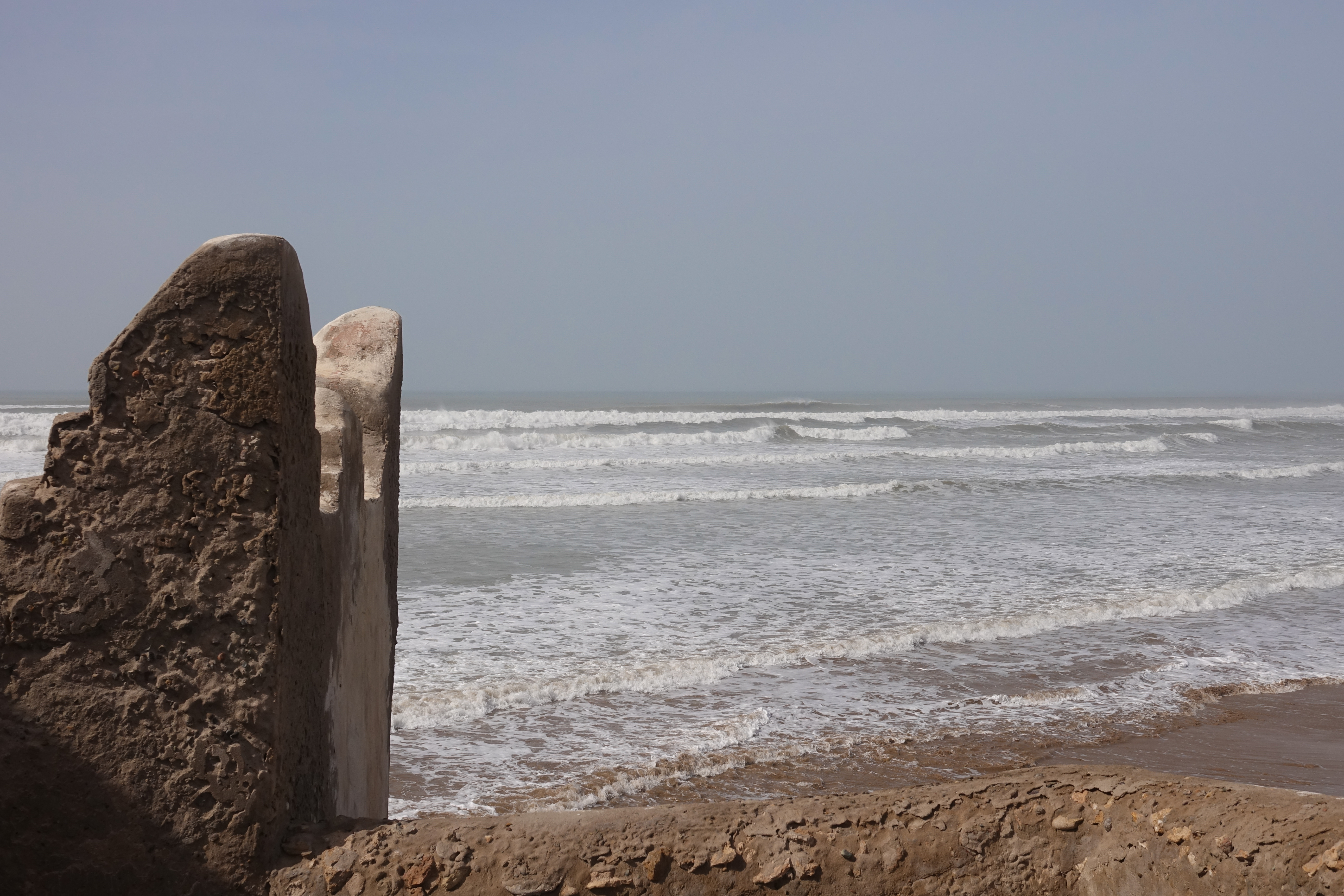 Anschließend sehen wir uns das Hostel von Jan und Lisa an. Es sieht recht passabel aus. Sidi Kaouki selbst besteht nur aus ein paar Hostels und Surferkneipen. Ob es hier jemals einen richtigen Ort gab? Auf jeden Fall ist der Strand toll. Wir wollen am Strand übernachten und hoffen, dass wir morgen Mal wieder richtigen Sommer haben. Heute war das jedenfalls nichts. Das ist natürlich Jammern auf hohem Niveau. Es waren nur 18 Grad Celsius und die Sonne ließ sich selten sehen. Das haben wir hier den ganzen Winter über noch nie erlebt.
