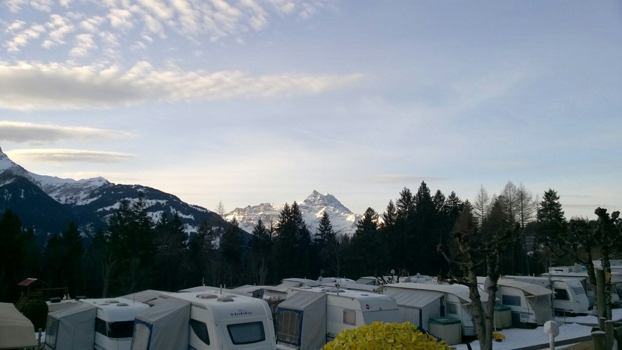 Wir fahren weiter zu unserem reservierten CP in Gryon. Der Ort liegt auf 1200 m Höhe und die Eiergondel startet direkt neben dem CP. Besonders schön ist der Campingplatz nicht, aber für 1 Woche lässt es sich aushalten.