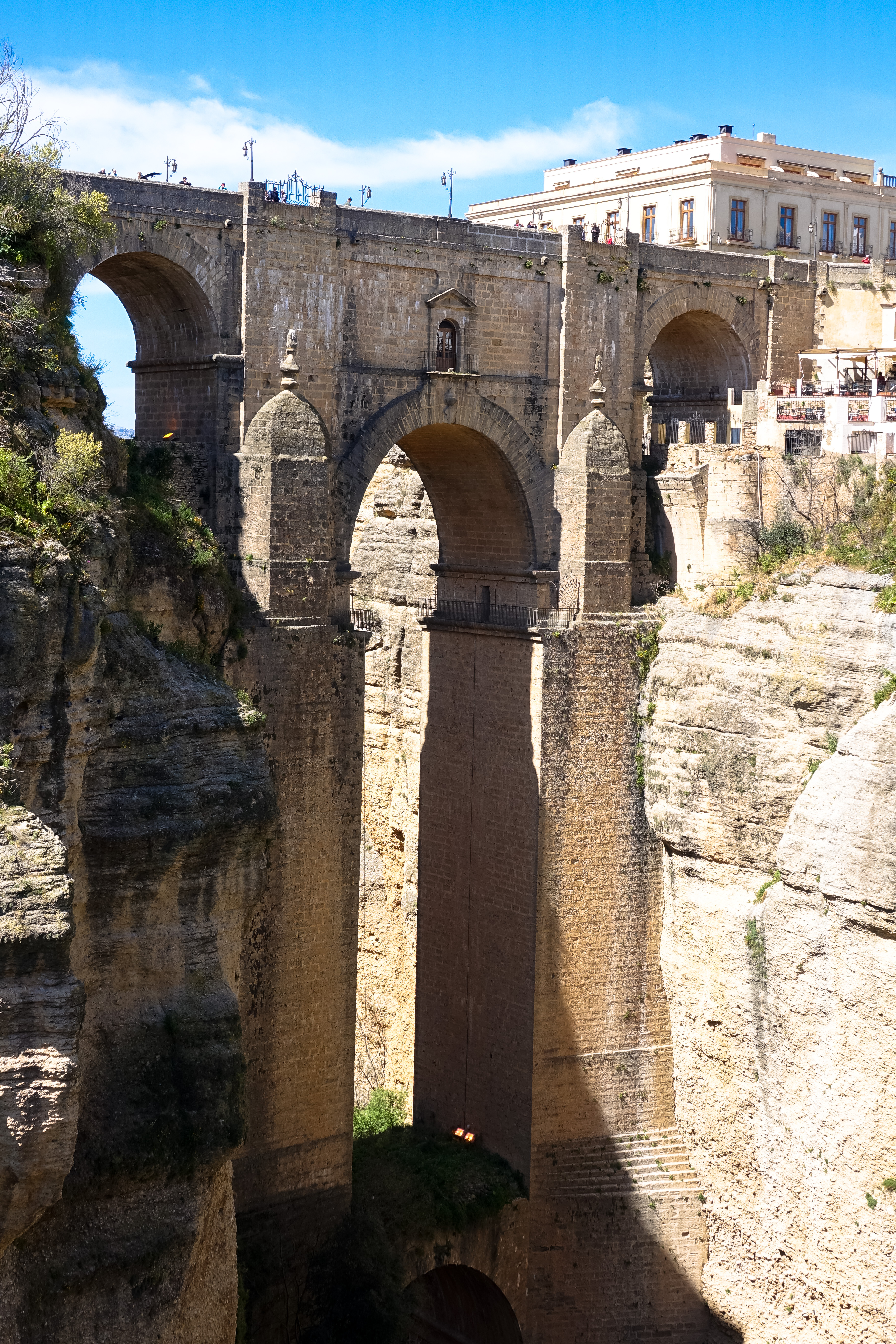 Ronda liegt auf einem Felsplateau und wird durch eine riesige Felsspalte, die durch den Rio Guadalevín entstanden ist, in 2 Ortsteile unterteilt. Das Wahrzeichen von Ronda ist die Brücke die die beiden Ortsteile miteinander verbindet.