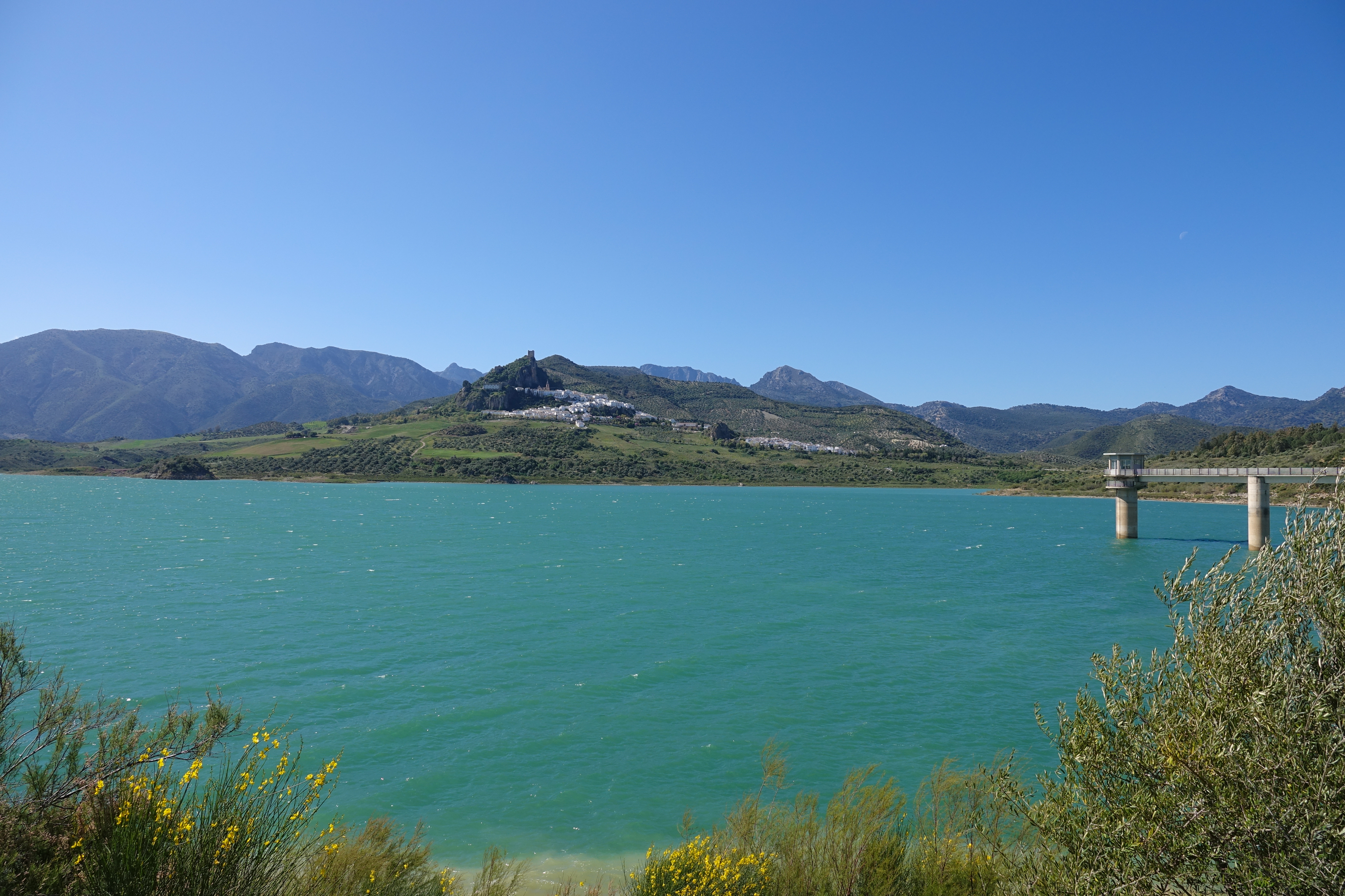 Anschließend picknicken wir wieder einmal im Grünen und fahren vorbei am wunderschönen Embalse von Zahara nach Aldogonales, wo Andy und Becca seit 14 Tagen sind.