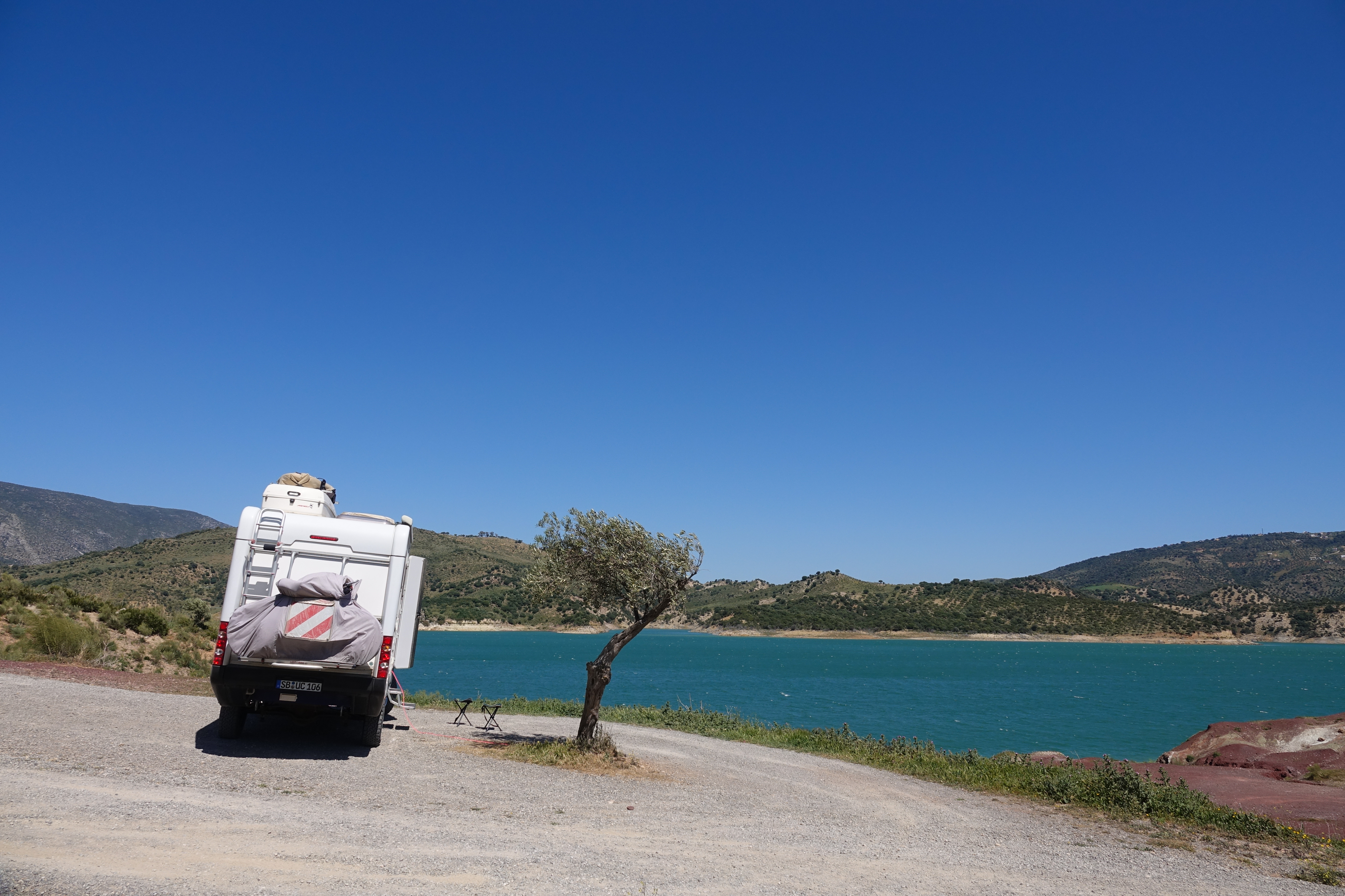 Am Stausee von Guadalhorce finden wir ein ruhiges Übernachtungsplätzchen.