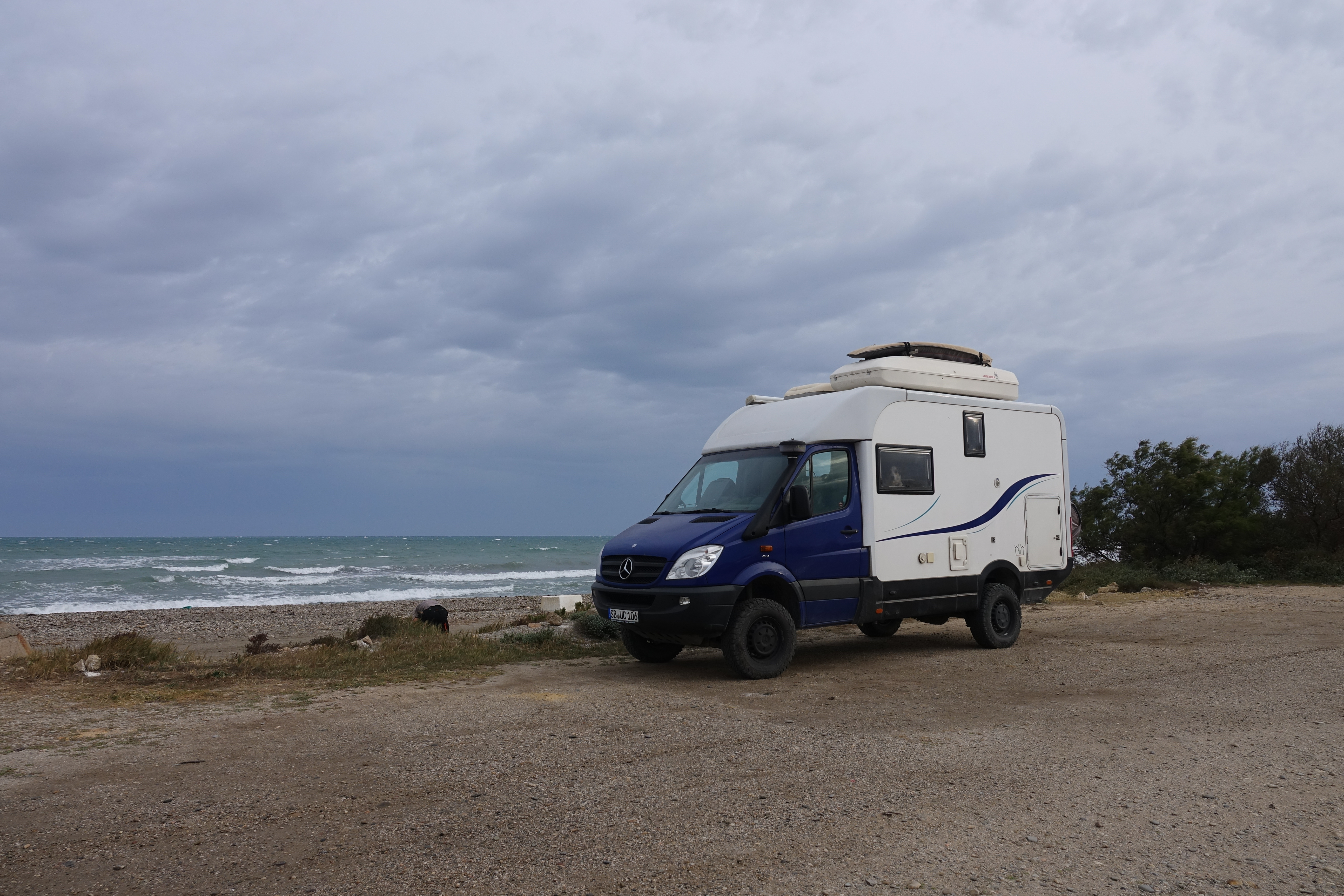 Anschließend bringen wir Mischa zum Campingplatz und warten bis die Rügenpiraten Uwes neuen Kite bringen, quatschen ein bisschen mit Wülle und machen uns auf nach Ronda. Wir finden dort einen schönen ruhigen Stellplatz, aber die Besichtigung des Ortes heben wir uns für morgen auf. Übrigens ist es hier komplett windstill. In Valdevaqueros waren nämlich für heute Nacht 60 Knoten gemeldet. Das ist Orkanstärke, also nicht angenehm.