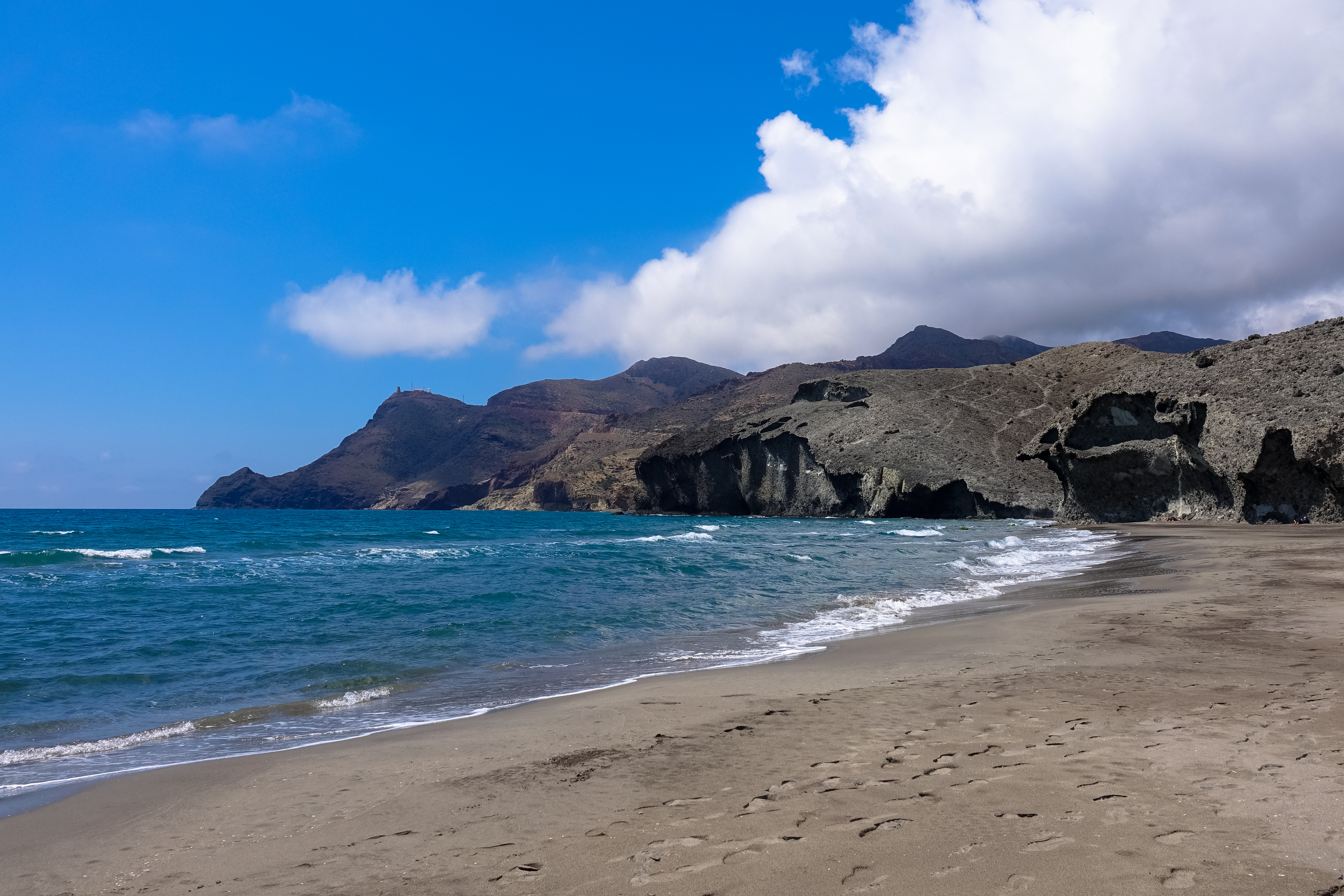Anschließend fahren wir hinter Carboneras zum Torre Purolico.
