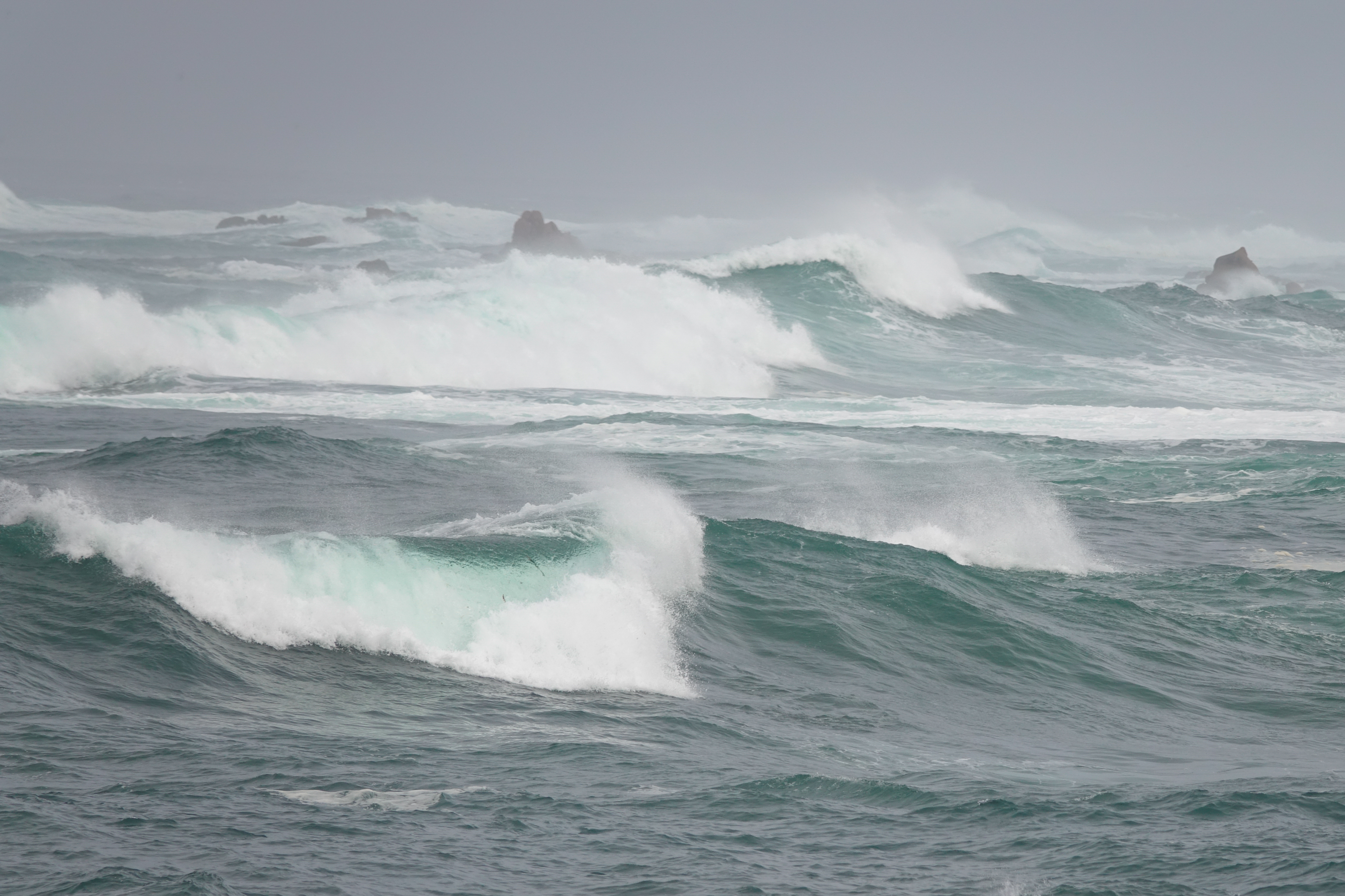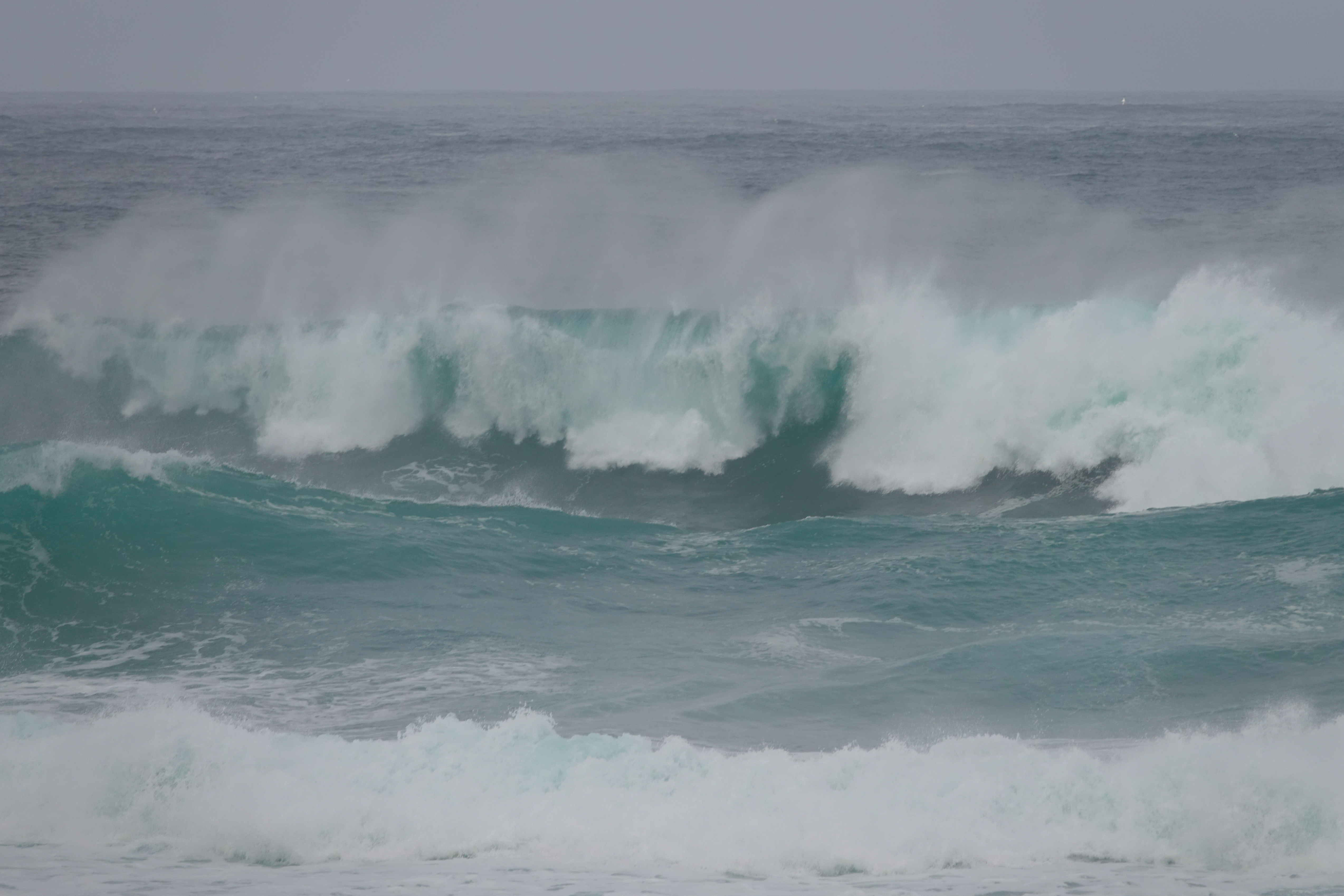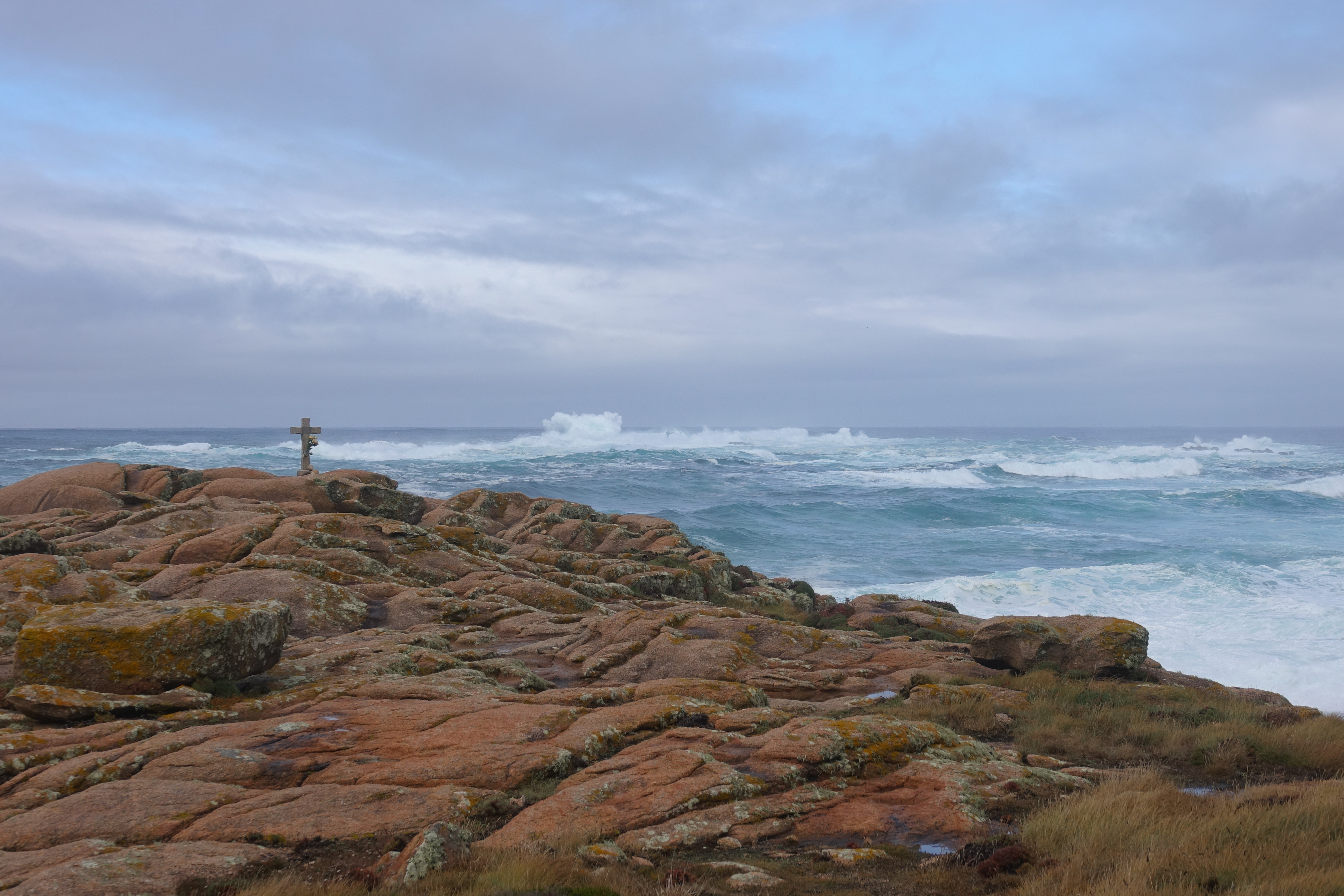Über eine Piste fahren wir an der wilden Costa da morte entlang. Obwohl es fast windstill ist, haben wir noch nie so aufgewühltes Wasser gesehen. Die Bilder geben nicht wirklich wider, wie wahnsinnig wild es hier aussieht. Kein Wunder, dass sich hier niemand zum Baden oder Surfen her traut.