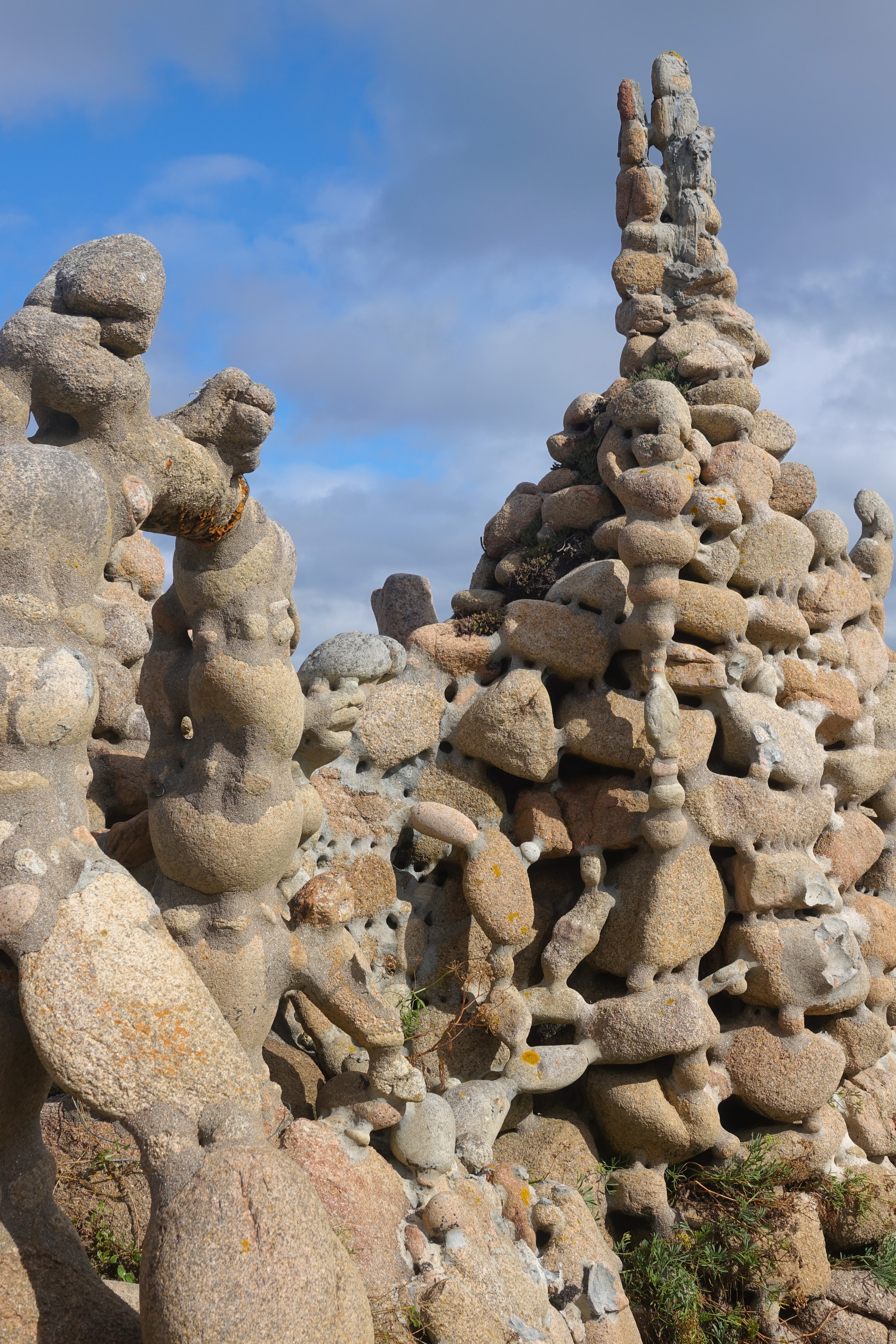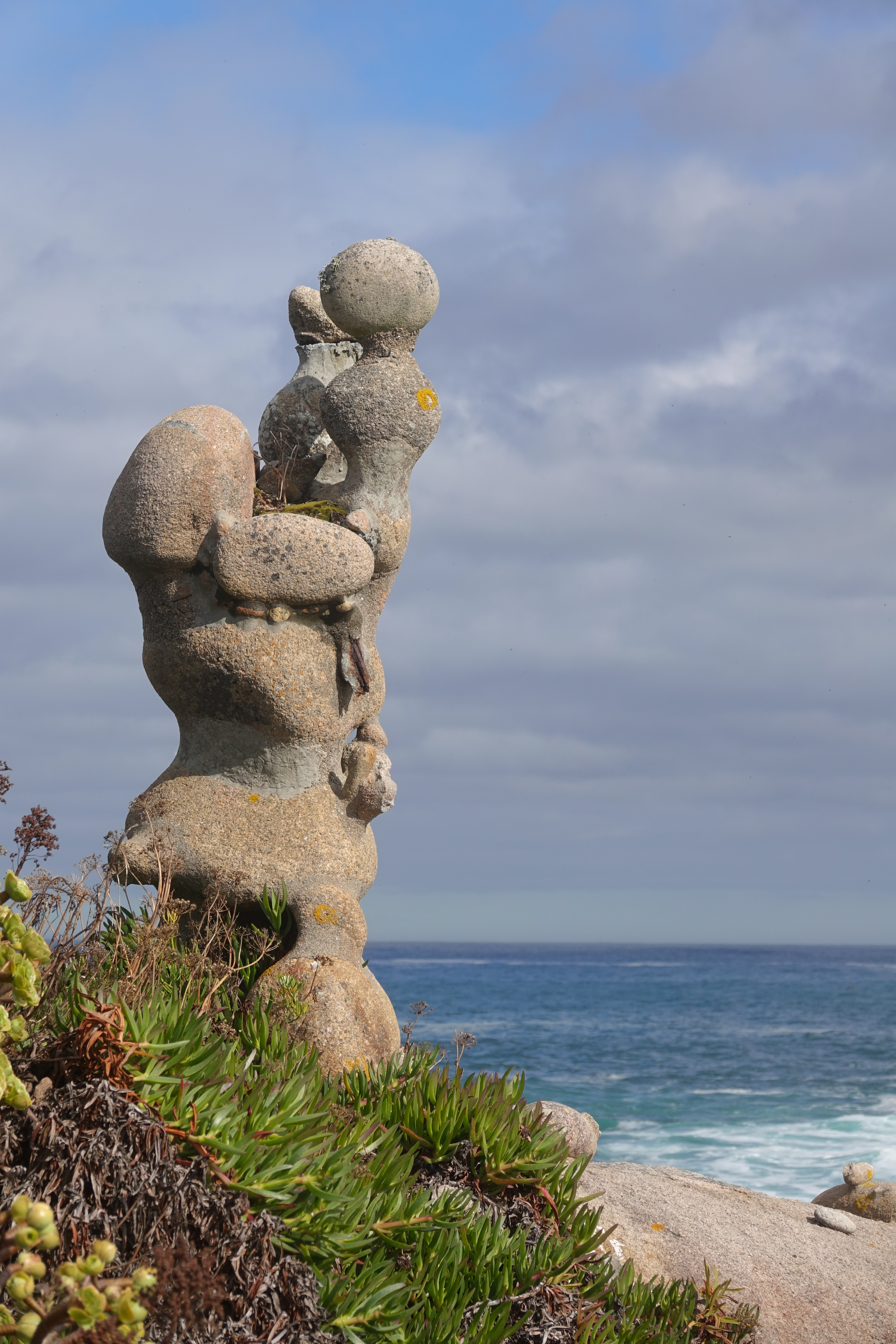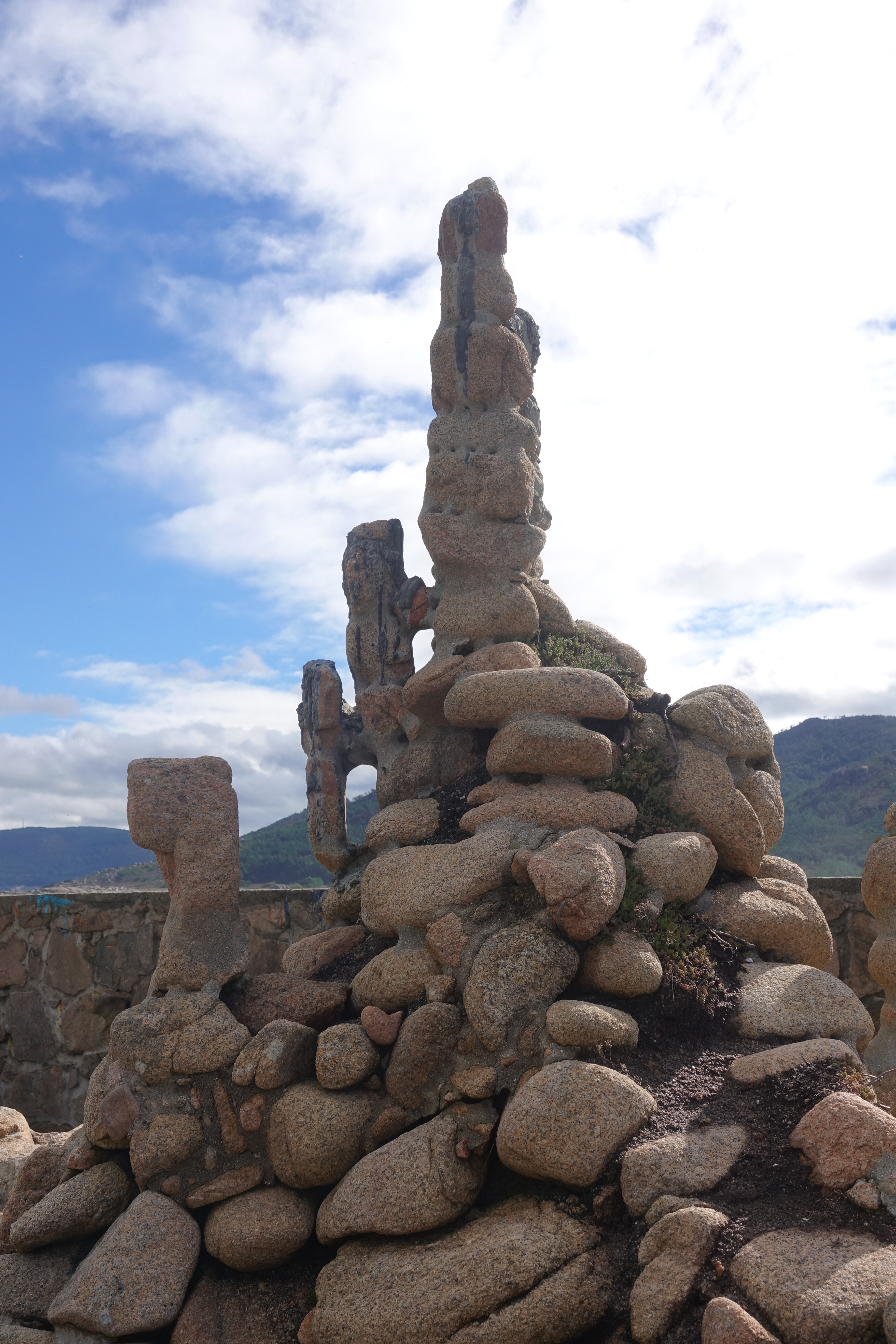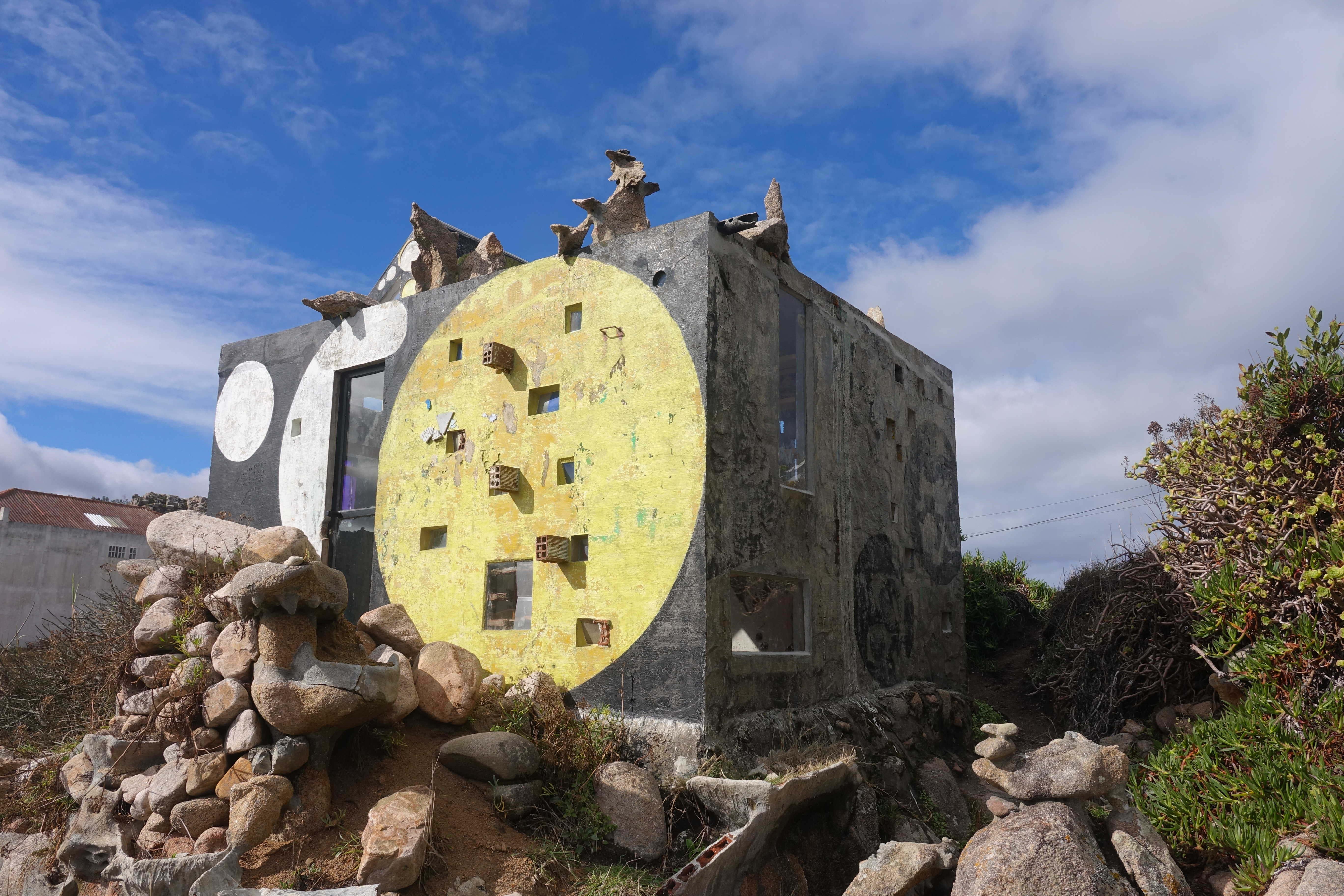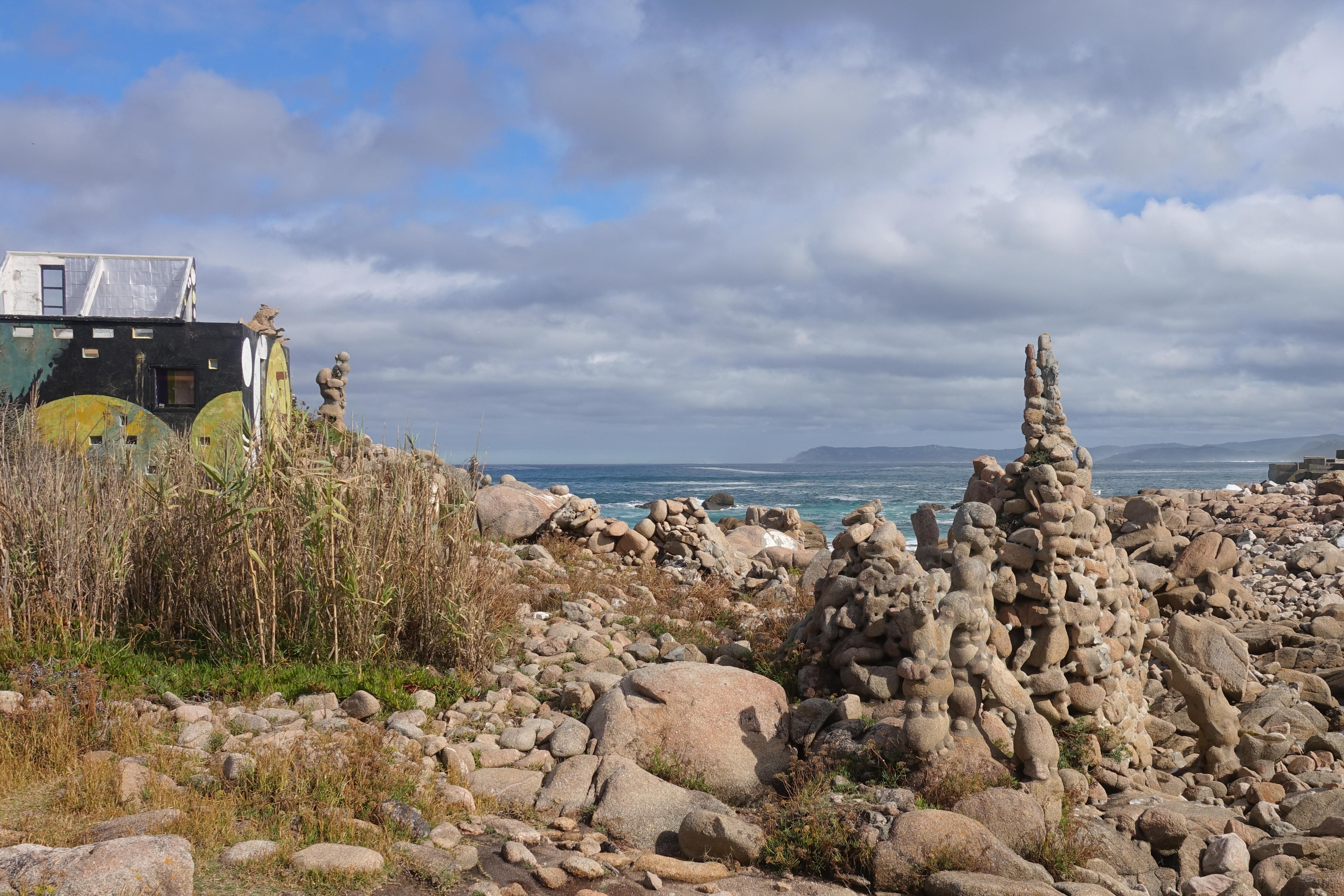 Anschließend fahren wir nach Camelle zu Manfred. Schade, dass er nicht mehr lebt, aber er würde es wohl nicht glauben, dass es hier ein Museum zu seinem Gedenken gibt. Eigentlich war Manfred ein deutscher Aussteiger, der in den Sechzigern hier hängen geblieben ist. Er lebt hier am Strand ein Einsiedlerleben und formte Skulpturen aus angeschwemmtem Treibholz und den runden Kieselsteinen. Er starb plötzlich kurz nach dem Tankerunglück der Prestige, das auch seine Kunstwerke in Mitleidenschaft zog. Daher wurde er zur Symbolfigur der Protestbewegung gegen den fahrlässigen Umgang mit dem Transport von Giftstoffen auf den Weltmeeren.