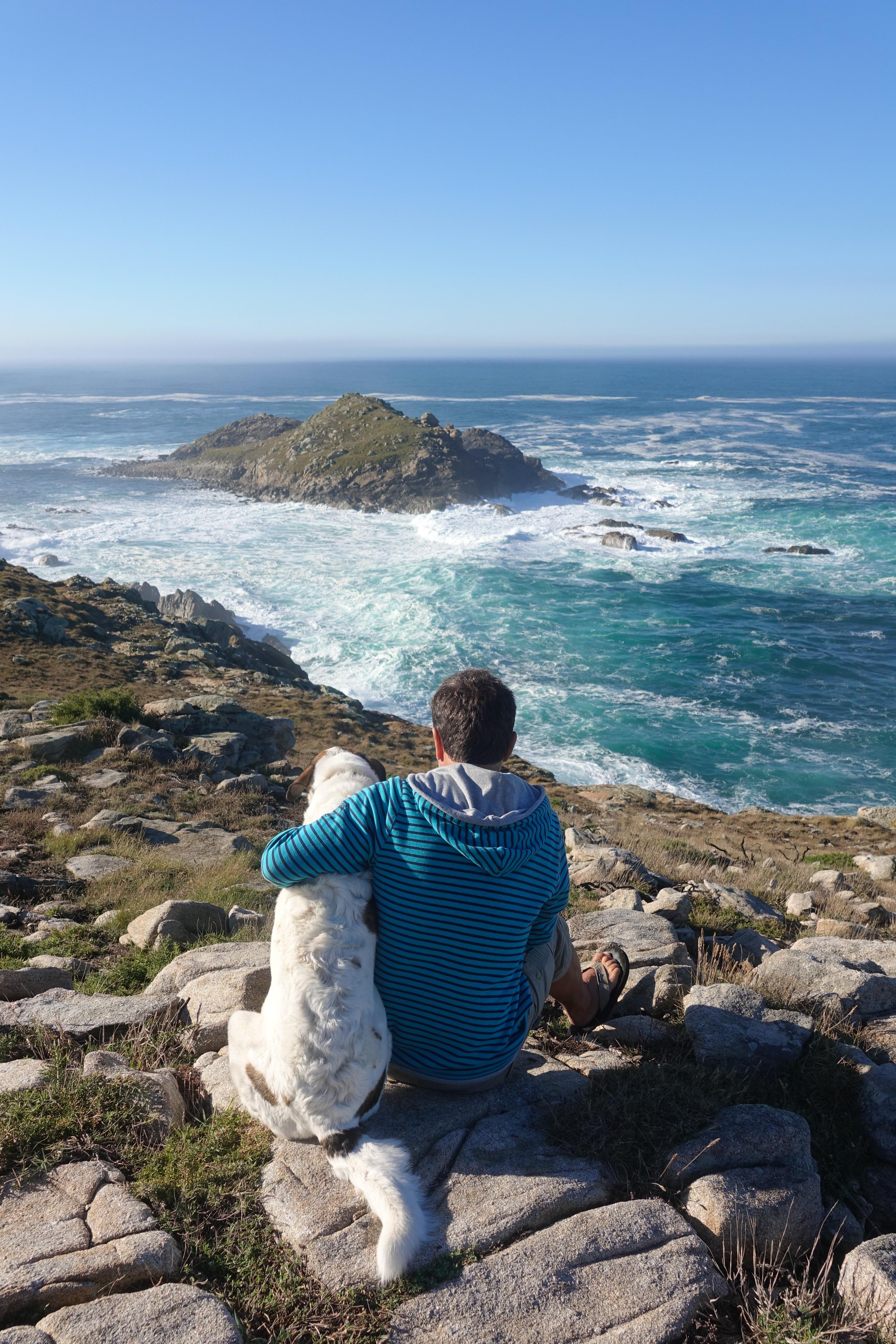 Wir sehen jede Menge Pilger und hören schon seit mehreren Tagen von Hape Kerkeling „Ich bin dann mal weg“ zur Einstimmung. Wir überlegen ernsthaft, den Jakobsweg zu pilgern, aber nur wenn unsere Hundis mitkönnen. Als wir heute das Kap besichtigen, natürlich mit Rucksack und Badelatschen, hat ein Spanier uns schon „Buon Camino“ gewünscht. Ob das ein Zeichen ist?