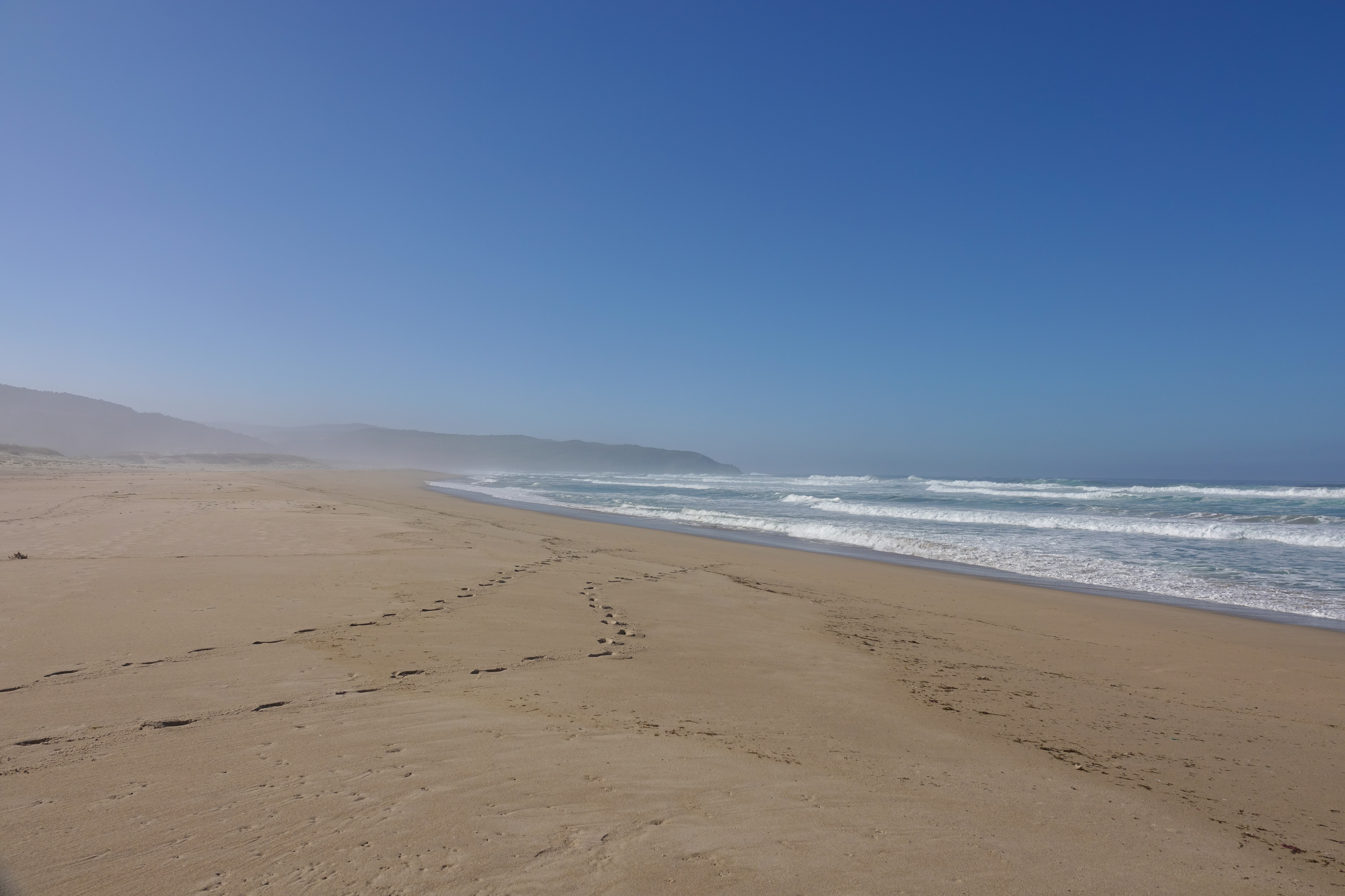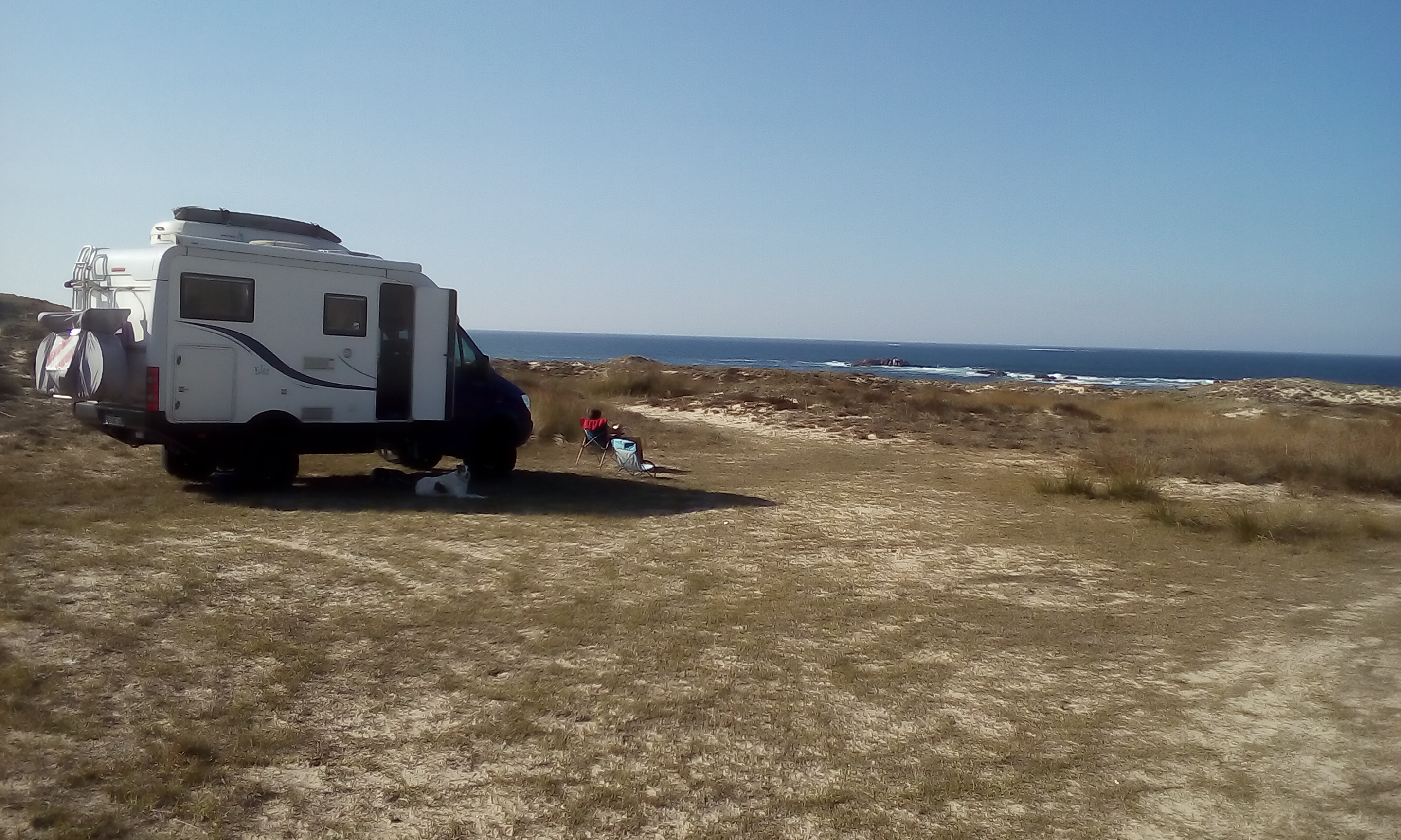 Der riesige Dünenstrand von Vilar ist schon Mal eher enttäuschend. Wegen des Dünenschutzes ist alles mögliche verboten. Gut, klar muss die Vegetation geschützt werden und darf nicht zertrampelt werden. Dazu sind die Stege natürlich sinnvoll, aber aus welchem Grund dürfen angeleinte Hunde die Stege nicht betreten, aber Pferde schon? Das ist kein Strand für uns. Außerdem gibt es auf dem Stellplatz massenhaft Wohnmobile, obwohl das im Naturschutzgebiet ausdrücklich verboten ist.