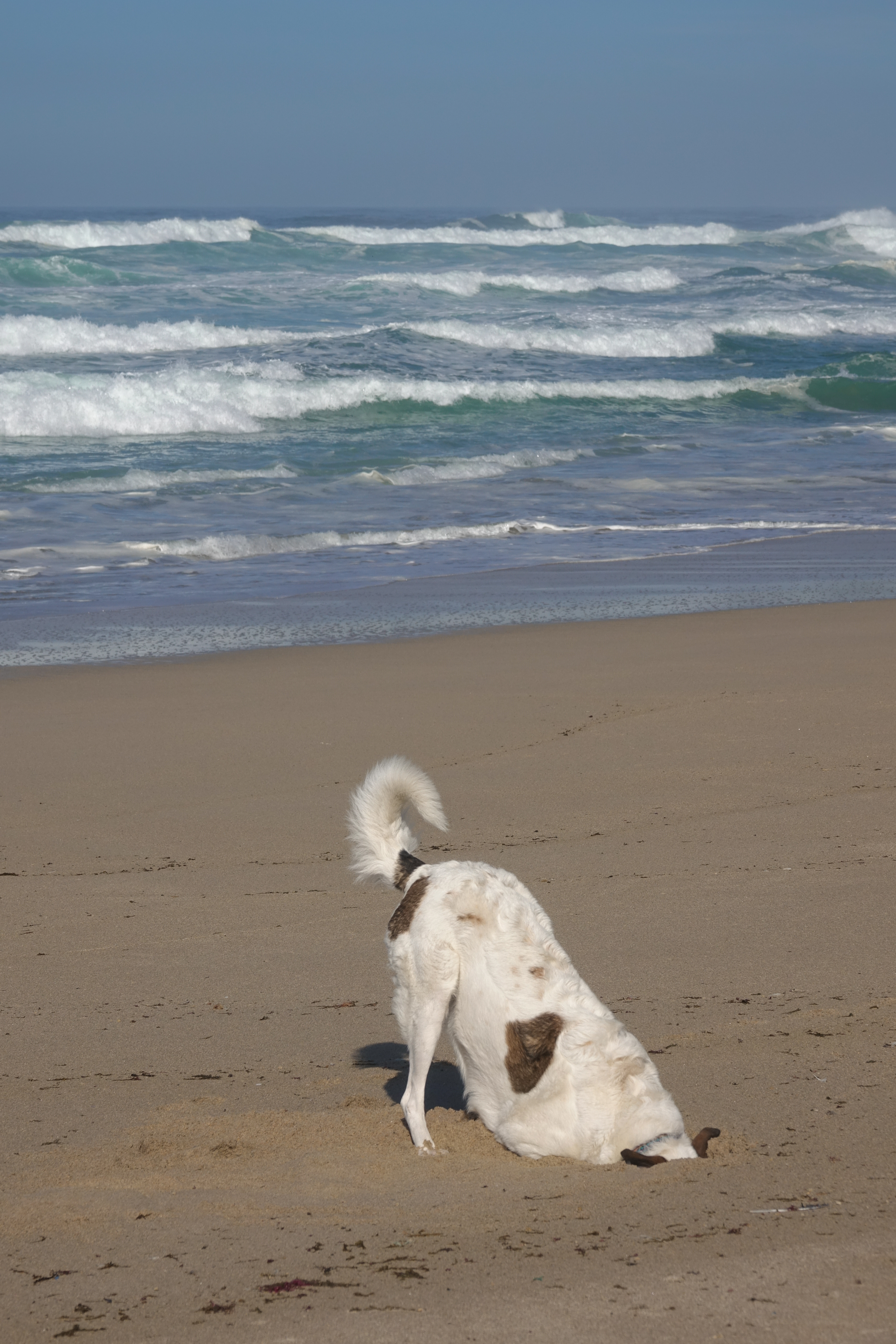 Auf dem Weg zum Ende der Welt entdecken wir noch den wunderschönen Praia do Rostro. Die Hundis sind hin und weg, endlich mal wieder rennen und Löcher graben.