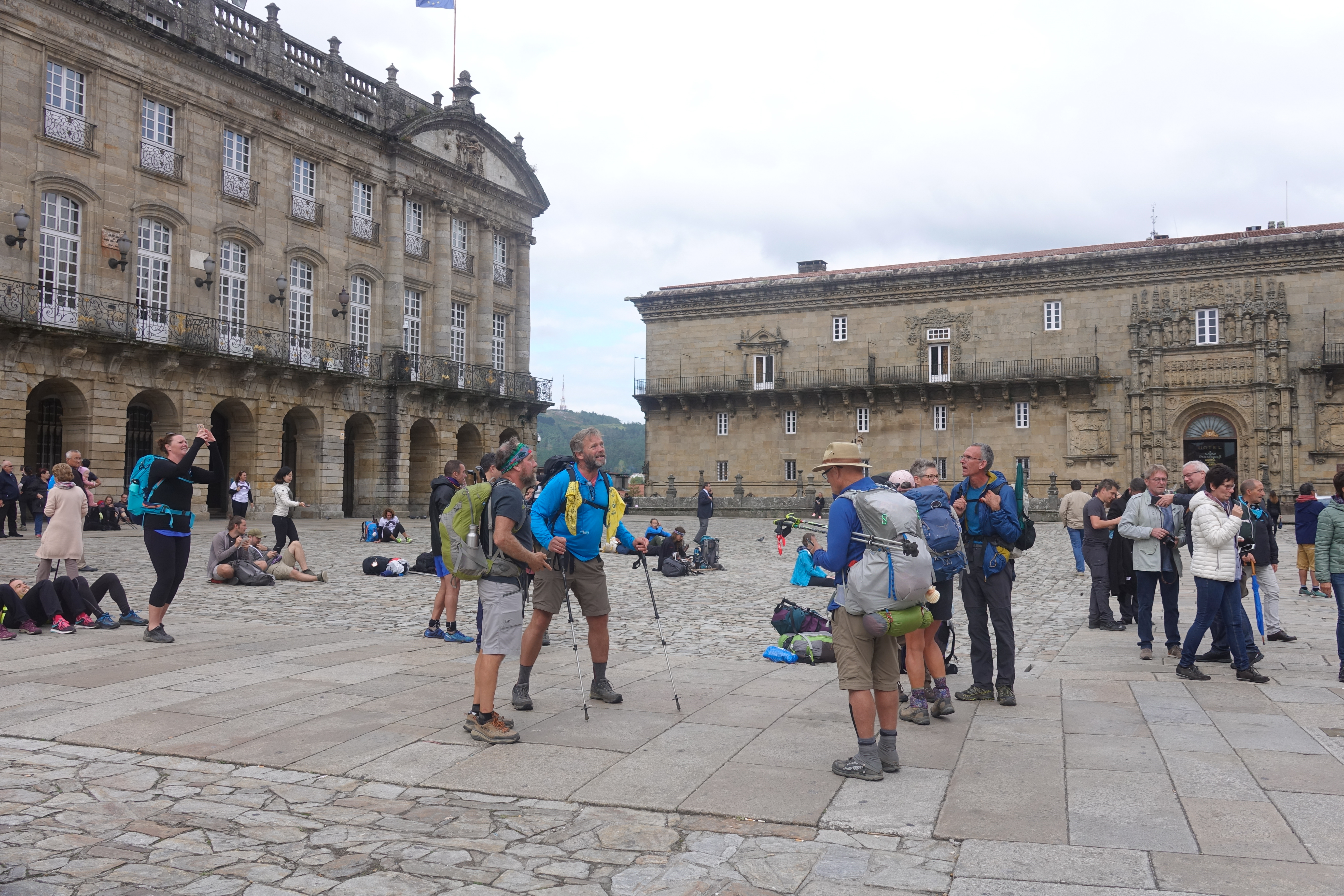Auf dem Platz vor der Kathedrale herrscht eine ausgelassene Stimmung unter den Pilgern aus aller Herren Länder, alle sind froh, die Strapazen des Camino hinter sich zu haben.