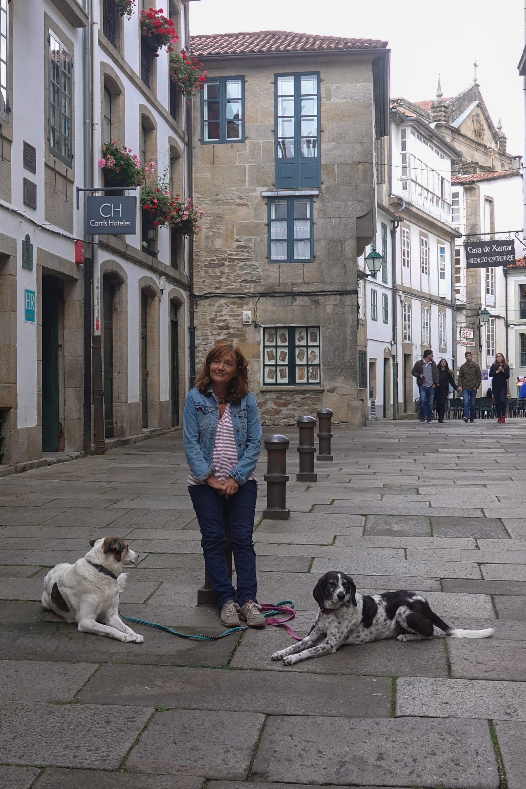 Mit Hilfe des Navis ist der Wohnmobilstellplatz in Santiago dieses Mal problemlos zu finden. Von dort pilgern wir dann mit den Hunden 2 km ins Zentrum.