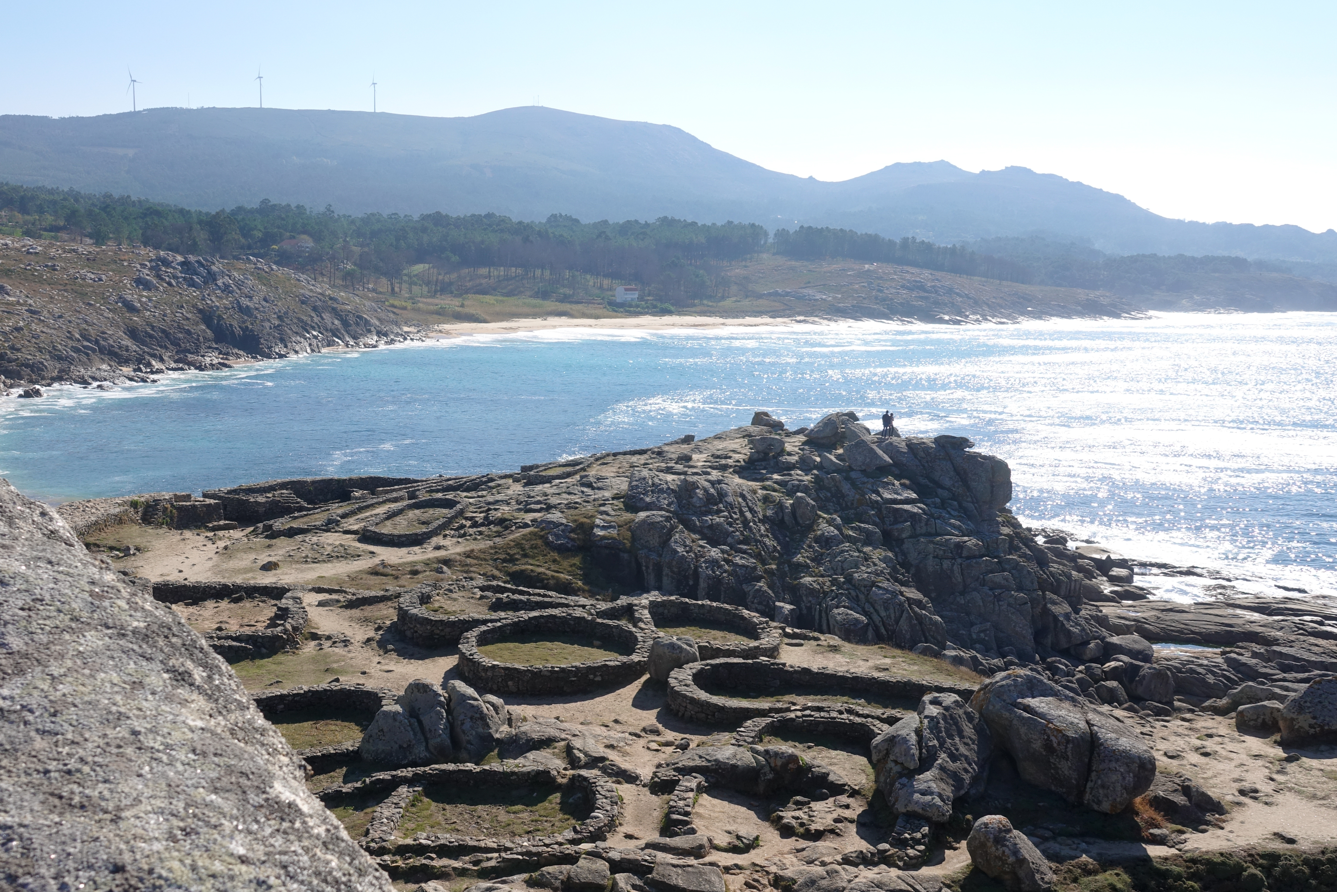 Leider war nicht mehr genug Wind zum Surfen. Daher haben wir uns die keltische Siedlung von Baroña angesehen. Diese alte Befestigungsanlage war bis ins 5 Jahrhundert noch bewohnt. Man kann dort die Fundamente einer Siedlung mit ca. 20 Rundhütten besichtigen.