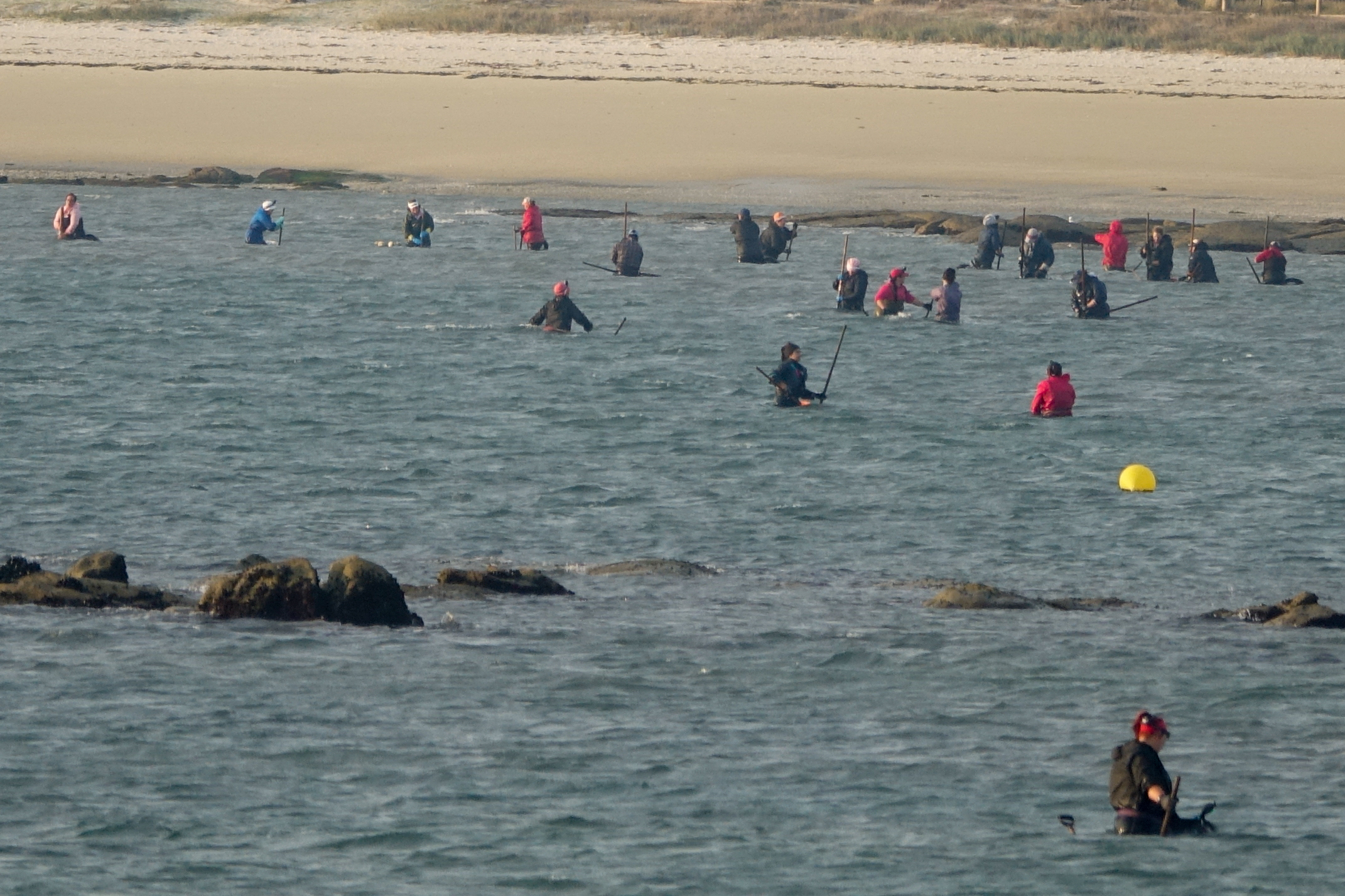 Am Morgen beim Aufwachen haben wir uns gewundert, warum hier so viel Menschen im Wasser stehen. Wir vermuten, dass sie Muscheln suchen.