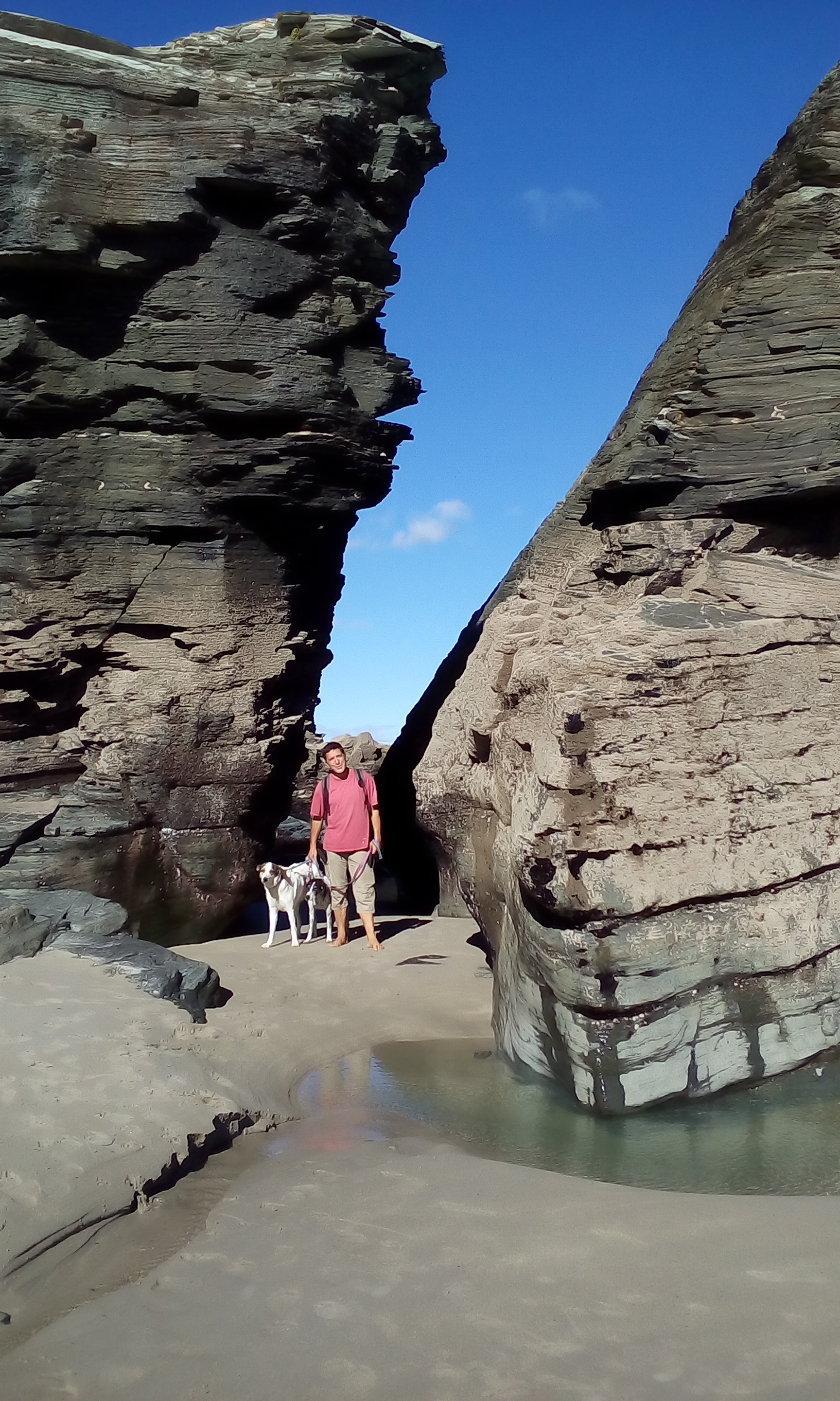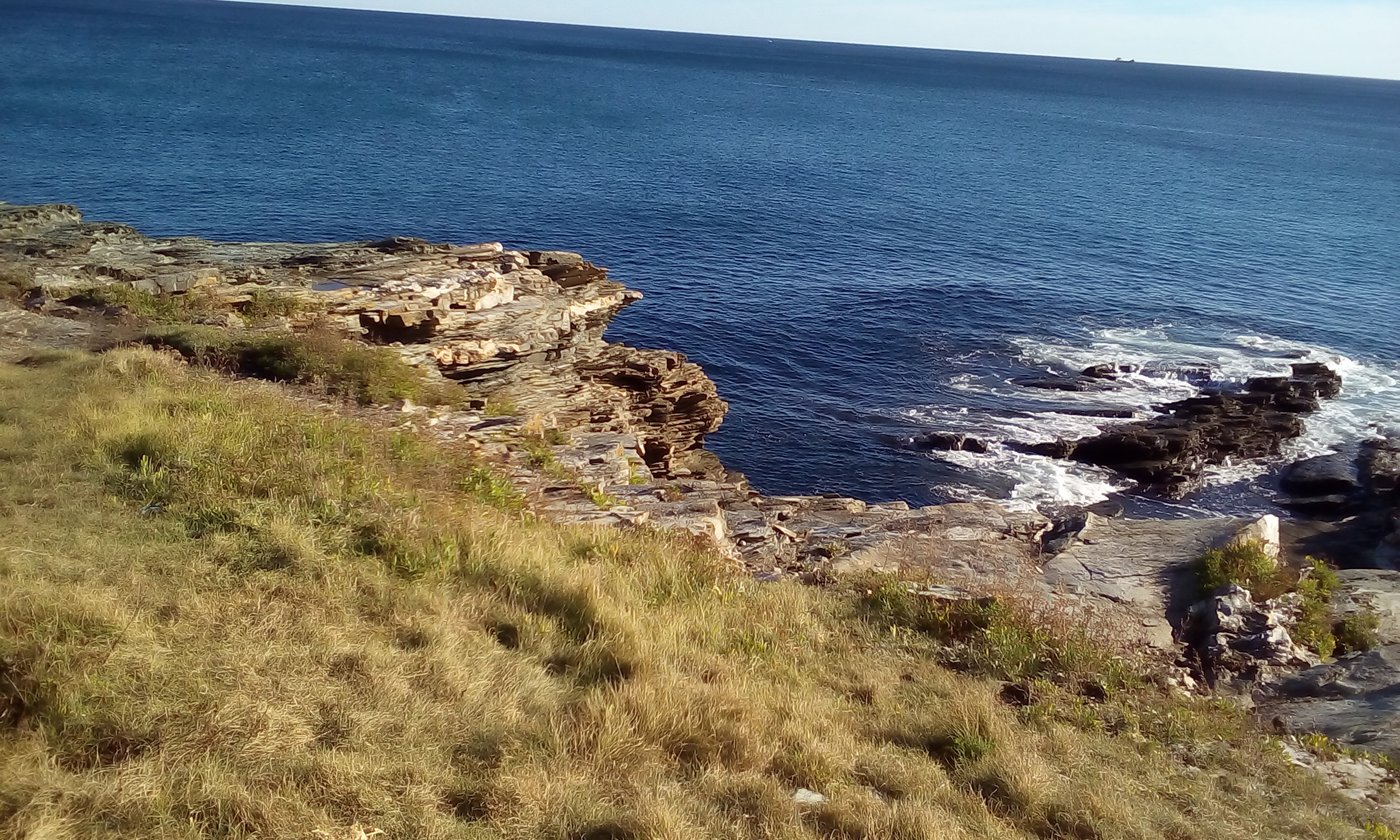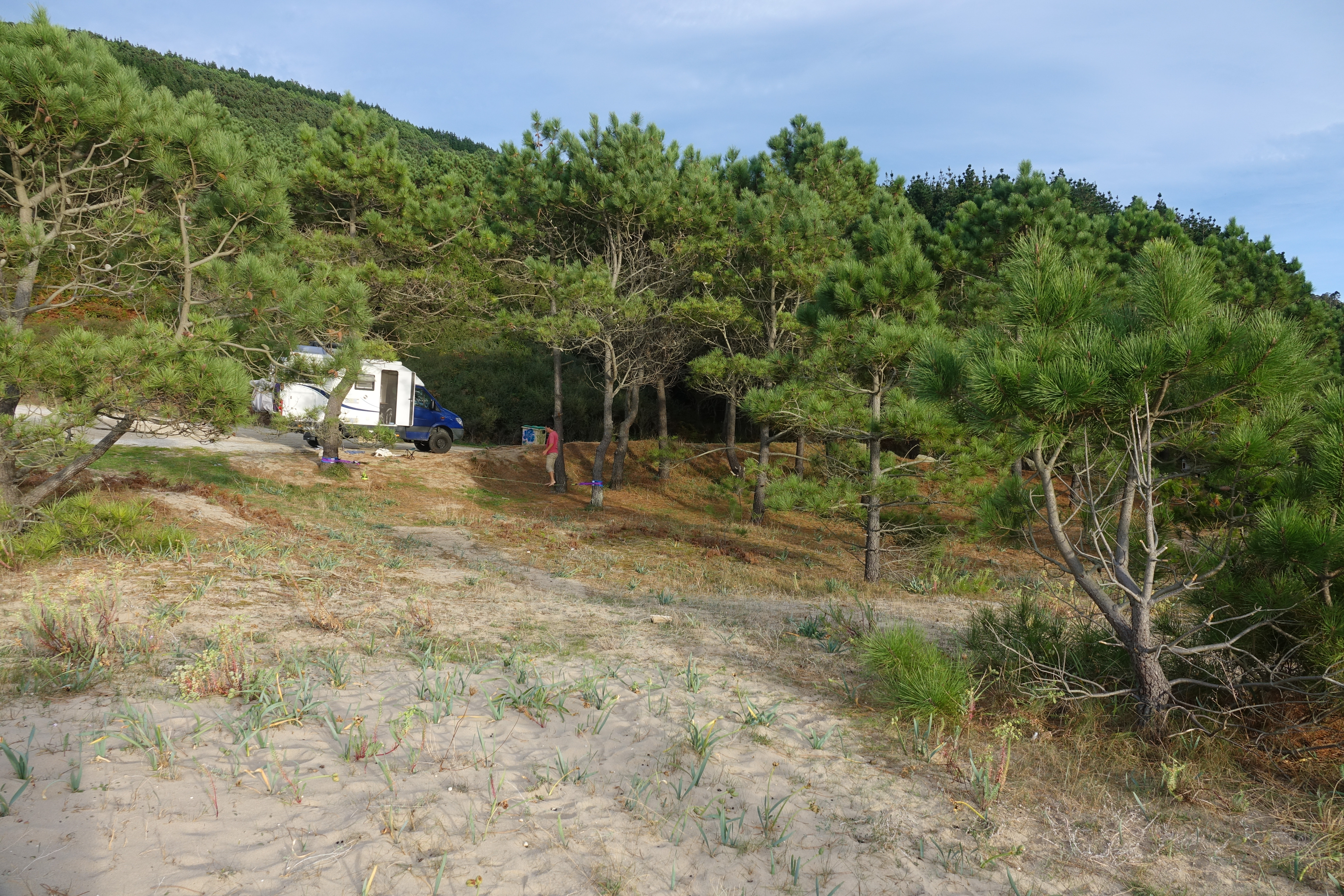 Wir befinden uns hier schon an der Todesküste, der Costa del Morte. Die Küste heißt so, wegen der zahlreichen Schiffsunglücke, die sich hier ereignen. Im letzten Jahrhundert waren es 140 größere Havarien, die sich an der Steilküste, mit den vorgelagerten Felsinsel ereigneten. Auch für Schwimmer und Surfer soll es hier sehr gefährlich sein. Weil wir keinen Wind haben, besteht zur Zeit keine Gefahr.