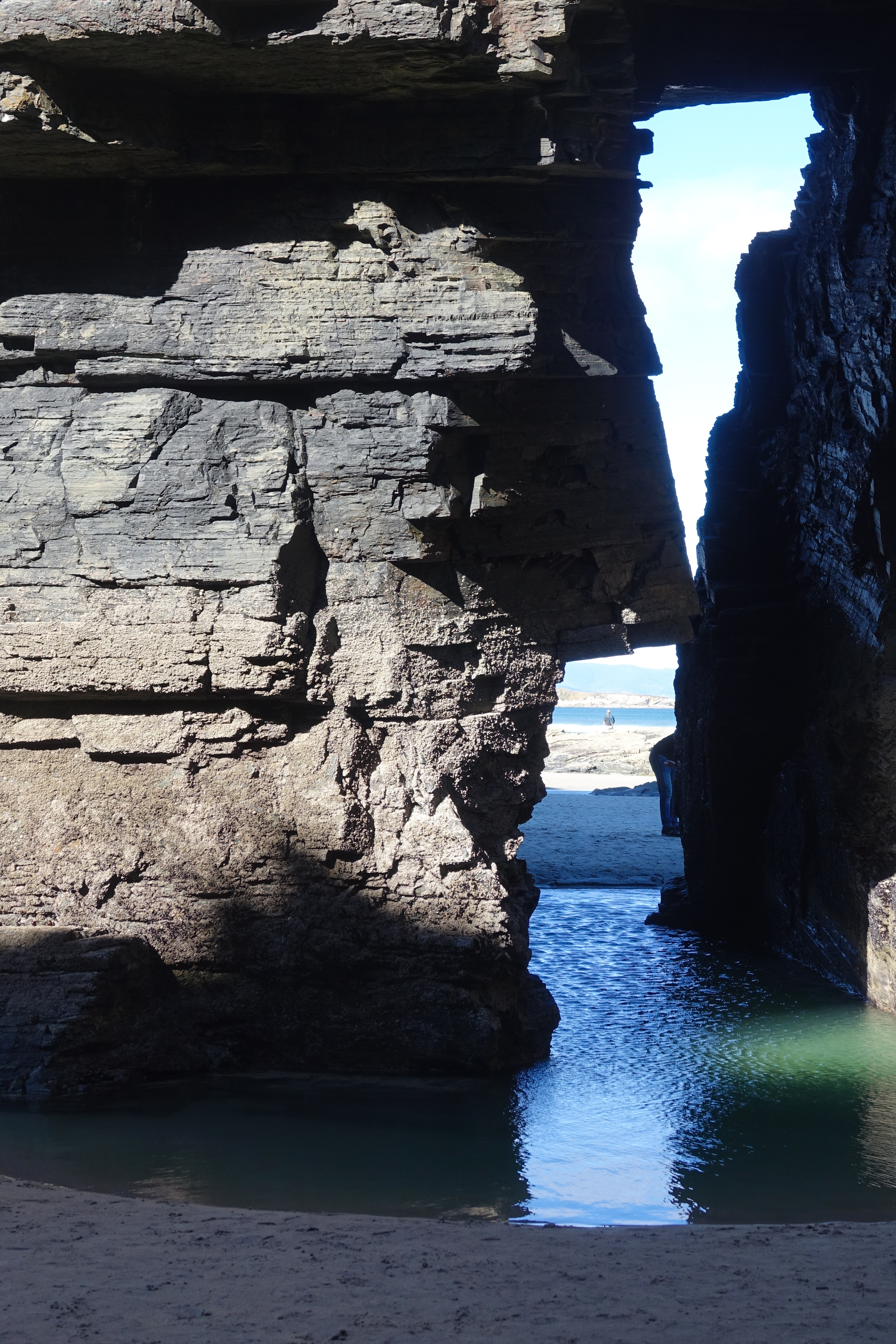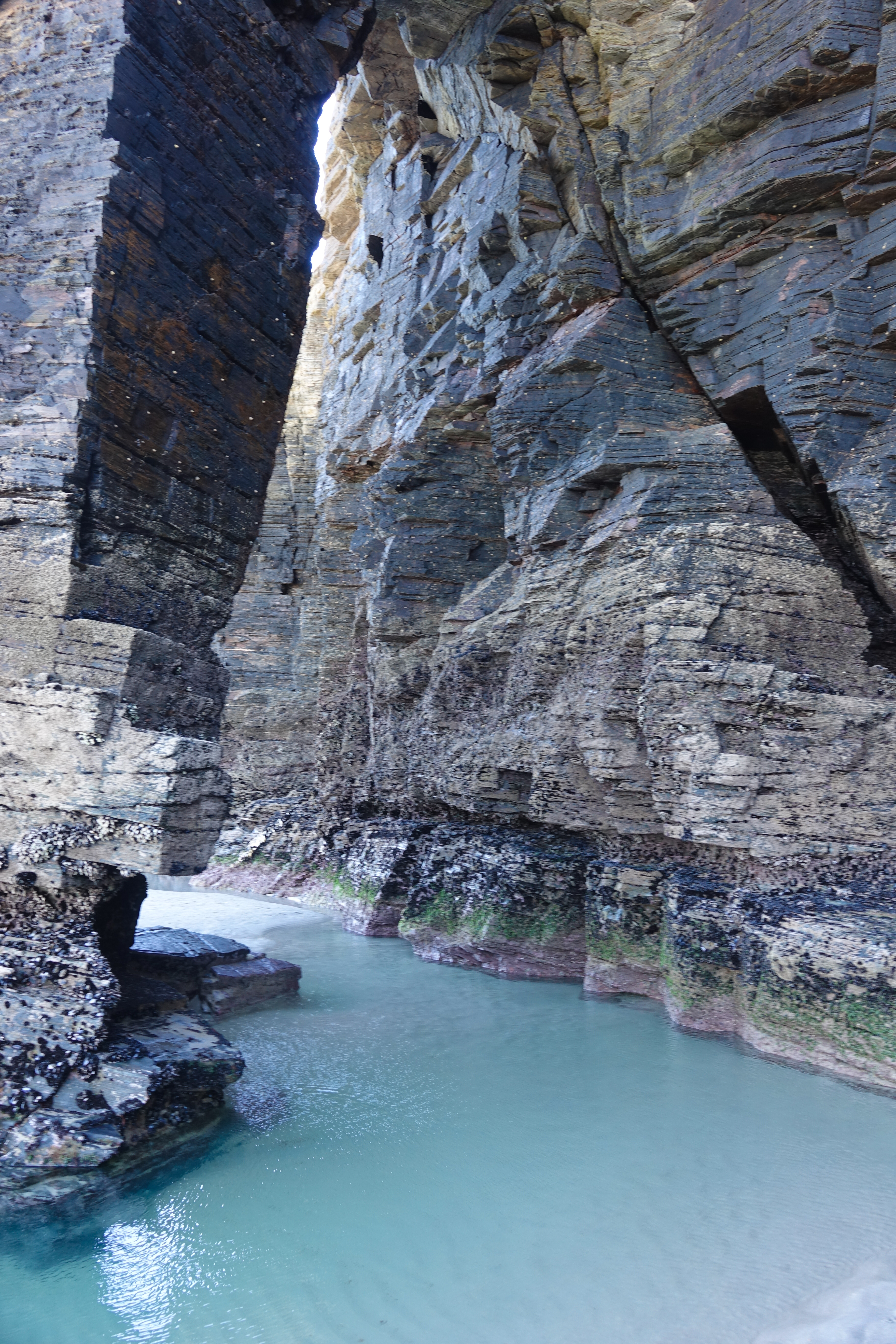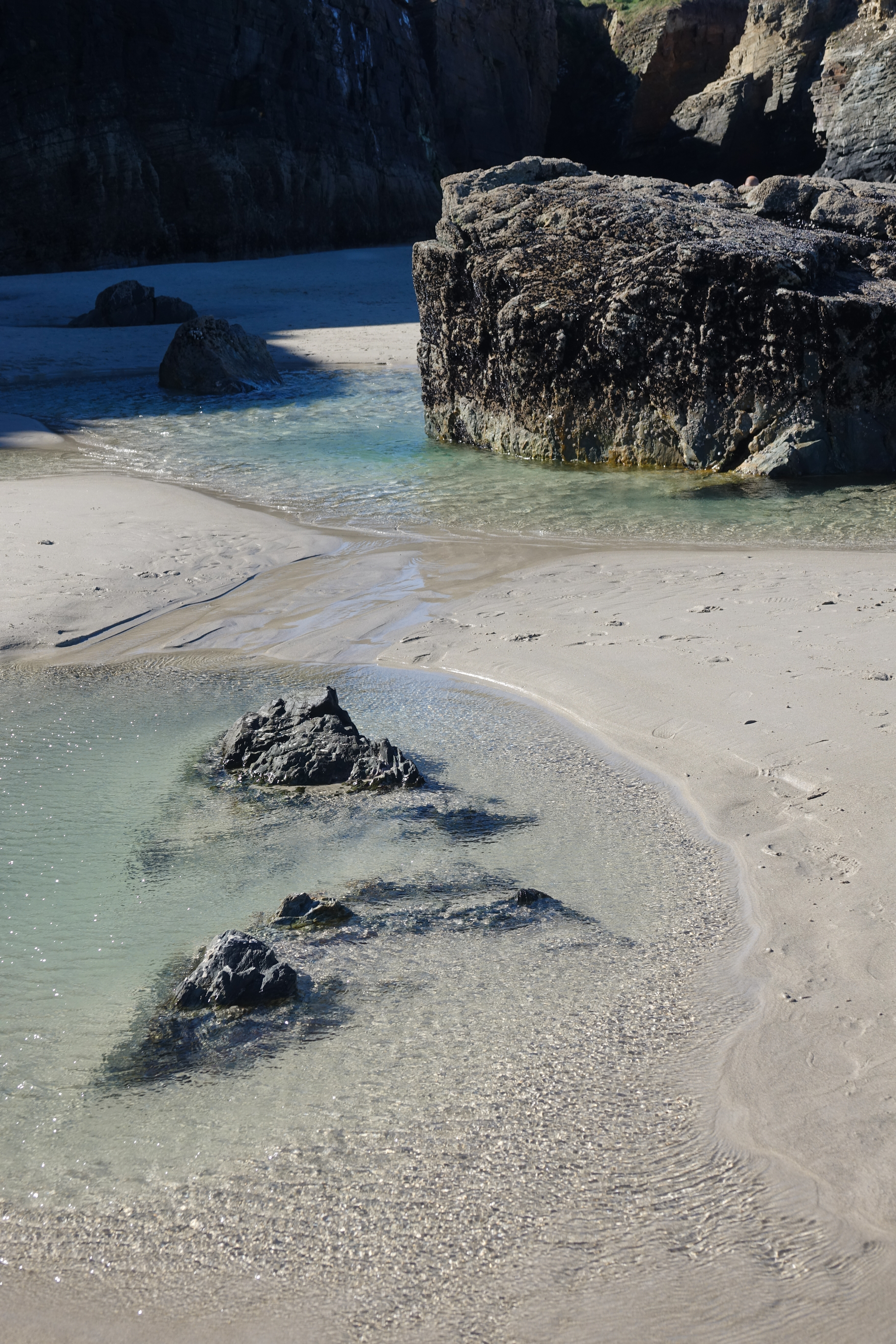 Wir befinden uns hier schon an der Todesküste, der Costa del Morte. Die Küste heißt so, wegen der zahlreichen Schiffsunglücke, die sich hier ereignen. Im letzten Jahrhundert waren es 140 größere Havarien, die sich an der Steilküste, mit den vorgelagerten Felsinsel ereigneten. Auch für Schwimmer und Surfer soll es hier sehr gefährlich sein. Weil wir keinen Wind haben, besteht zur Zeit keine Gefahr.