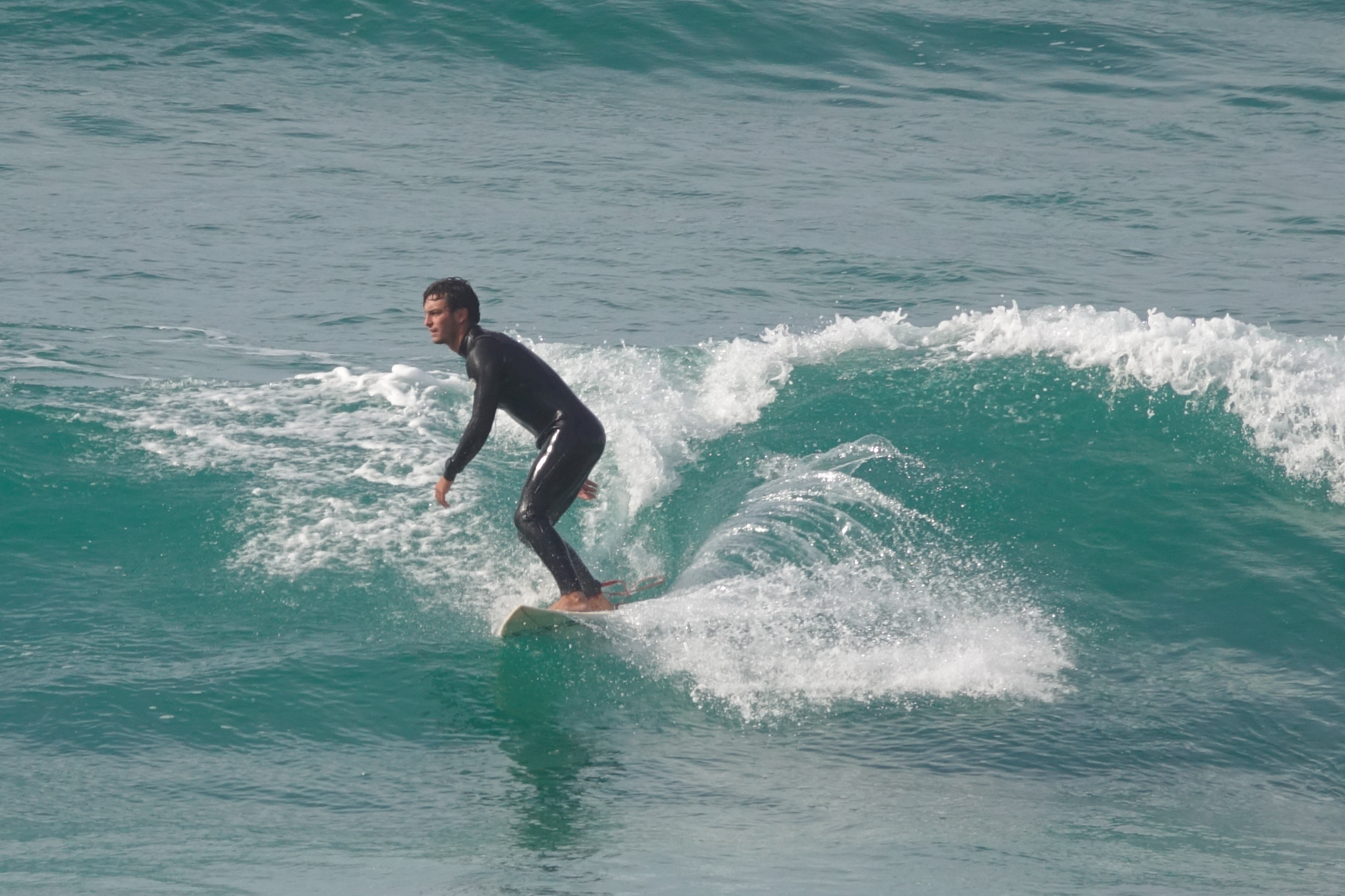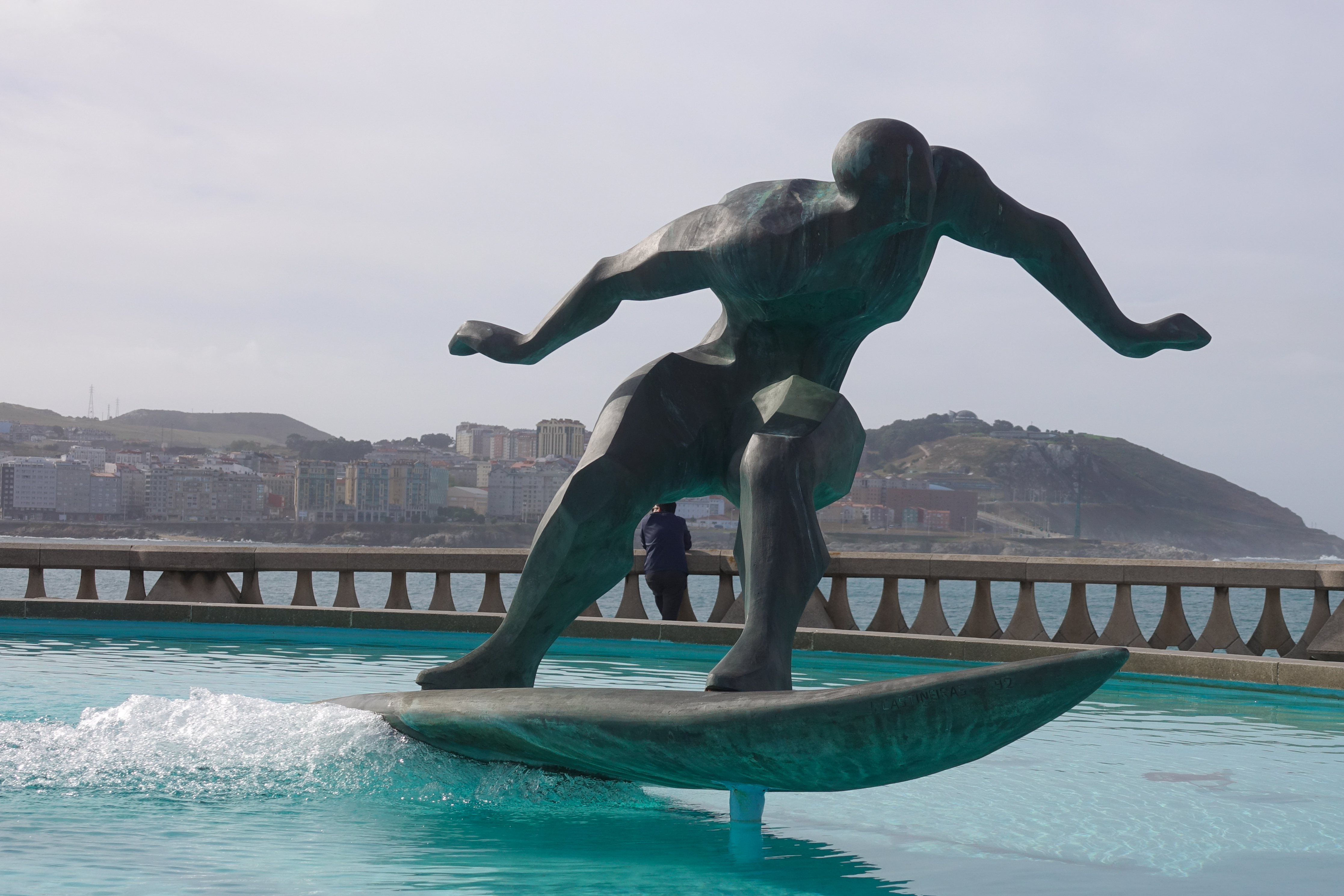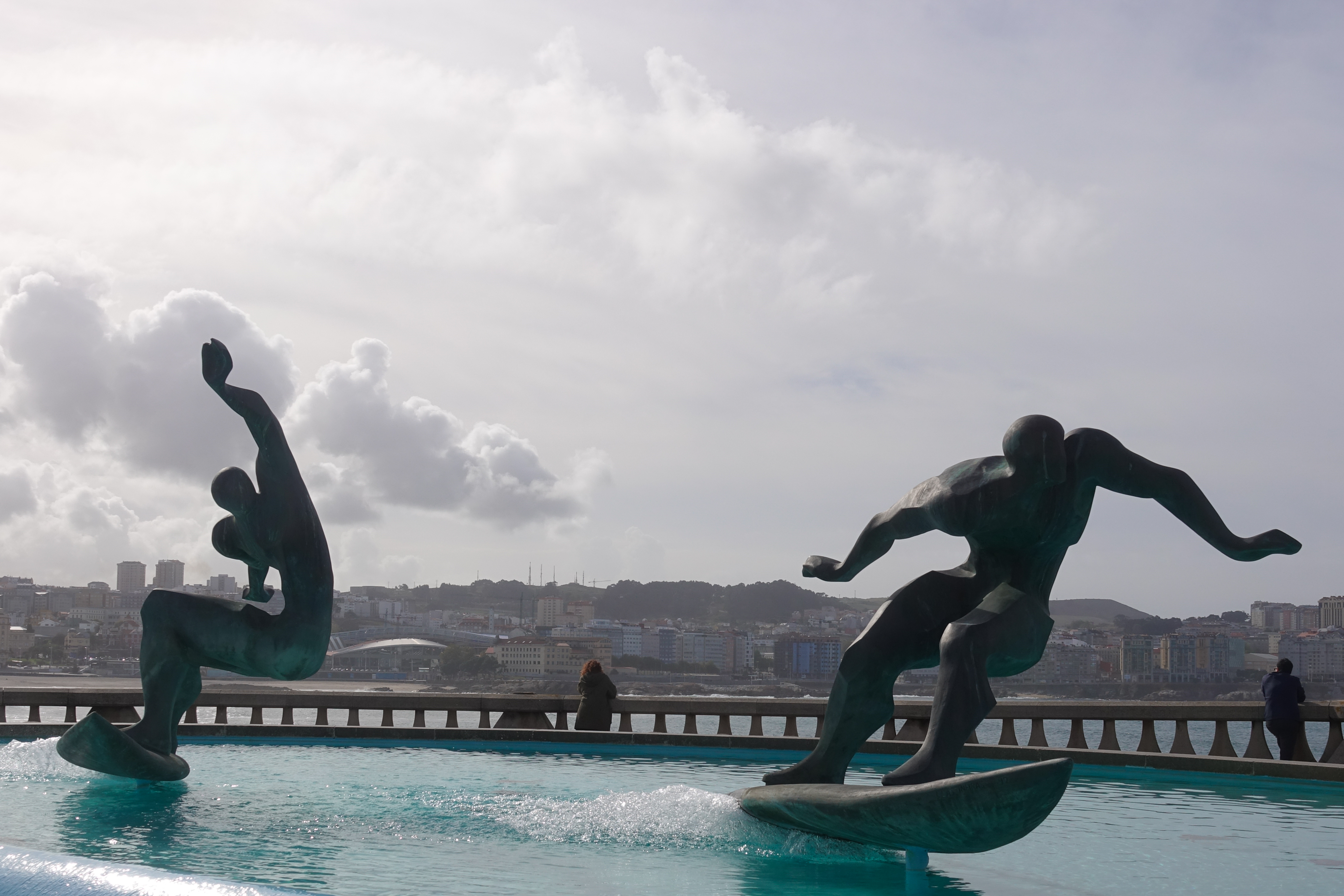 Mitten in der Stadt kann man den Wellenreitern von der Uferpromenade aus zusehen und eine Surferskulptur gibt es natürlich auch.