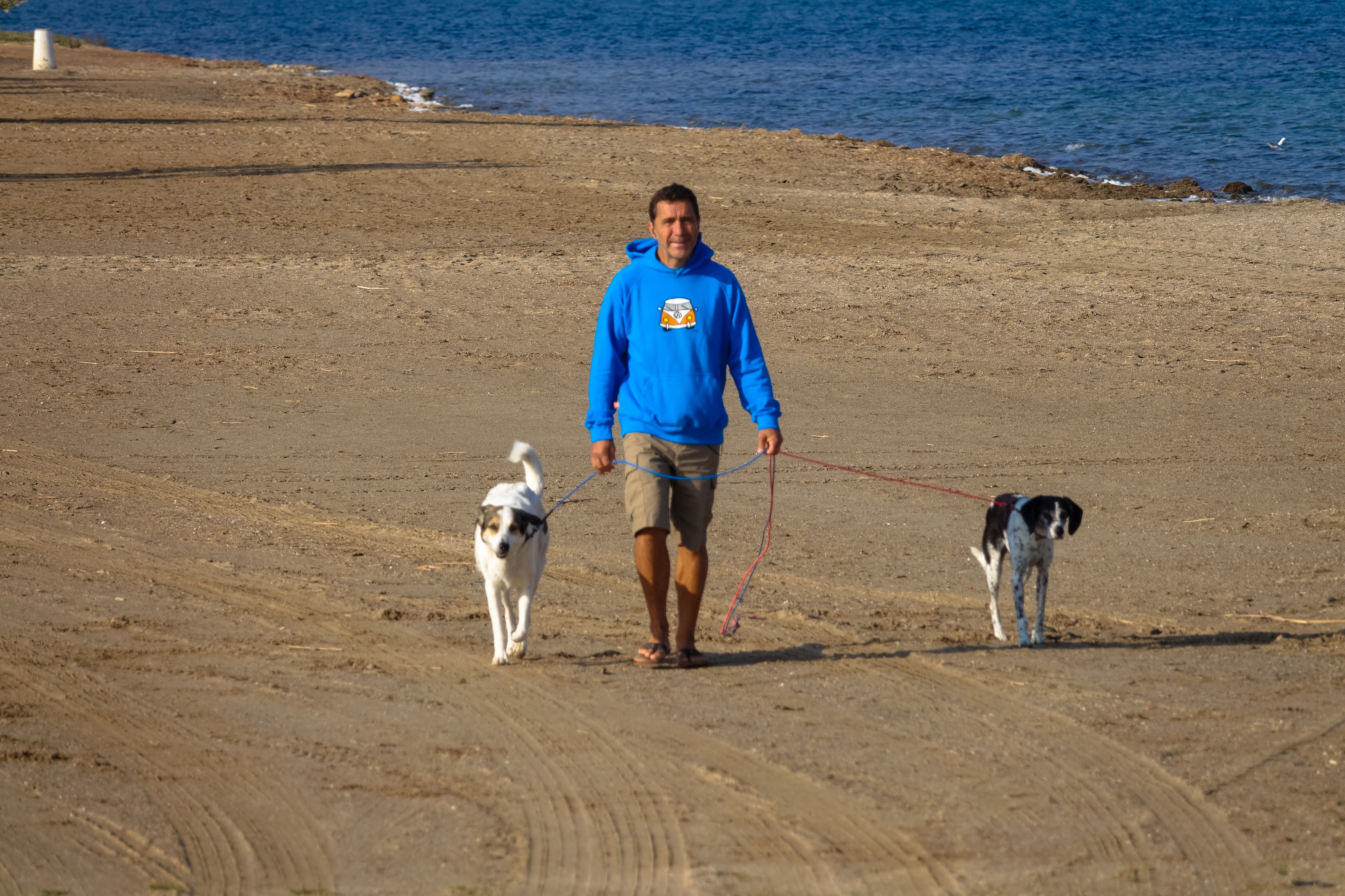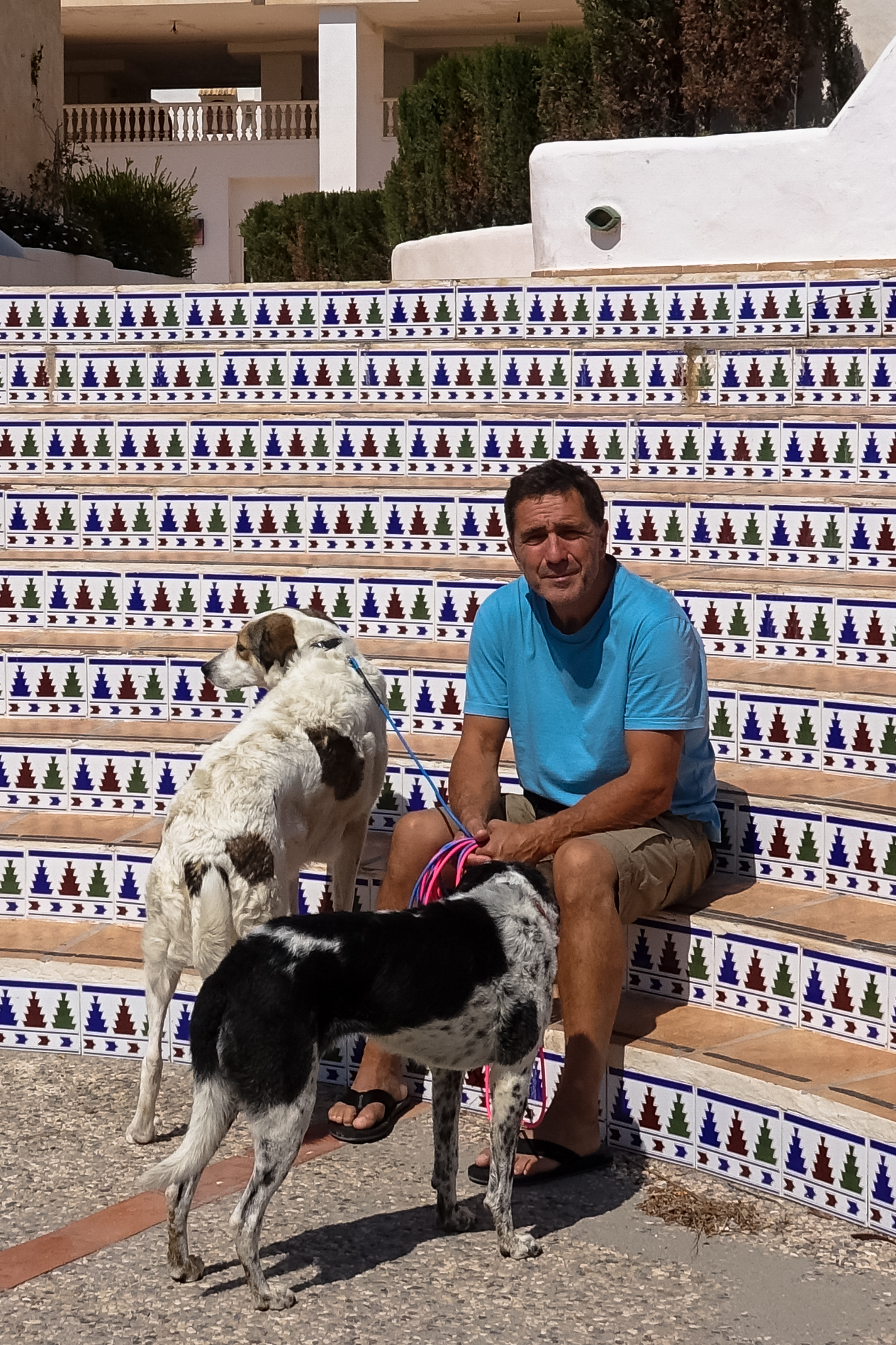 Zu Uwes Morgenroutine hier, aber auch zu Hause gehört ein Spaziergang mit seinen Mädels. Und er kommt erst dann zurück, wenn das Frühstück auf dem Tisch steht. Zu Hause ist das anders, weil er oft beim Bäcker vorbeiläuft. Aber auf unserer Reise haben wir uns angewöhnt, morgens Müsli zu frühstücken, weil sich in der Fremde nicht immer so schnell ein Bäcker in fußläufiger Entfernung finden lässt.