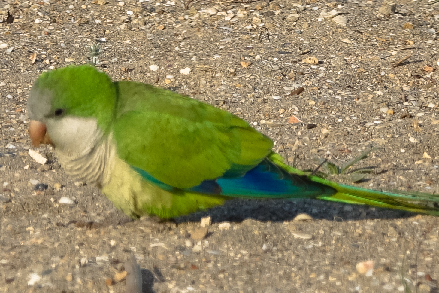 Heute Morgen wurden wir von ungewöhnlichen Gezwitscher geweckt. Scheinbar gibt es hier wild lebende Mönchssittiche. Wir haben nachgelesen, dass es sich um die Nachkommen entwischener oder freigelassener Haustiere handelt, die sich hier zahlreich vermehrt haben und sogar zu einem Problem in den Städten werden können. Trotzdem sind sie schön anzusehen.