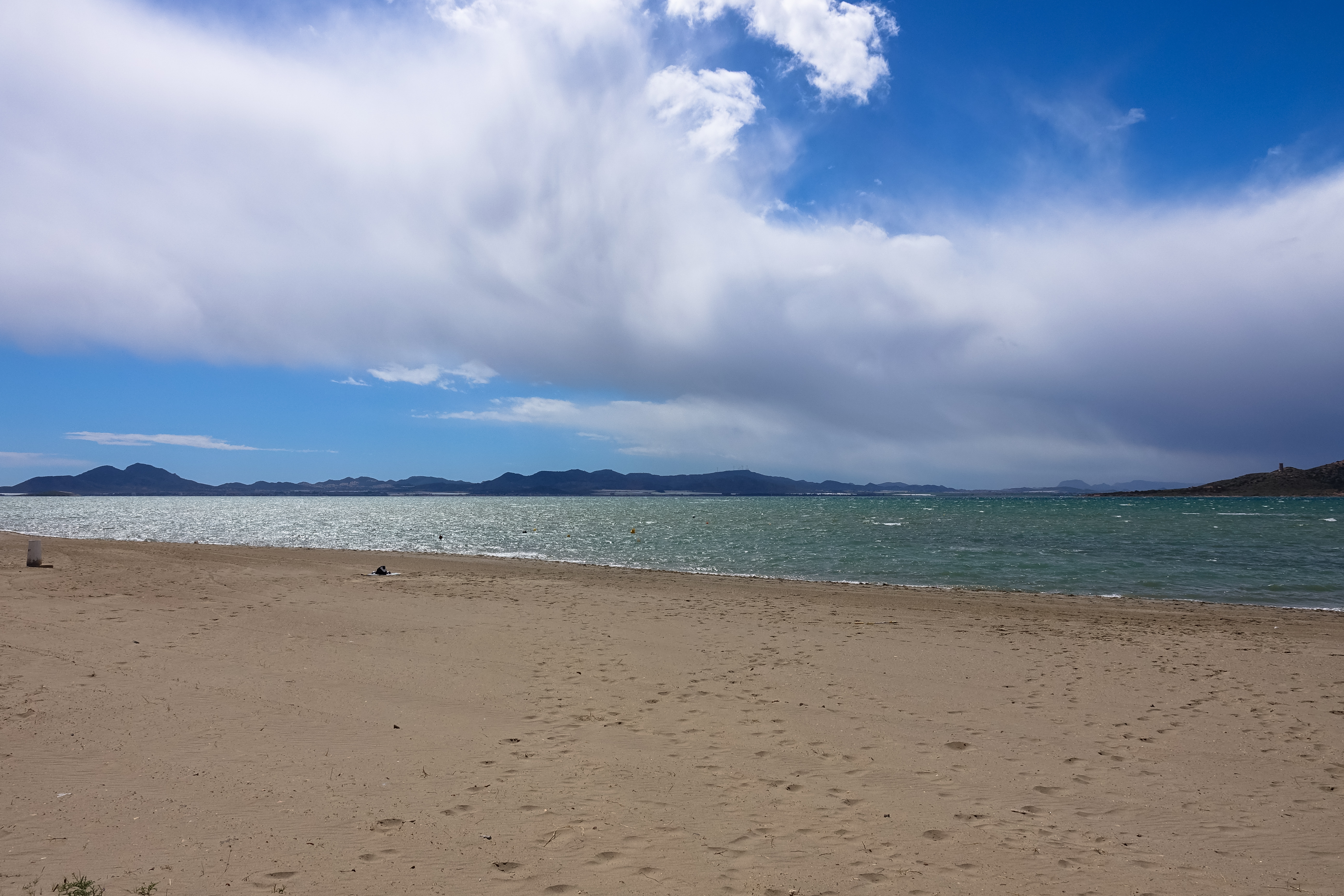 Anschließend mussten wir uns für die Nacht ein Windschattenversteck suchen. So starker Wind ist hier am Mar Menor wirklich selten. Carmen hat das zwar schon erlebt, sie erinnert sich, dass Lisa schon einmal von einem Spielzeugschlauchboot vom Boden hoch gerissen wurde, aber normalerweise ist hier der Wind eher moderat.