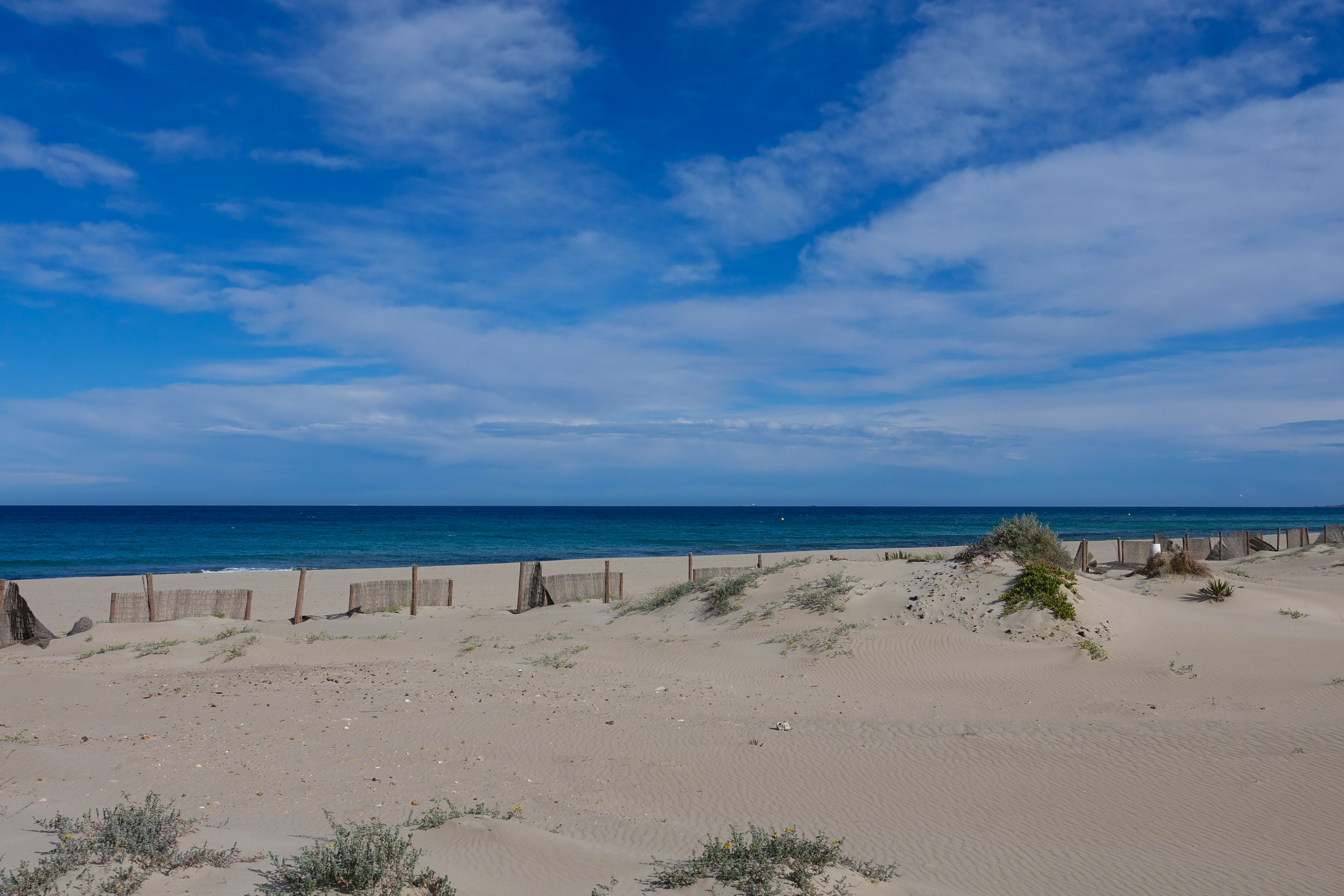 So hatten wir das uns am Mar Menor vorgestellt. Wir wollen jetzt nicht behaupten, dass La Manga ein ideales Urlaubsziel für Wohnmobilfahrer ist. Die Urbanization La Manga gilt als abschreckendes Beispiel für Massentourismus, ist es sicher im Hochsommer auch. Genau deshalb traut sich wohl kam einer hierher. An allen Plätzen in Andalusien, die wir vorher angesteuert haben, waren immer viele Wohnmobile zu sehen. Hier in La Manga sind es auf dem ganzen Sandarm etwa 20 Wohnmobile auf 11 km verteilt. Die Bewohner der Ferienwohnungen und Häuser sind auch nicht da. Das macht das Ganze sehr entspannt.