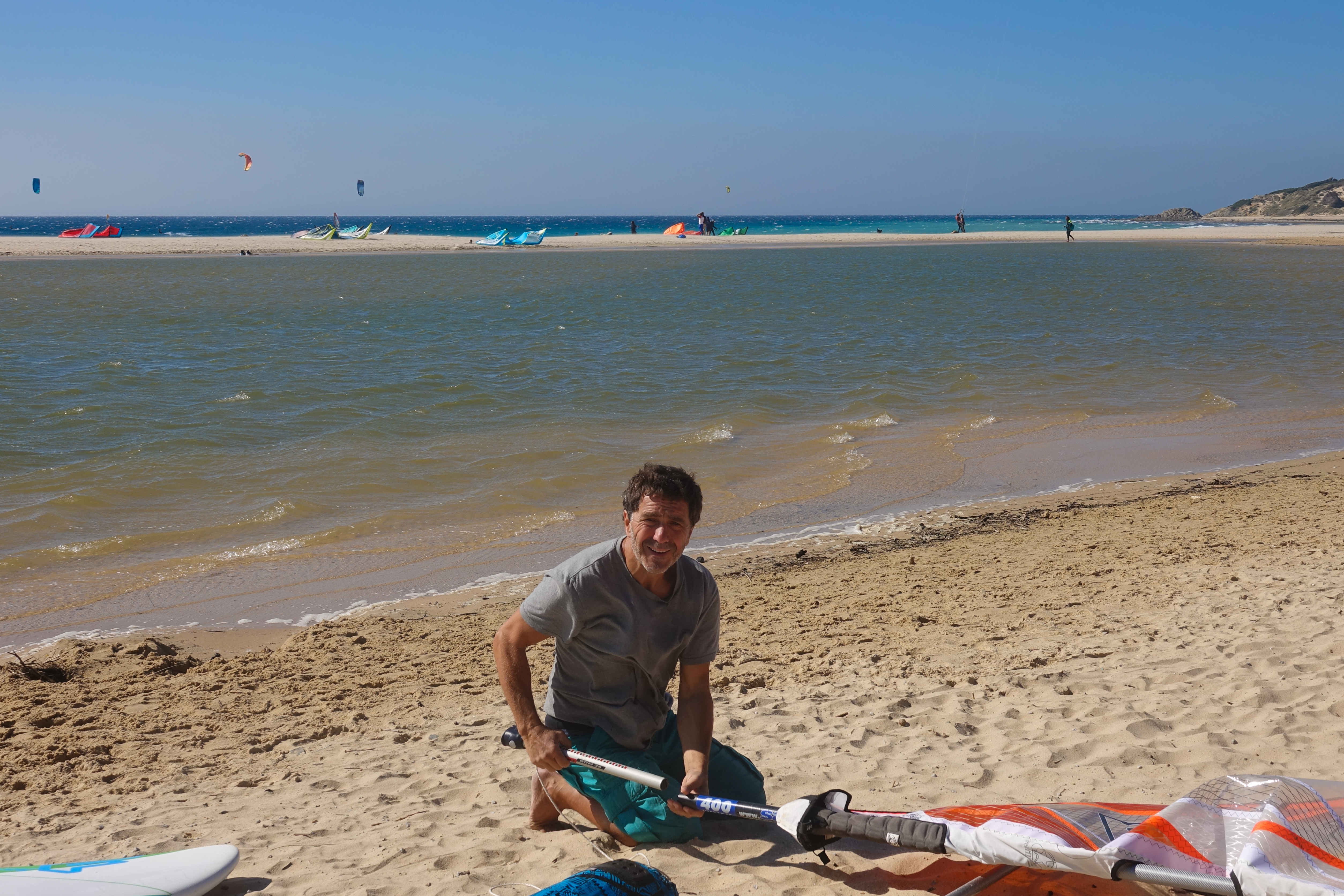 Dann geht es noch 100 km in Richtung Norden nach Tanger. Zuerst haben wir noch ein paar Hürden zu überwinden. Niemand will unsere Gasflasche zurück nehmen. Schließlich finden wir doch einen Händler, der uns zwar ein bisschen über den Tisch zieht, aber 5€ Verlust können wir uns leisten. Dann wird Carmen noch von 5 marokkanischen Jugendlichen bedroht, als sie das Restgeld in Obst investieren will, mitten auf der Hauptstraße. Da zahlen sich dann 10 Jahre Gesamtschule aus. So schnell lässt sich Carmen nicht einschüchtern. Einige besteigen dann unser Wohnmobil. Wir fahren los, genau bis zur nächsten Kreuzung, wo die Polizei steht und bitten den Polizist um Hilfe. Und dann sind sie plötzlich verschwunden. Leider hat bei dieser Aktion unsere Fahradabdeckung Schaden genommen: ein großer Riss, aber es hätte schlimmer kommen können. In Tarifa gibt es Segelmacher, die können bestimmt auch die Abdeckplane reparieren.