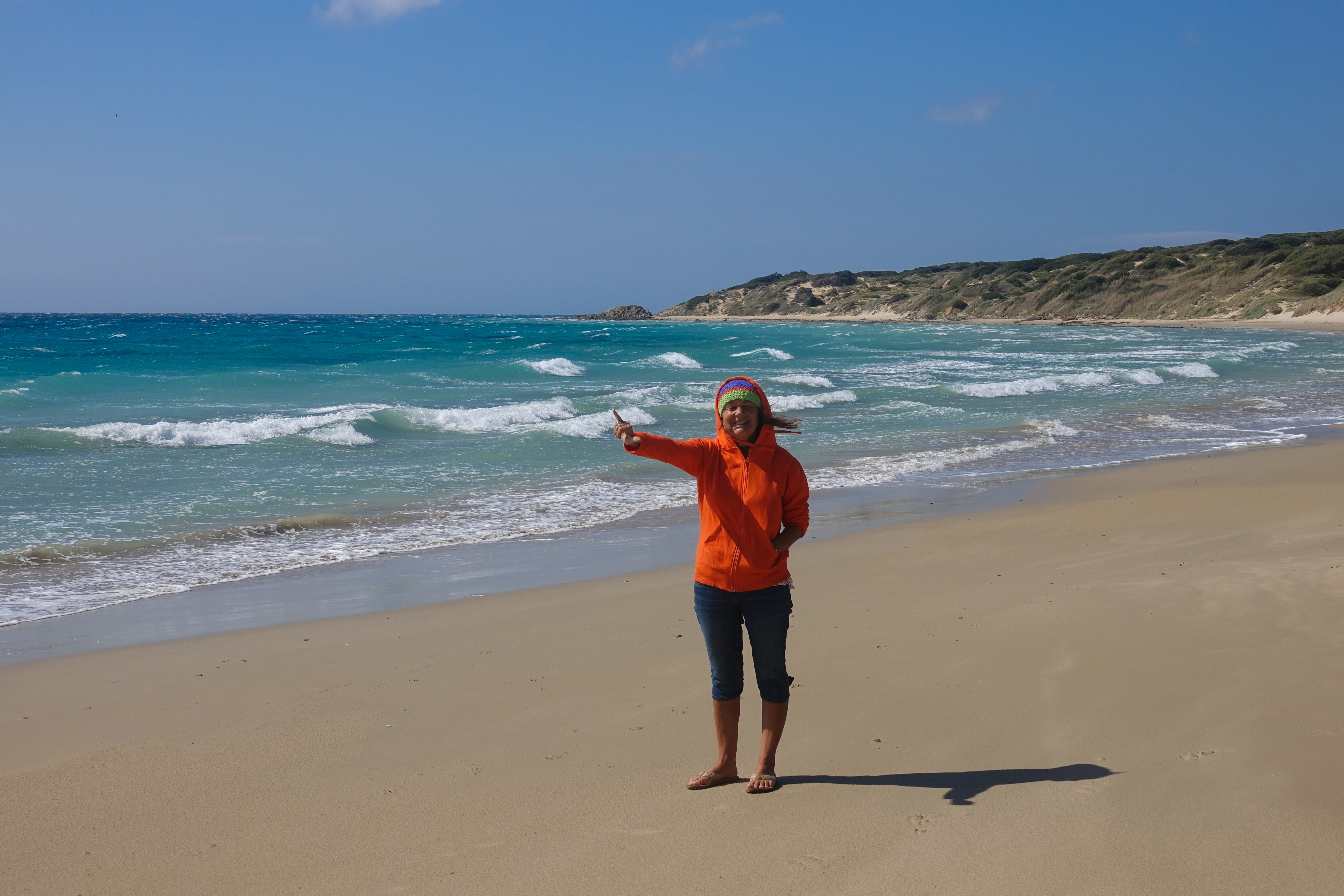 Im Hafen geht alles ganz schnell, Passkontrolle, Wohnmobil verlassen, Scannen und schon geht es an Bord. Um 7:45 legen wir ab. Wir schaukeln ein bisschen. Die Straße von Gibraltar ist bekannt für viel Wind. Erst um 21:00 Uhr sind wir in Tarifa. Wir treffen Andy und Becca und machen erst einmal einen ausgiebigen Kneipenbummel. Wir schlafen auf dem Stellplatz in der Stadt. Es ist nicht schön hier, aber ruhig und nach einem Abend in der Altstadt genau richtig.