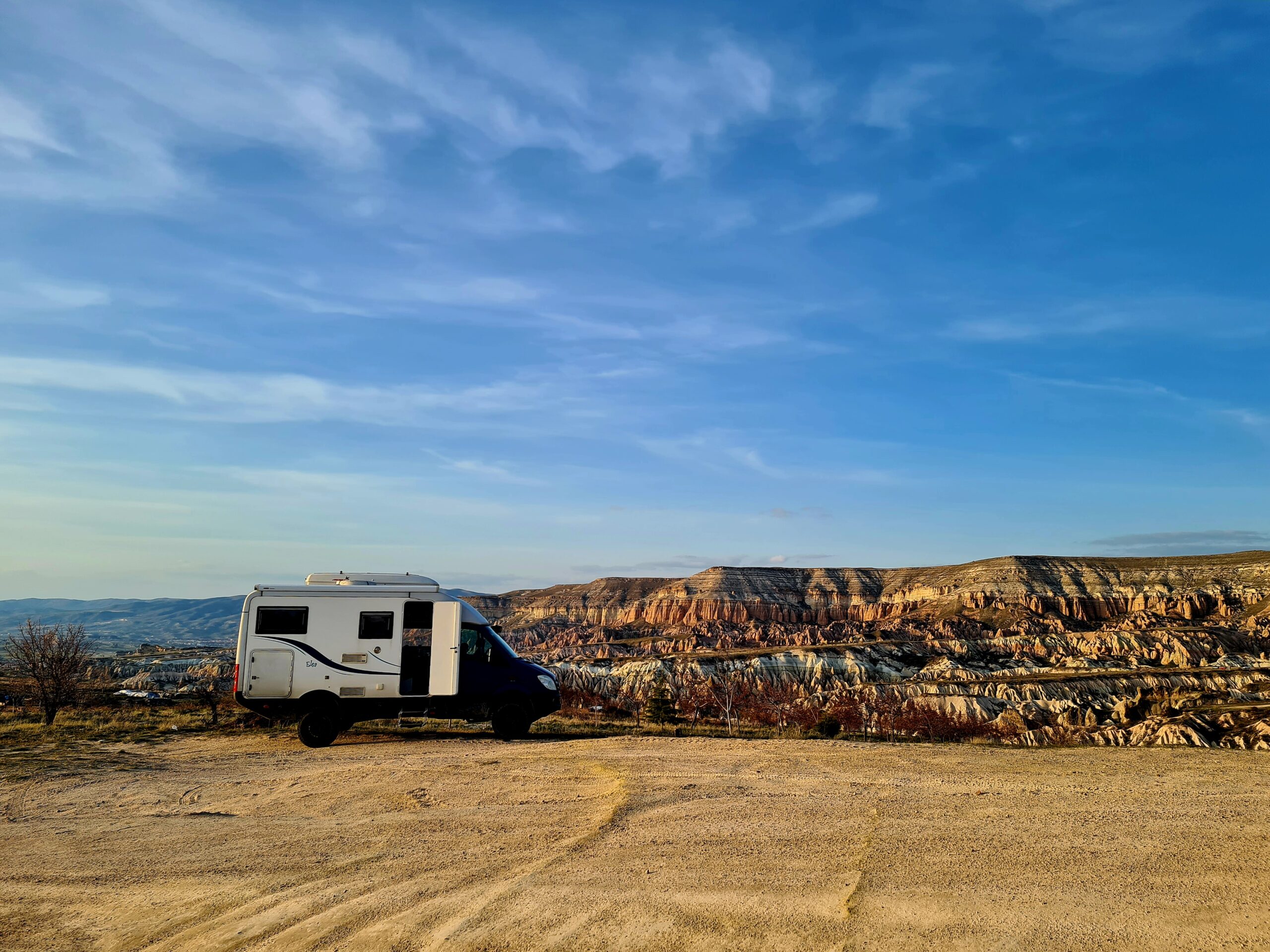 Damit wir morgen früh die Ballons über Kappadokien sehen können, fahren wir zu einem Übernachtungsplatz oberhalb von Göreme.
